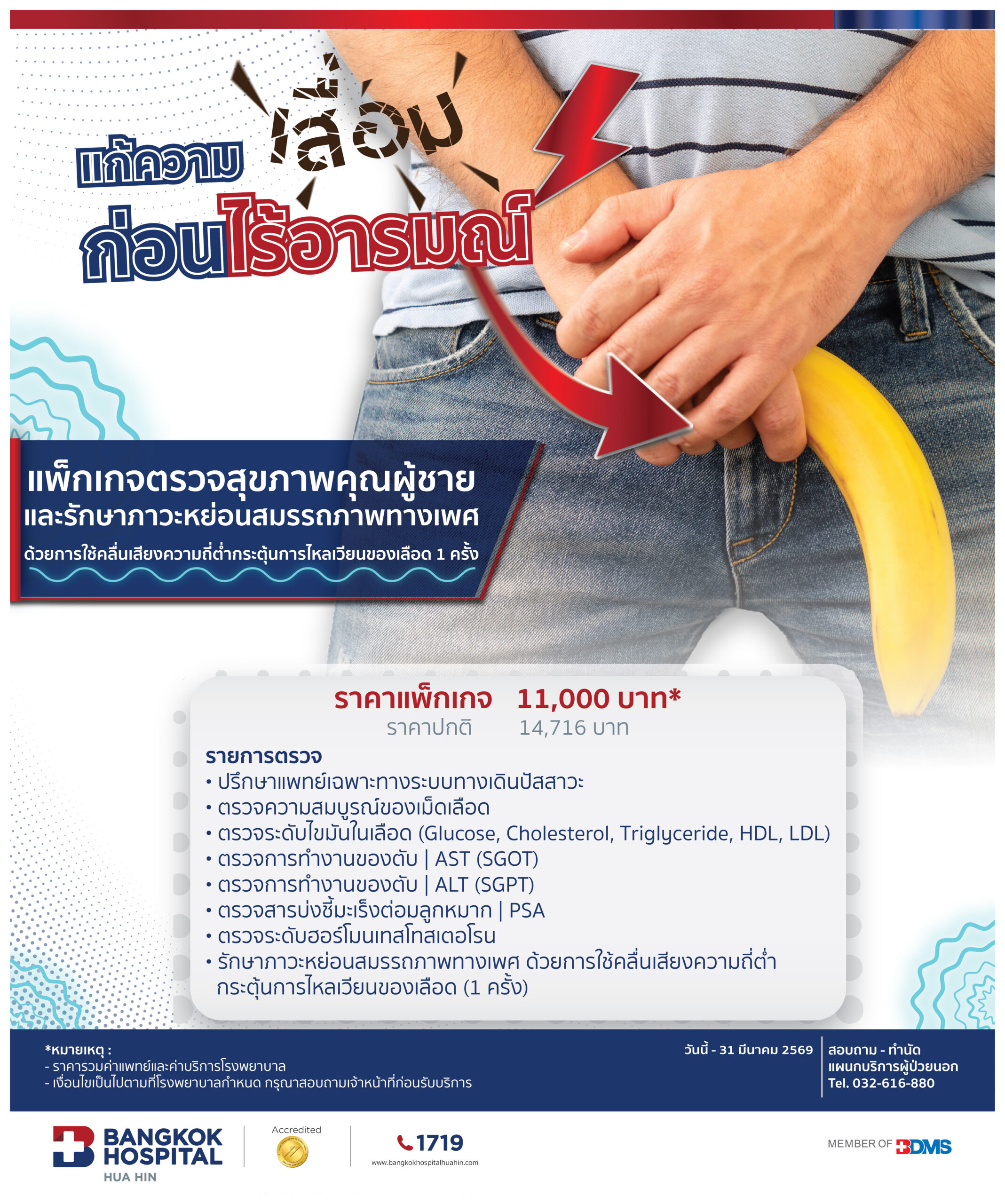 บทความที่เกี่ยวข้อง : รักษาภาวะหย่อนสมรรถภาพทางเพศ ด้วย FOCUSED SHOCKWAVE