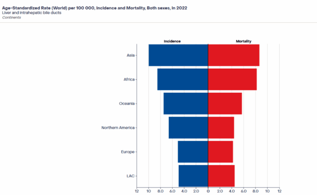 อุบัติการณ์การเกิดมะเร็งตับทั่วโลก