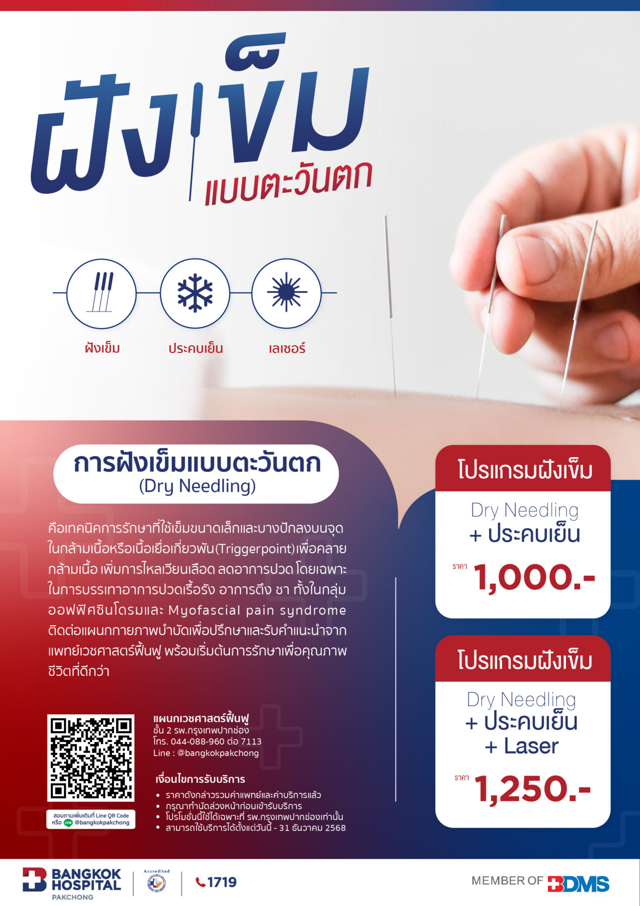 - โปรแกรมฝังเข็ม + ประคบเย็น ราคา 1,000.-