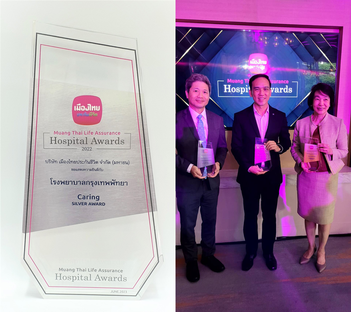 วันที่ 20 มิถุนายน 2566 นพ.ธีติ วารินทร์ศิริกุล ผู้ช่วยผู้อำนวยการ รพ.กรุงเทพพัทยา เข้าร่วมรับรางวัลเกียรติยศ Caring Silver Award ในงาน Muang Thai Life Assurance Hospital Awards 2022 จาก ดร.สุทธิพล ทวีชัยการ เลขาธิการ คณะกรรมการกำกับและส่งเสริมการประกอบธุรกิจประกันภัย (คปภ.) พร้อมด้วย คุณสาระ ล่ำซำ ประธานเจ้าหน้าที่บริหาร บริษัท เมืองไทยประกันชีวิต จำกัด (มหาชน)