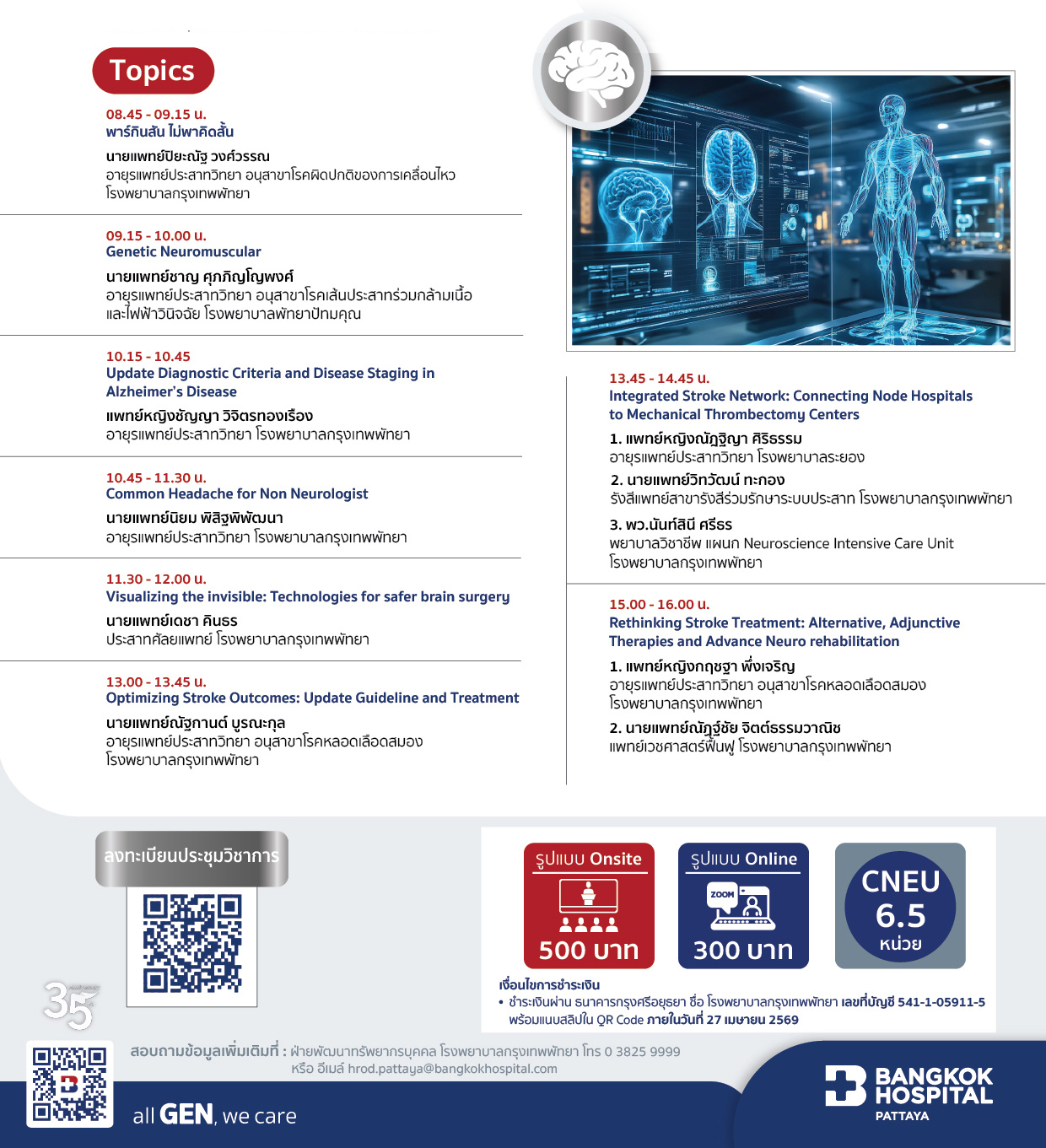 งานประชุมวิชาการ Comprehensive Neuroscience 2026 : Advancing Trends into Practice< 1 นาทีในการอ่านข้อมูลโดยโรงพยาบาลกรุงเทพพัทยาอัปเดตเมื่อ: 14 เม.ย. 2569แพ็กเกจแนะนำแพ็กเกจตรวจสุขภาพการนอนหลับแพ็กเกจตรวจคัดกรองภาวะสมองเสื่อมแพ็กเกจคัดกรองโรคหลอดเลือดสมองโรงพยาบาลกรุงเทพพัทยาอัปเดตเมื่อ: 14 เม.ย. 2569สอบถามเพิ่มเติมที่ศูนย์สมองและระบบประสาทอาคาร E ชั้น 2วันจันทร์ 08:00 - 17:00 น. วันอังคาร – วันอาทิตย์ 08:00 - 18:00 น.+66 3825 9986[email protected]แพ็กเกจและโปรโมชั่นแพ็กเกจตรวจสุขภาพการนอนหลับ12,900 บาทรายละเอียดซื้อเลยแพ็กเกจตรวจคัดกรองภาวะสมองเสื่อม10,000 บาทรายละเอียดซื้อเลยแพ็กเกจคัดกรองโรคหลอดเลือดสมอง17,000 บาท19,900 บาทรายละเอียดซื้อเลยดูแพ็กเกจอื่น ๆข่าวสารและกิจกรรมดูทั้งหมดข่าวสารและกิจกรรมทีมศูนย์สมองและระบบประสาท โรงพยาบาลกรุงเทพพัทยา ได้เป็นตัวแทนองค์กรร่วมนำเสนอผลงานในเวทีระดับนานาชาติ ผ่าน ICHOM Webinarsดูทั้งหมด