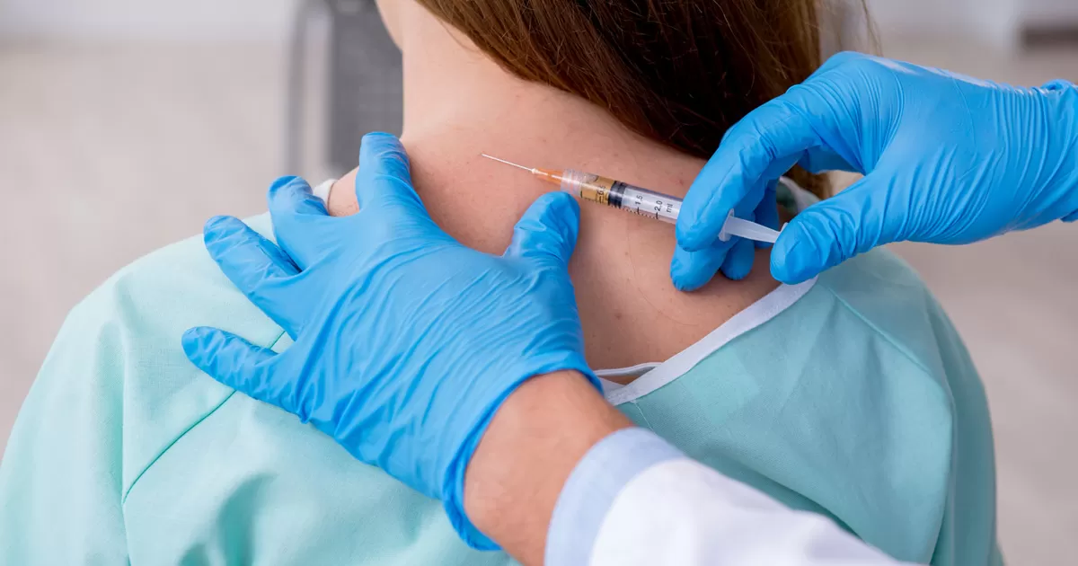 การฉีดยาจะช่วยลดอาการปวดโดยการผ่อนคลายกล้ามเนื้อและลดการอักเสบในบริเวณนั้น ซึ่งจะช่วยบรรเทาอาการปวดศีรษะได้ การฉีดยาอาจมียาสเตียรอยด์อยู่ด้วย ซึ่งสามารถบรรเทาอาการได้ยาวนานขึ้นโดยการลดการอักเสบในบริเวณนั้น