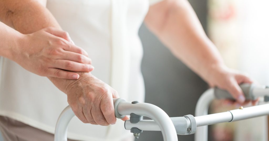 –การทรงตัวไม่มั่นคง เดินเซล้มได้ง่าย การเดินหรือการยืนที่ผิดปรกติไป เช่น ตัวงองุ้มไปด้านหน้า เดินซอยเท้าถี่