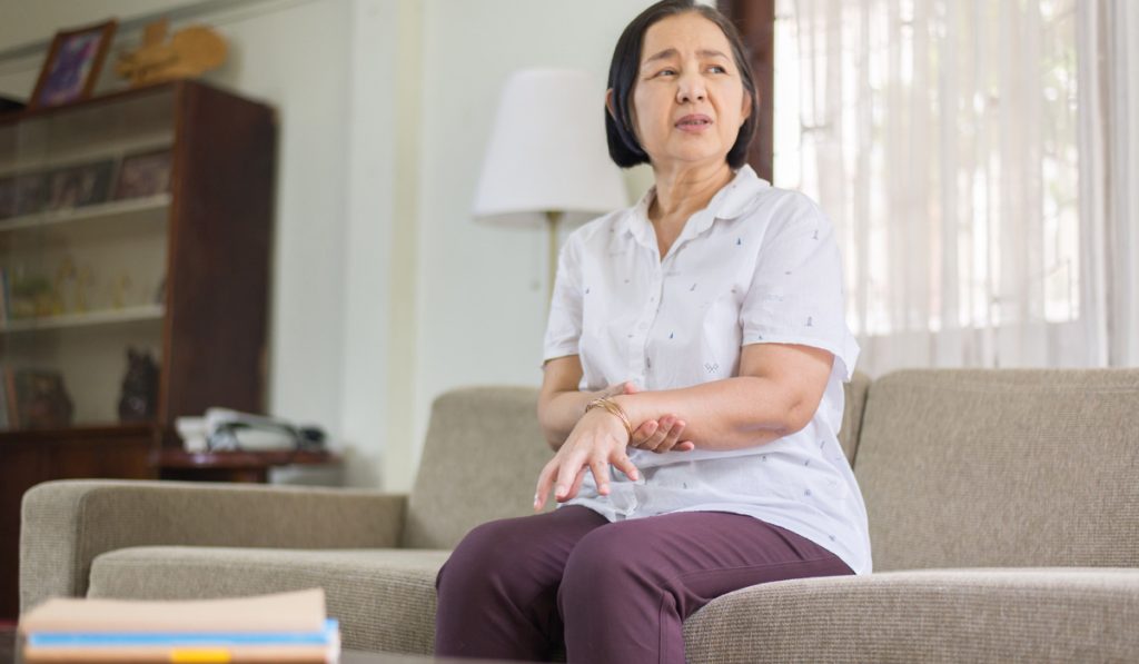 –อาการแข็งเกร็ง เป็นอาการที่ทำให้ผู้ป่วยเคลื่อนไหวลำบากมากขึ้น ทำสิ่งต่างๆ ได้ไม่ถนัด และอาการมักเริ่มที่ร่างกายข้างใดข้างหนึ่งก่อน