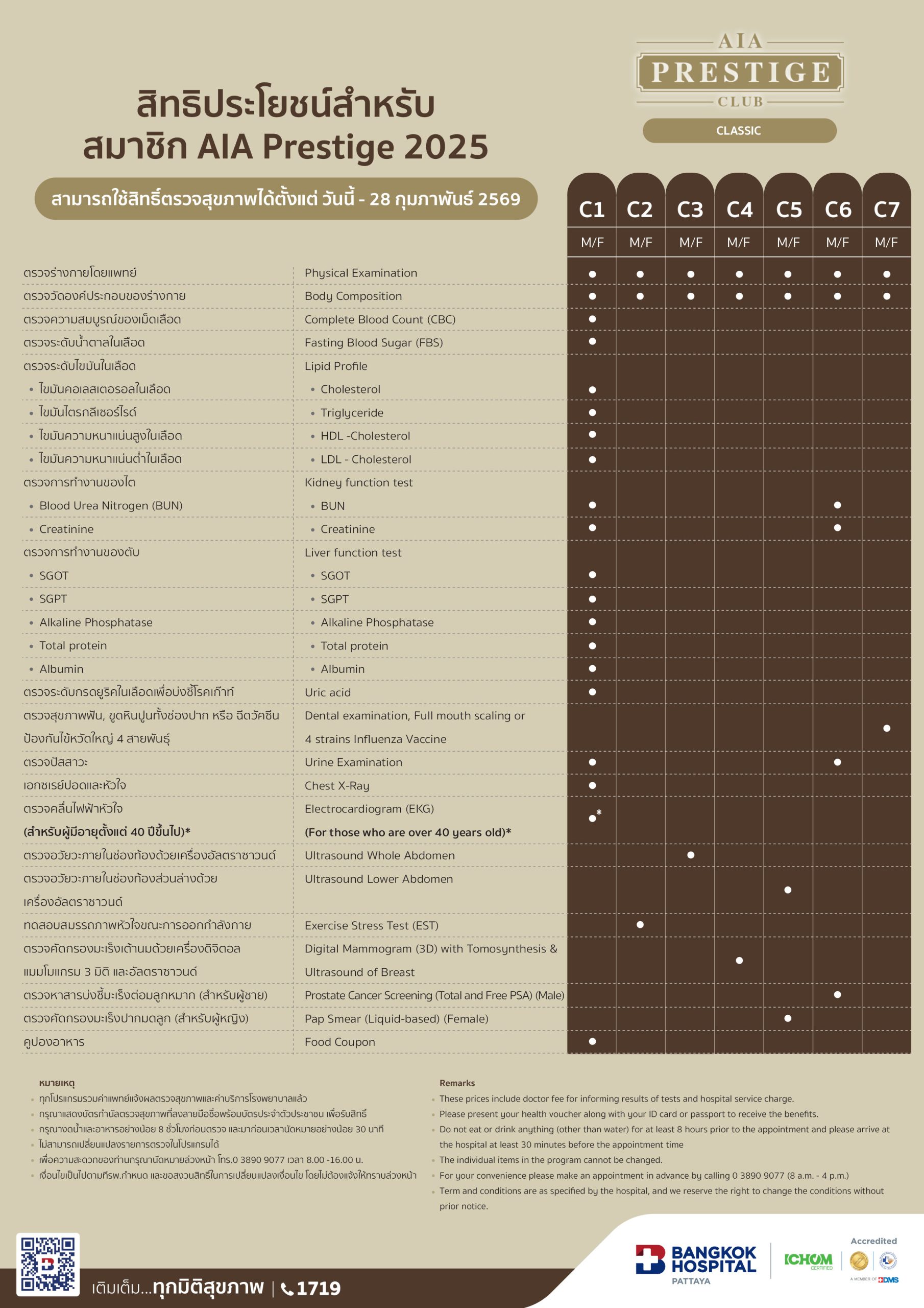 สิทธิประโยชน์สำหรับสมาชิก AIA Prestige 2025