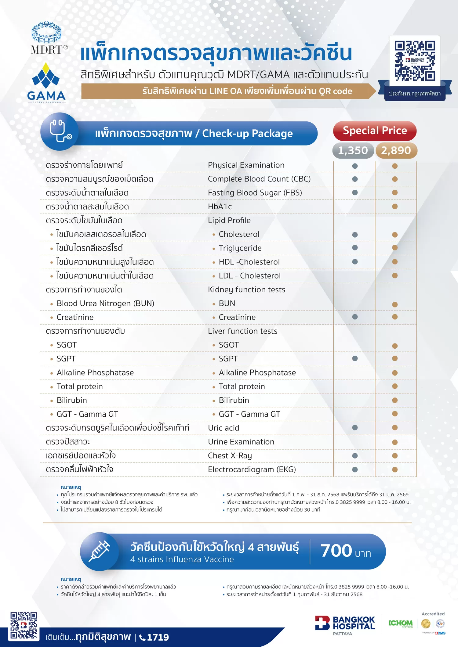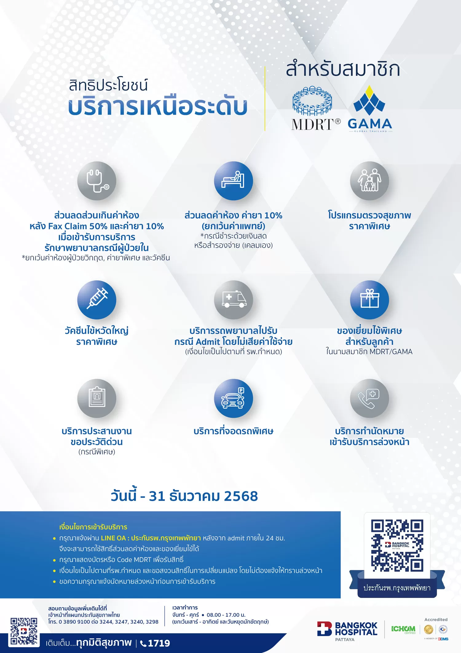 สอบถามข้อมูลเพิ่มเติมได้ที่ โทร : +66 38-909-100 ต่อ 3244, 3247, 3240, 3298 หรือ Line OA : ประกัน รพ. กรุงเทพพัทยา