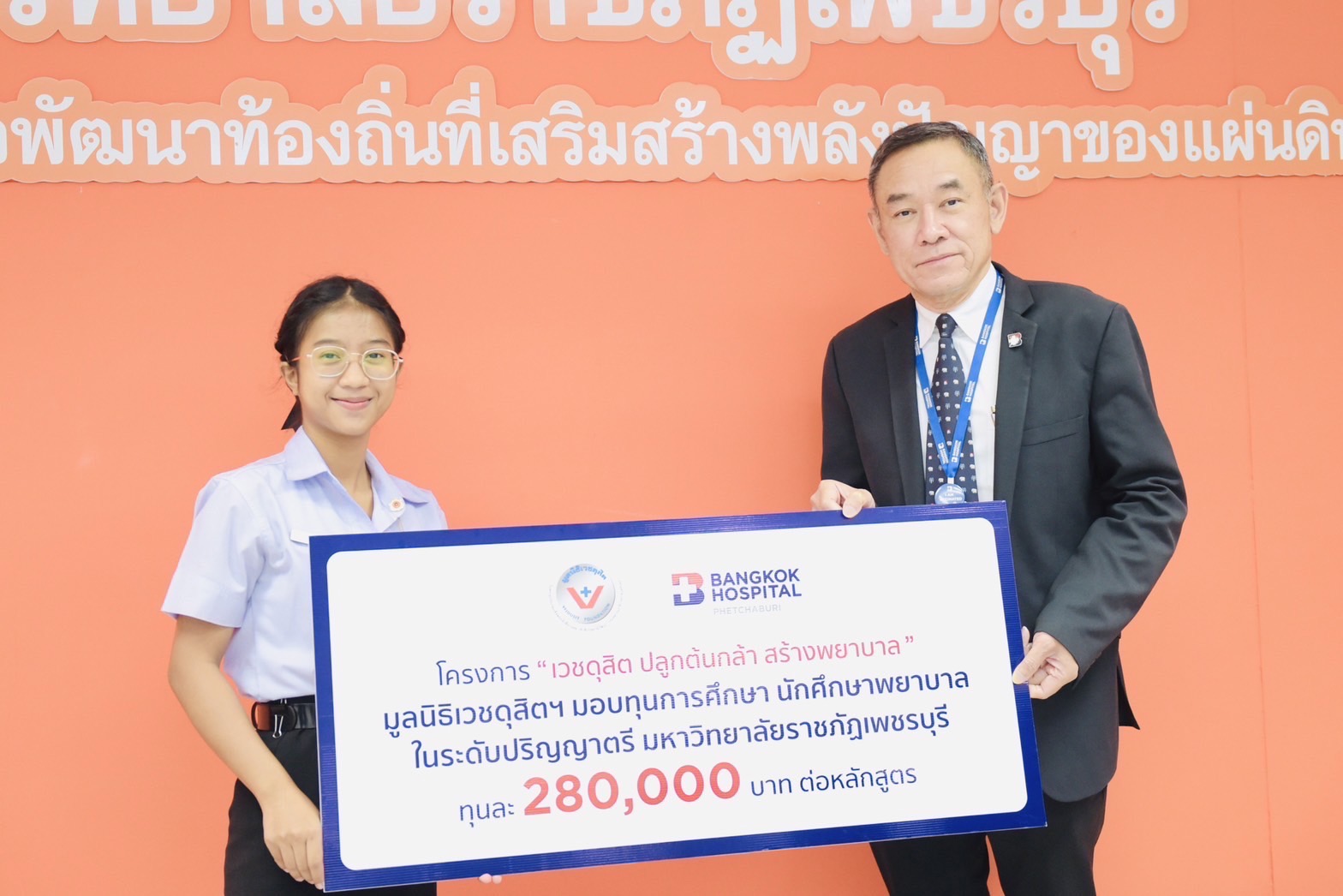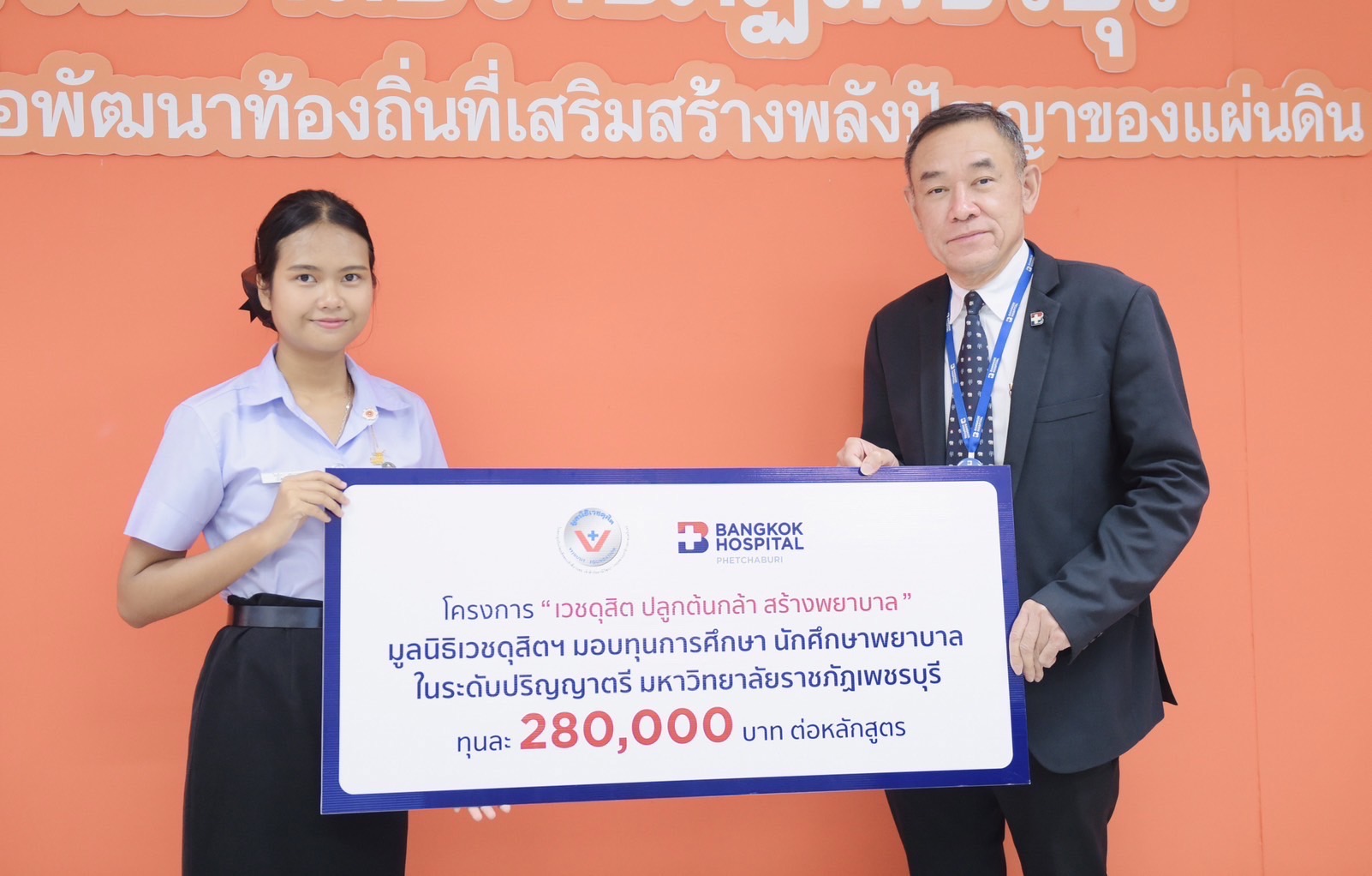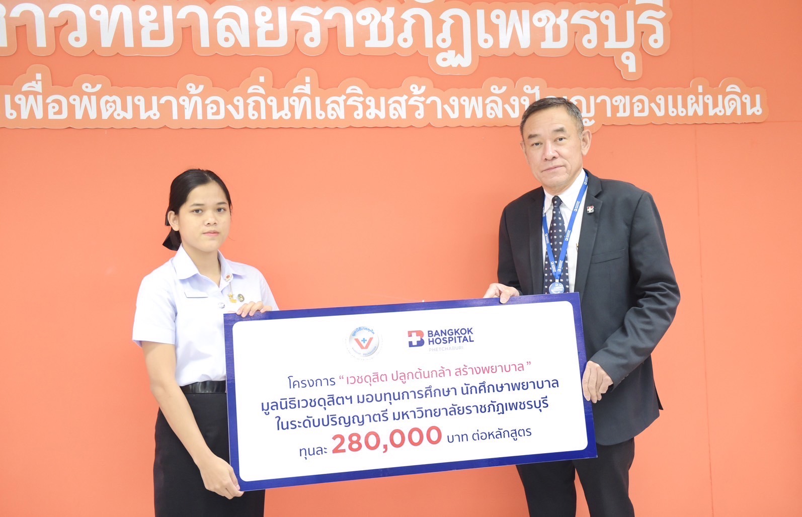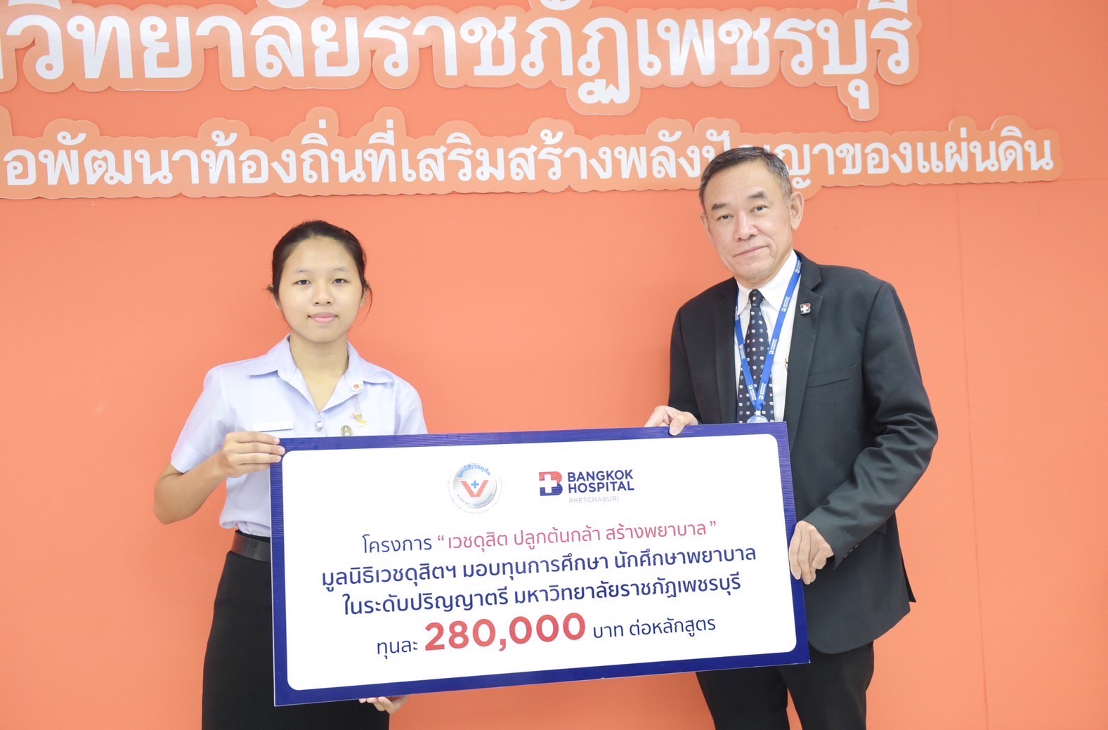 โรงพยาบาลกรุงเทพเพชรบุรี นำโดย นพ.ภูดิท พึ่งจันทรเดช ผู้อำนวยการโรงพยาบาล และคณะผู้บริหาร เป็นตัวแทนมอบทุนการศึกษา ในโครงการ “เวชดุสิตฯ ปลูกต้นกล้า สร้างพยาบาล “ สำหรับนักศึกษาระดับปริญญาตรี สาขาพยาบาลศาสตร์ มหาวิทยาลัยราชภัฏเพชรบุรี เพื่อสร้างโอกาสทางการศึกษาให้แก่นักเรียนที่มีผลการเรียนดี แต่ขาดแคลนทุนทรัพย์ เป็นทุนการศึกษาต่อเนื่องตลอดหลักสูตร 4 ปี จำนวนทุนละ 280,000 บาท