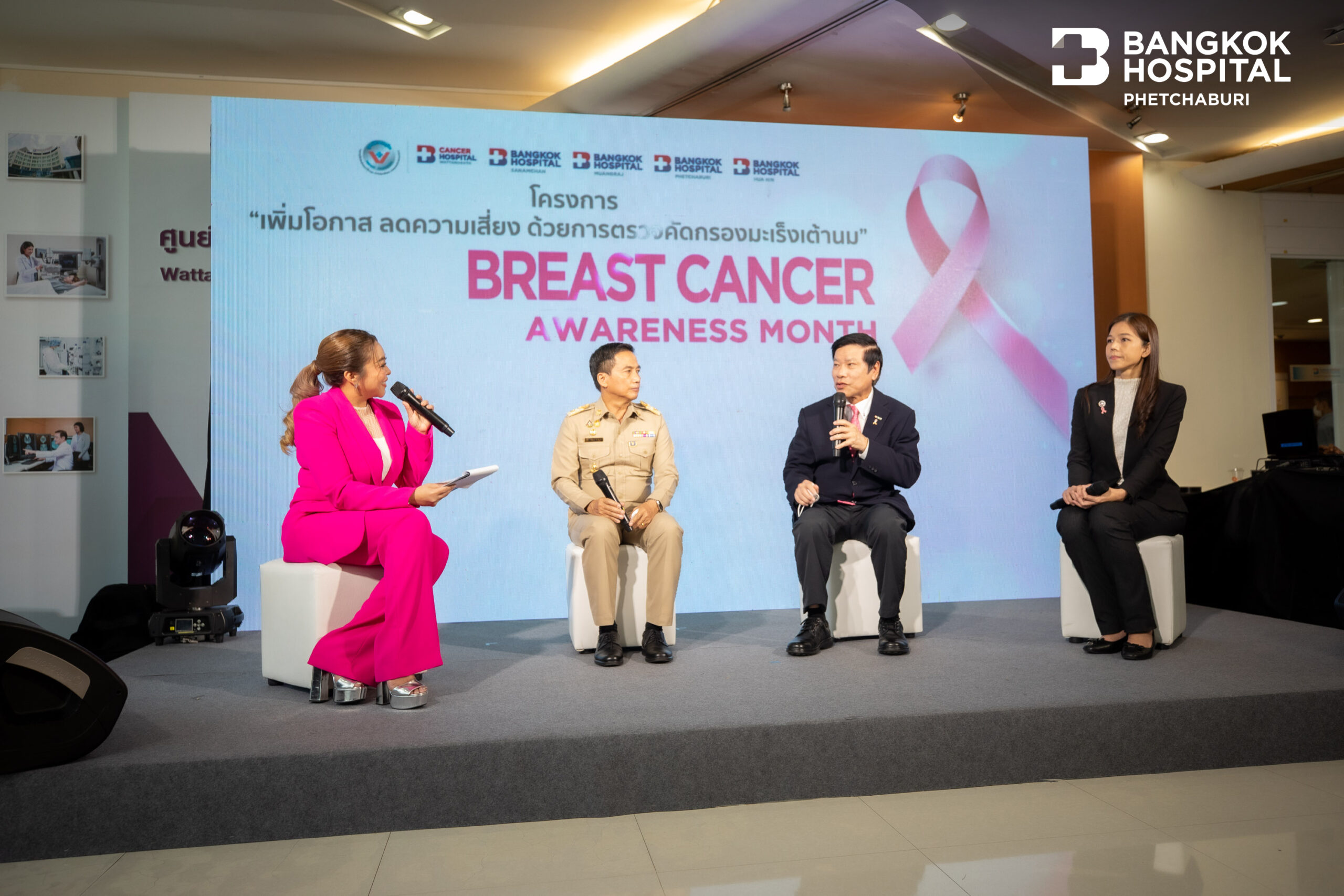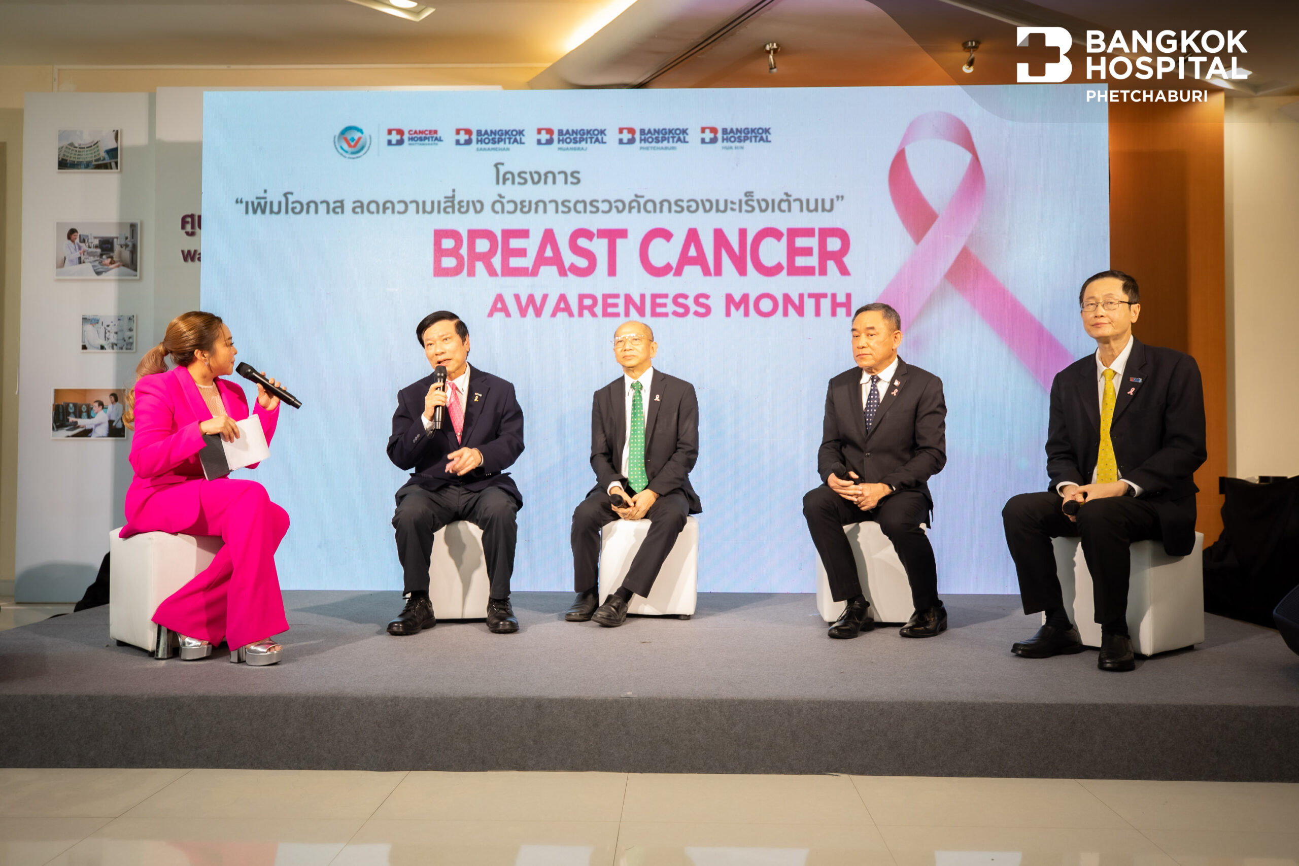 เดือนตุลาคมของทุกปี เป็นเดือนแห่งการรณรงค์ต่อต้านโรคมะเร็งเต้านม ที่ถือว่าเป็นมะเร็งร้ายอันดับ 1 ของผู้หญิงทั่วโลก ปีนี้โรงพยาบาลกรุงเทพ กลุ่ม 1 ได้แก่ รพ.มะเร็งกรุงเทพ วัฒโนสถ รพ.กรุงเทพสนามจันทร์ รพ.กรุงเทพเมืองราช รพ.กรุงเทพเพชรบุรี และ รพ.กรุงเทพหัวหิน ได้ผสานความร่วมมือกับ มูลนิธิเวชดุสิตในพระอุปถัมภ์ สมเด็จพระเจ้าพี่นางเธอ เจ้าฟ้ากัลยาณิวัฒนา กรมหลวงนราธิวาสราชนครินทร์ และสำนักงานเขตห้วยขวาง จัดโครงการเพิ่มโอกาส ลดความเสี่ยง ด้วยการตรวจคัดกรองมะเร็งเต้านม ปิดช่องว่างการดูแล เติมเต็มทุกการรักษาผู้ป่วยมะเร็งเต้านม ตรวจค้นหามะเร็งเต้านมสัญจร โดยจัดรถเอกซเรย์เต้านมเคลื่อนที่ระบบดิจิทัลแบบประสิทธิภาพสูง (Mobile Digital Mammogram and Ultrasound) ออกหน่วยเคลื่อนที่บริการตรวจค้นหาความเสี่ยงในการเกิดมะเร็งเต้านมให้ผู้หญิงไทยโดยไม่มีค่าใช้จ่าย ตามจุดบริการต่าง ๆ ทั้งในกรุงเทพและต่างจังหวัดในภาคตะวันตก