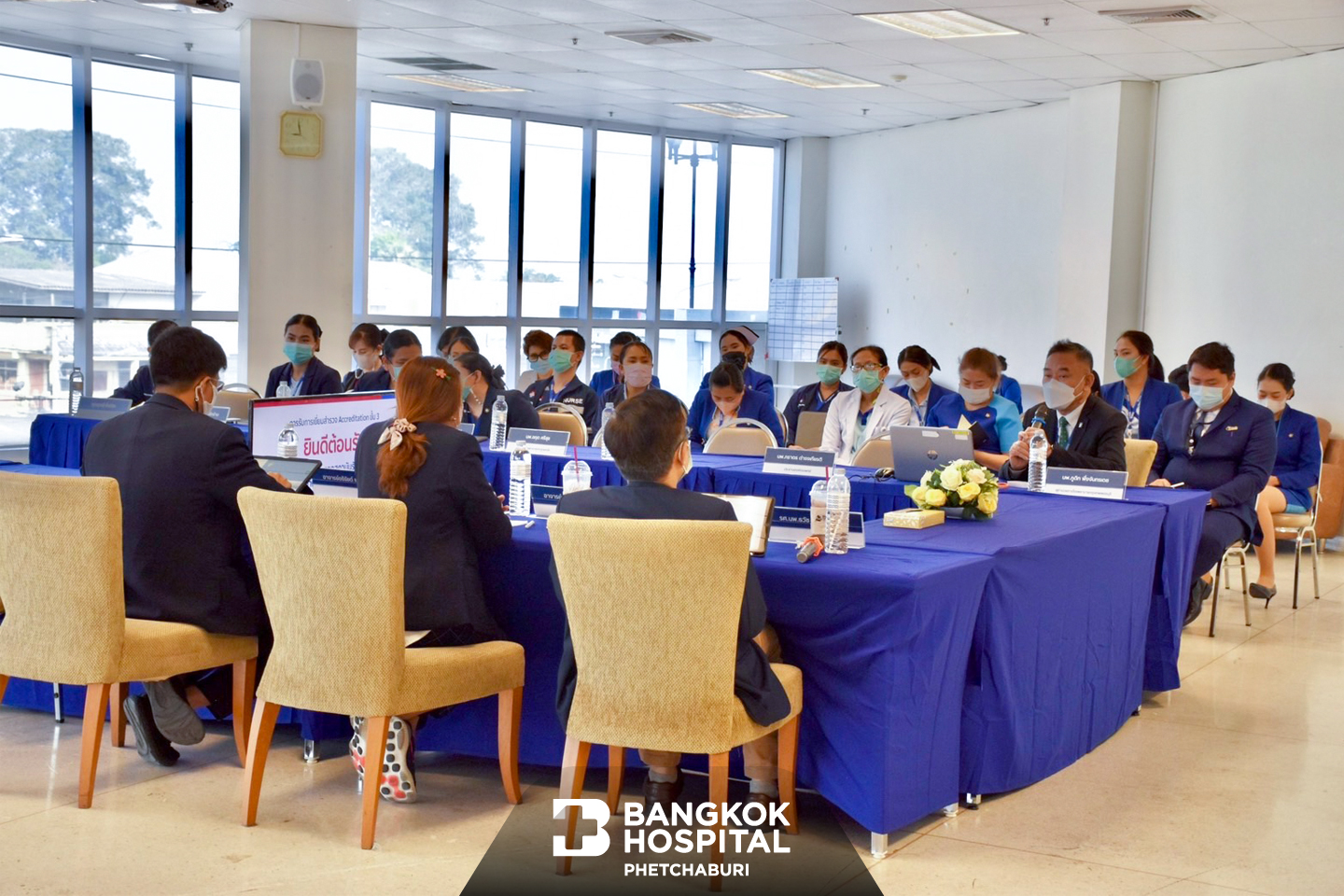 วันที่ 20-21 เมษายน 2566 โรงพยาบาลกรุงเทพเพชรบุรี รับการตรวจประเมินมาตรฐานสถานพยาบาล Accreditation ขั้น 3 จากสถาบันรับรองคุณภาพสถานพยาบาล (องค์การมหาชน) (สรพ.) โดยมีนายแพทย์ภูดิท พึ่งจันทรเดช ผู้อำนวยการโรงพยาบาล คณะผู้บริหาร และบุคลากรทุกสหวิชาชีพ ร่วมต้อนรับ และเข้ารับการประเมินทั้งด้านการนำเสนอผลการดำเนินงาน การเยี่ยมสำรวจตามแผนกต่างๆ อาคารสถานที่ เพื่อให้เป็นไปตามเกณฑ์ที่ สรพ. กำหนด ซึ่งทางโรงพยาบาลฯ ได้มีการเตรียมความพร้อมรับการประเมิน HA และมีการพัฒนาอย่างต่อเนื่อง เพื่อให้สอดคล้องกับวิสัยทัศน์ที่ตั้งไว้ต่อไป