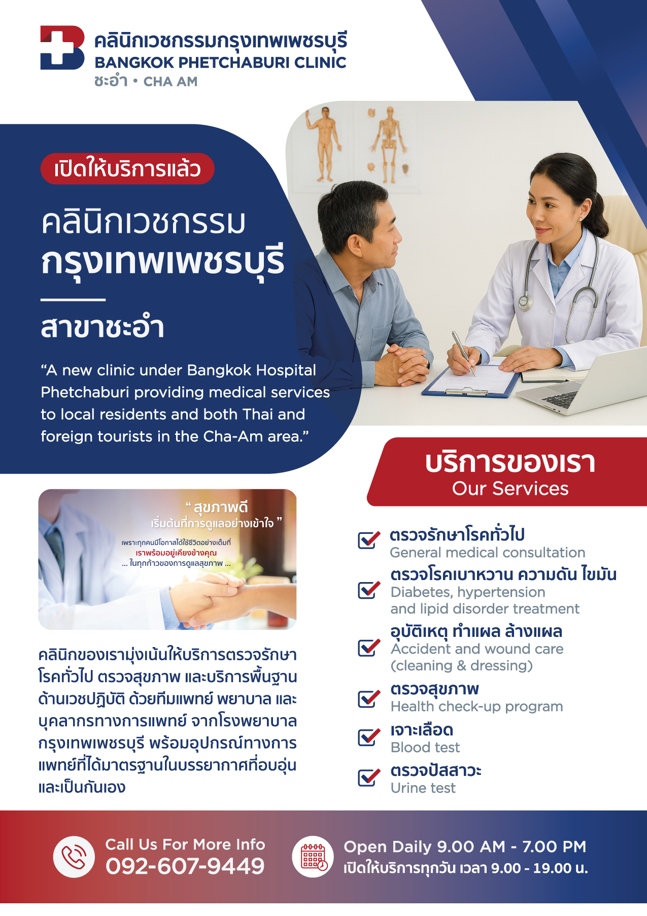 คลินิกเวชกรรมกรุงเทพเพชรบุรี สาขาชะอำ เปิดให้บริการแล้ว!