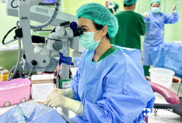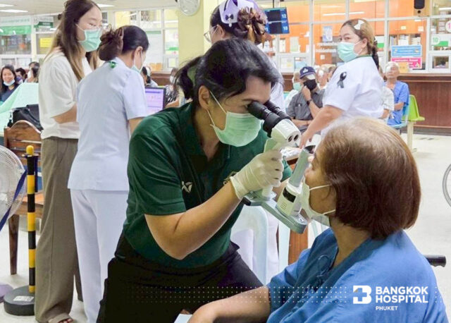 โรงพยาบาลกรุงเทพภูเก็ต โดยแพทย์หญิงเขมวรรณ เวทยไวกูณฐ์ จักษุแพทย์ผู้เชี่ยวชาญโรคกระจกตาและการแก้ไขสายตา ร่วมกับโรงพยาบาลตะกั่วป่า และภาควิชาจักษุวิทยา คณะแพทยศาสตร์ศิริราชพยาบาล มหาวิทยาลัยมหิดล ลงพื้นที่ให้บริการประชาชนในโครงการออกหน่วยผ่าตัดต้อกระจกพร้อมใส่เลนส์แก้วตาเทียมแก่ผู้ป่วยในพื้นที่จังหวัดพังงา
