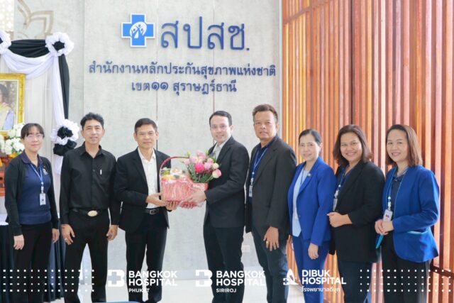 เครือโรงพยาบาลกรุงเทพจังหวัดภูเก็ต นำโดย นายแพทย์พลลภัตม์ เสถียร ผู้ช่วยผู้อำนวยการโรงพยาบาลกรุงเทพสิริโรจน์ เข้าสวัสดีปีใหม่และหารือความร่วมมือกับผู้บริหาร สำนักงานหลักประกันสุขภาพแห่งชาติ (สปสช.) เขต 11 และ แพทย์หญิงนิธิมา ศรีเกตุ ผู้อำนวยการโรงพยาบาลมะเร็งสุราษฎร์ธานี เพื่อพัฒนาความร่วมมือด้านการดูแลสุขภาพประชาชนในพื้นที่เขตสุขภาพที่ 11
