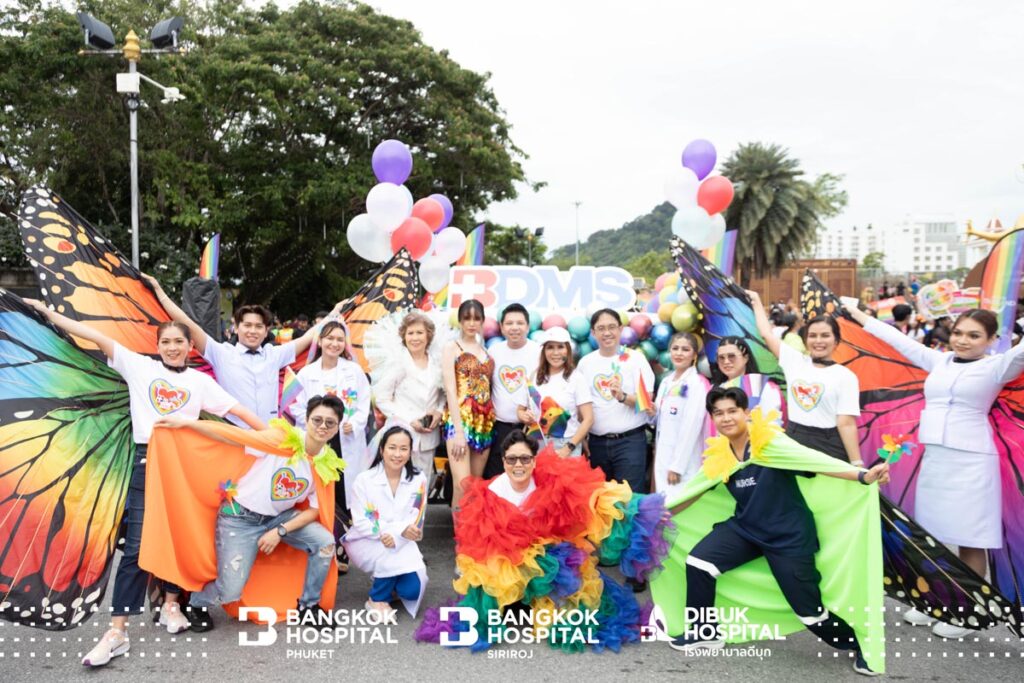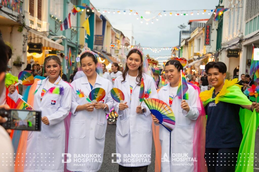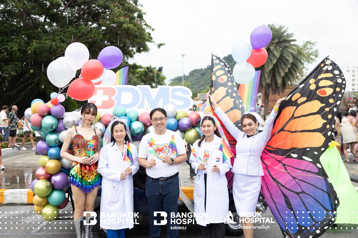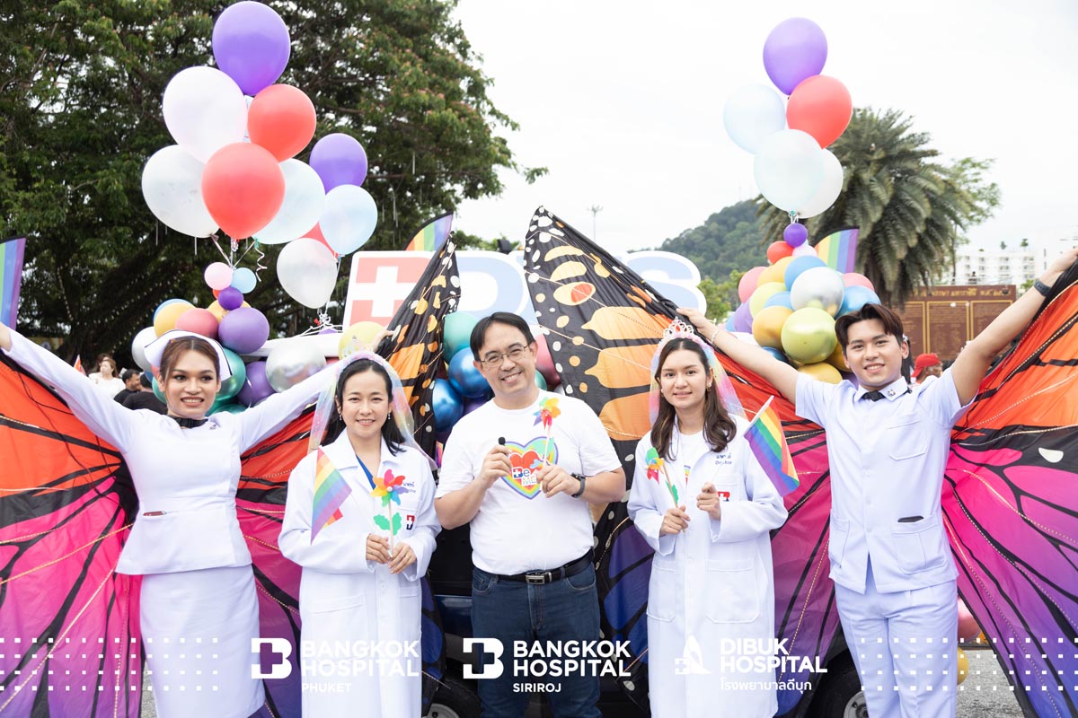 โรงพยาบาลในเครือกรุงเทพดุสิตเวชการ (BDMS) จังหวัดภูเก็ต ประกอบด้วย โรงพยาบาลกรุงเทพภูเก็ต โรงพยาบาลกรุงเทพสิริโรจน์ และโรงพยาบาลดีบุก นำโดย นายแพทย์พิริยะ อธิสุข ผู้อำนวยการโรงพยาบาลกรุงเทพสิริโรจน์ พร้อมด้วย คณะแพทย์ พยาบาลและเจ้าหน้าที่ เข้าร่วมแสดงความยินดี ในขบวนไพรด์พาเหรด “Discover Phuket PRIDE 2024 at Old Town” ในโอกาสเฉลิมฉลอง Pride Month เดือนแห่งความภาคภูมิใจ