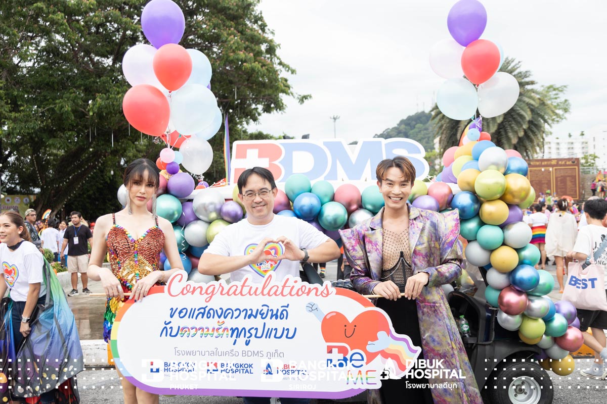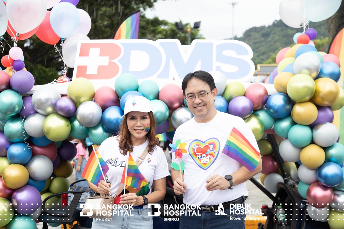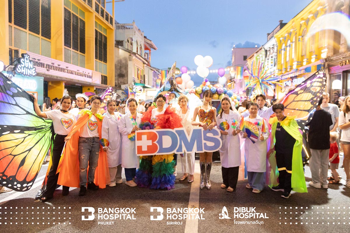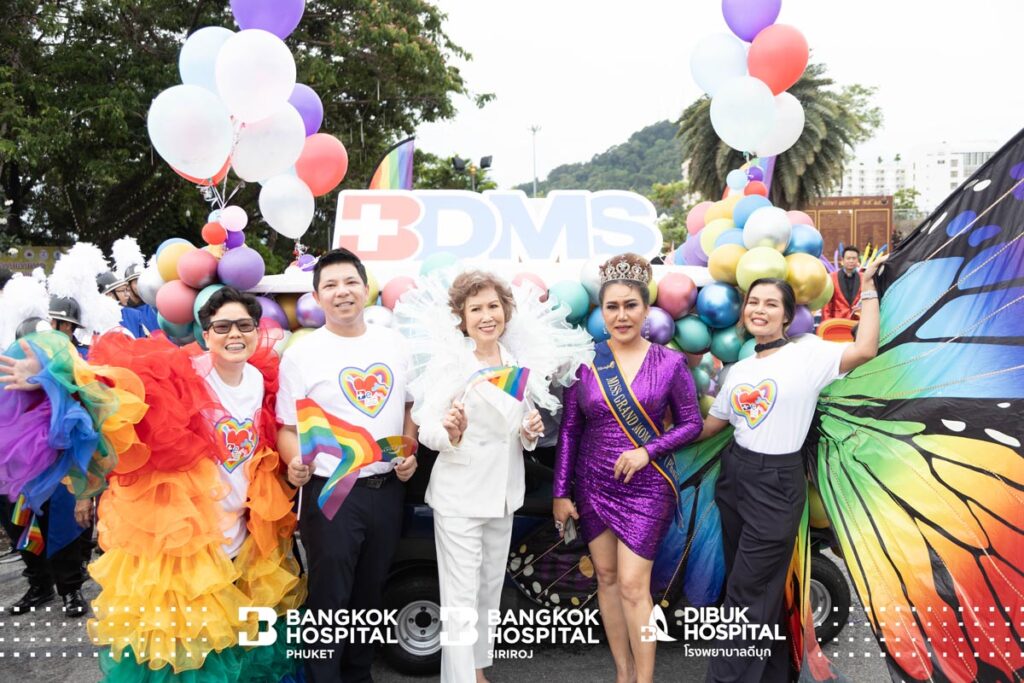โรงพยาบาลในเครือกรุงเทพดุสิตเวชการ (BDMS) จังหวัดภูเก็ต ประกอบด้วย โรงพยาบาลกรุงเทพภูเก็ต โรงพยาบาลกรุงเทพสิริโรจน์ และโรงพยาบาลดีบุก นำโดย นายแพทย์พิริยะ อธิสุข ผู้อำนวยการโรงพยาบาลกรุงเทพสิริโรจน์ พร้อมด้วย คณะแพทย์ พยาบาลและเจ้าหน้าที่ เข้าร่วมแสดงความยินดี ในขบวนไพรด์พาเหรด “Discover Phuket PRIDE 2024 at Old Town” ในโอกาสเฉลิมฉลอง Pride Month เดือนแห่งความภาคภูมิใจ