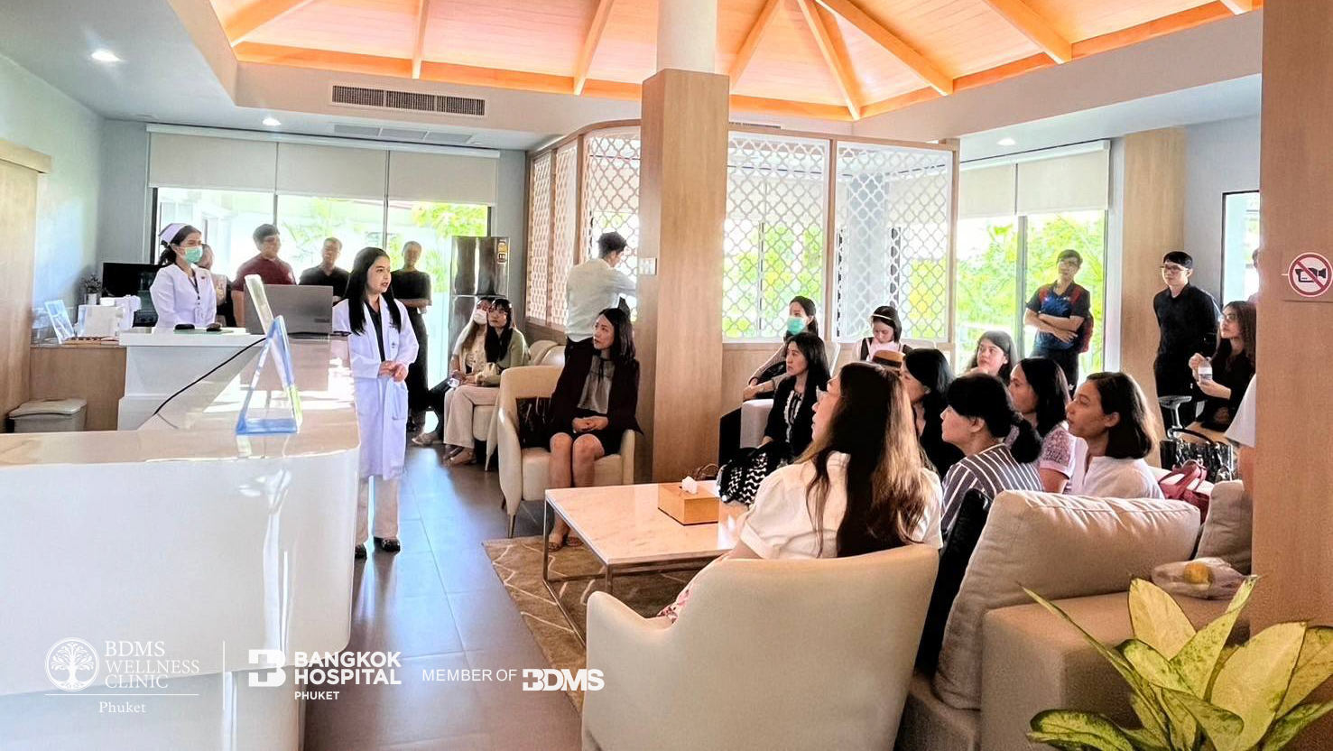แพทย์หญิงยุวลักษณ์ ผิวนวล แพทย์ผู้ชำนาญการด้านการรักษาและฟื้นฟูสุขภาพ โรงพยาบาลกรุงเทพภูเก็ต และคุณศรีสุดา เชิงสุวรรณวงศ์ หัวหน้าแผนก BDMS Wellness Clinic Laguna Phuket ได้ให้การต้อนรับคณะนักวิชาการและเภสัชกร จากมหาวิทยาลัยขอนแก่น รวมถึงคณะผู้แทนจากโรงพยาบาลชั้นนำของภาครัฐในโครงการประชุมเชิงปฏิบัติการเภสัชกรรม เรื่อง “การพัฒนาบริการเภสัชกรรมสำหรับการท่องเที่ยวเชิงการแพทย์” (Pharmacy Service Development for Medical Tourism) ซึ่งจัดขึ้นที่ BDMS Wellness Clinic Laguna Phuket