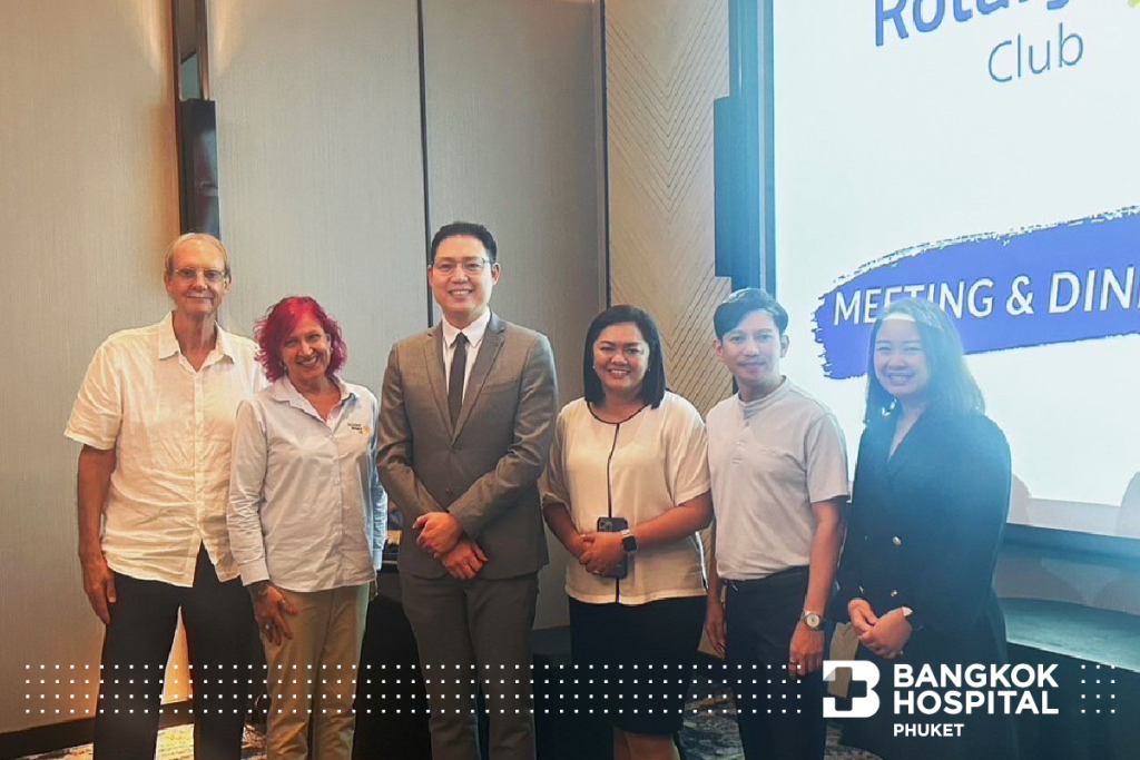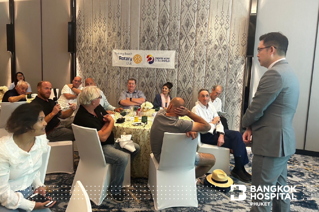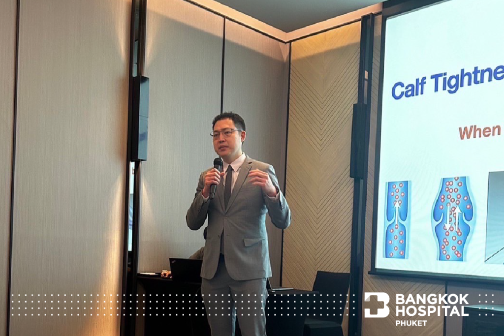 ผศ.นพ.บรรเจิด ประดิษฐ์สุขถาวร ศัลยแพทย์โรคหลอดเลือด โรงพยาบาลกรุงเทพภูเก็ต บรรยายในหัวข้อ Calf tightness and varicose veins; when should we concern? ในงาน Weekly meeting ให้แก่ชาวต่างชาติที่อาศัยอยู่ในจังหวัดภูเก็ต ณ โรงแรม Four Points Sheraton Patong Beach