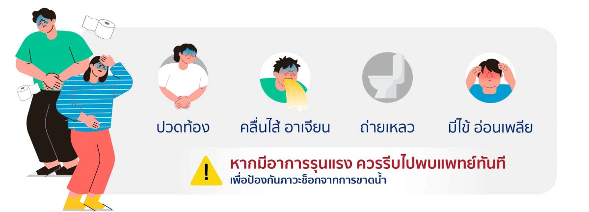 - การบริโภคอาหาร น้ำดื่ม และน้ำแข็งที่มีการปนเปื้อนเชื้อ