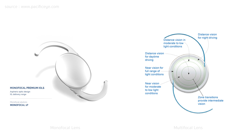 เลนส์แก้วตาเทียมมีกี่แบบ ? จริง ๆ แล้ว 10 ปีที่ผ่านมา เทคโนโลยีของเลนส์แก้วตาเทียมนั้นไปไกลมาก เลนส์แก้วตาเทียมจึงมีหลากหลายแบบ หลายดีไซน์ มีความซับซ้อนเยอะมาก แต่ในแง่ที่ส่งผลกระทบกับคนไข้มากๆ และควรต้องรู้ ก็จะแบ่งเลนส์แก้วตาเทียมแบบง่ายๆ เป็น 2 ชนิดครับ