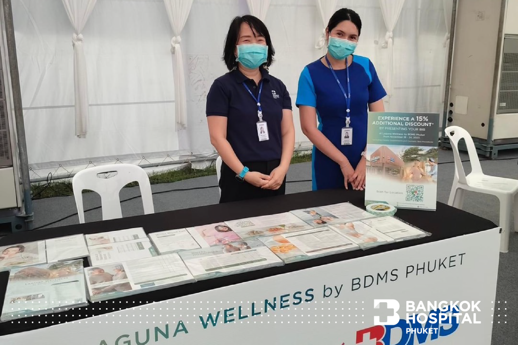 พยาบาลและเจ้าหน้าที่ Laguna Wellness by BDMS Phuket ออกบูธในงานลากูน่าภูเก็ตไตรกีฬาประจำปี 2023 ครั้งที่ 29 เพื่อประชาสัมพันธ์ และแสดงศักยภาพของ Laguna Wellness by BDMS Phuket ศูนย์รวมการดูแลสุขภาพครบวงจร ให้บริการได้ตั้งแต่เวชศาสตร์ชะลอวัยตลอดจนการฟื้นฟูสุขภาพ ภายใต้การดูแลของแพทย์ผู้เชี่ยวชาญ อันจะยกระดับการดูแลสุขภาพเชิงป้องกันให้แก่นักท่องเที่ยวทั้งชาวไทยและต่างชาติไปอีกขั้น เมื่อวันที่ 18-19 พฤศจิกายน 2566 ที่ผ่านมา
