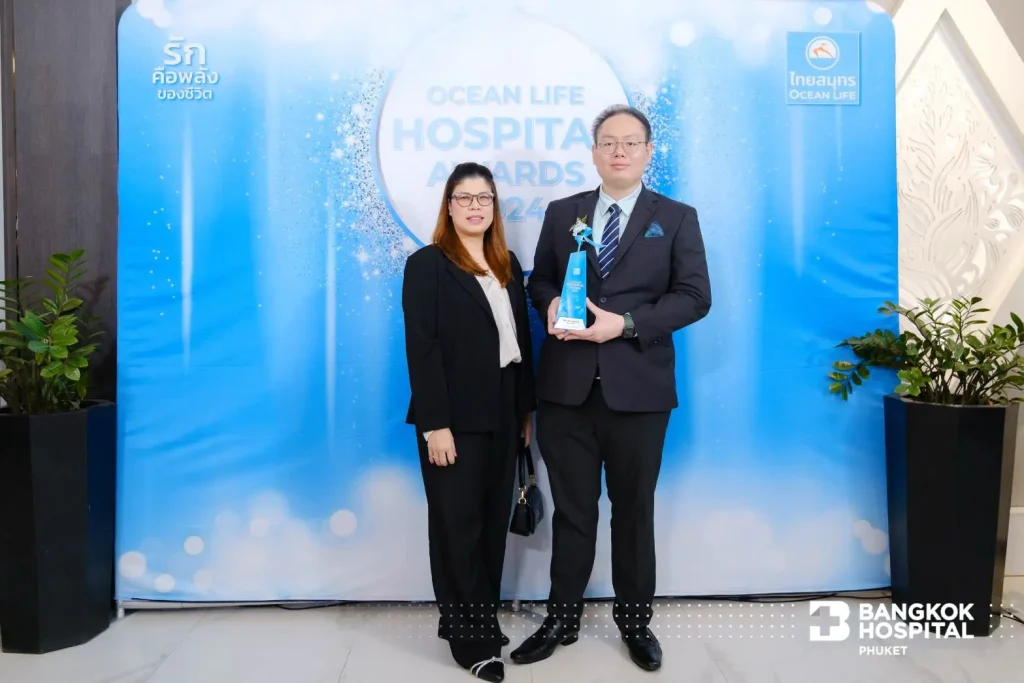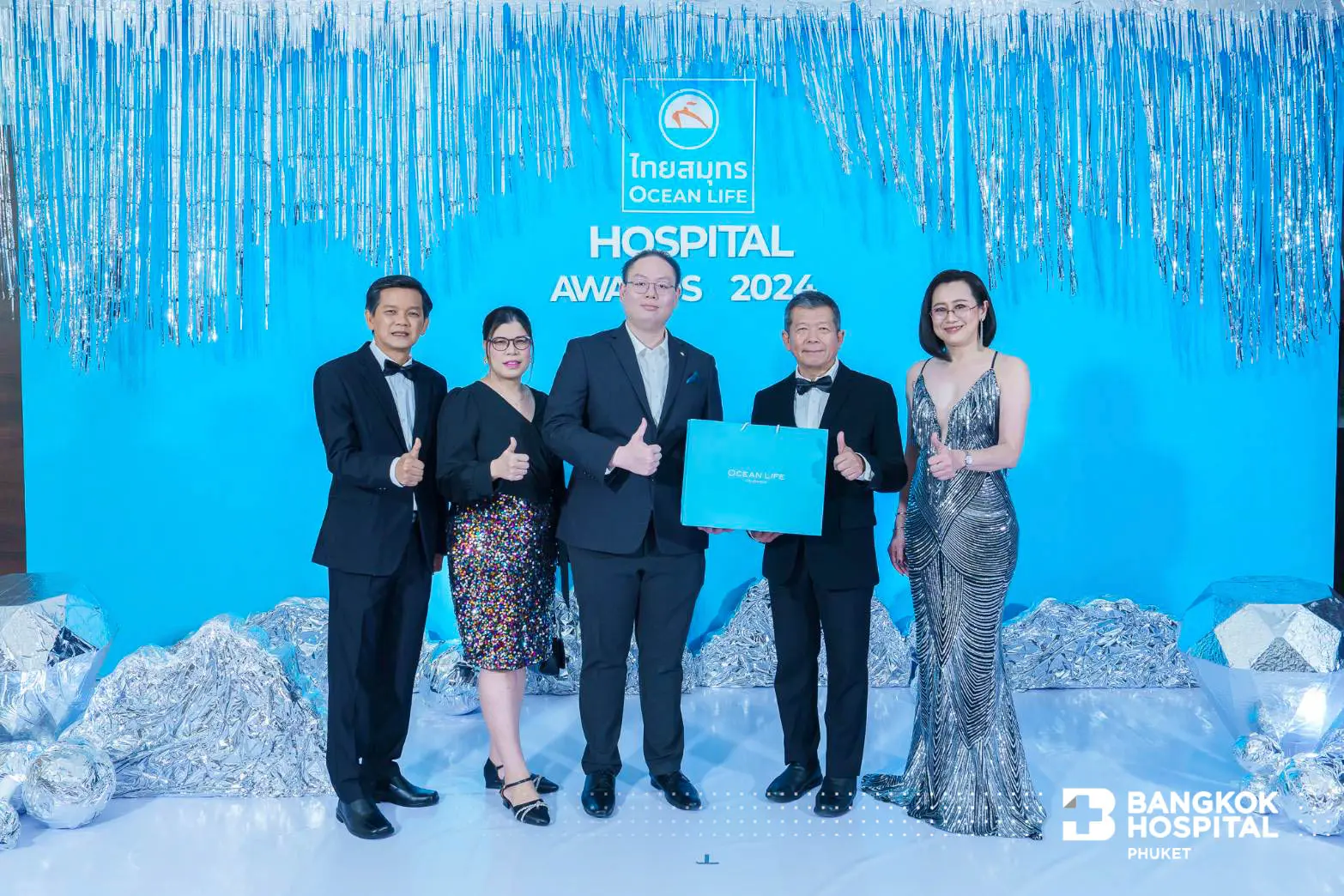 นายแพทย์ชัยกช อนุกูลกาญจน์ แพทย์ผู้ประสานงานประกันต่างประเทศ เป็นตัวแทนคณะผู้บริหาร โรงพยาบาลกรุงเทพภูเก็ต ขึ้นรับรางวัล Ocean Life Hospital Award 2024 ในหัวข้อ Best Healthcare Service ซึ่งจัดโดยบริษัทไทยสมุทรประกันชีวิต จำกัด (มหาชน) เป็นรางวัลยกย่องความเป็นเลิศในการให้บริการสุขภาพครบวงจร ภายใต้โครงการ Ocean Life Hospital Award 2024 การได้รับรางวัลครั้งนี้ถือเป็นอีกหนึ่งความสำเร็จที่สะท้อนถึงวิสัยทัศน์ของโรงพยาบาลกรุงเทพภูเก็ตในการเป็นผู้นำด้านการให้บริการทางการแพทย์ที่มีคุณภาพ พร้อมทั้งมุ่งมั่นพัฒนาและสร้างมาตรฐานใหม่ในการให้บริการด้านประกันชีวิต และประกันสุขภาพ เพื่อมอบประสบการณ์ที่ดีให้แก่ผู้รับบริการ