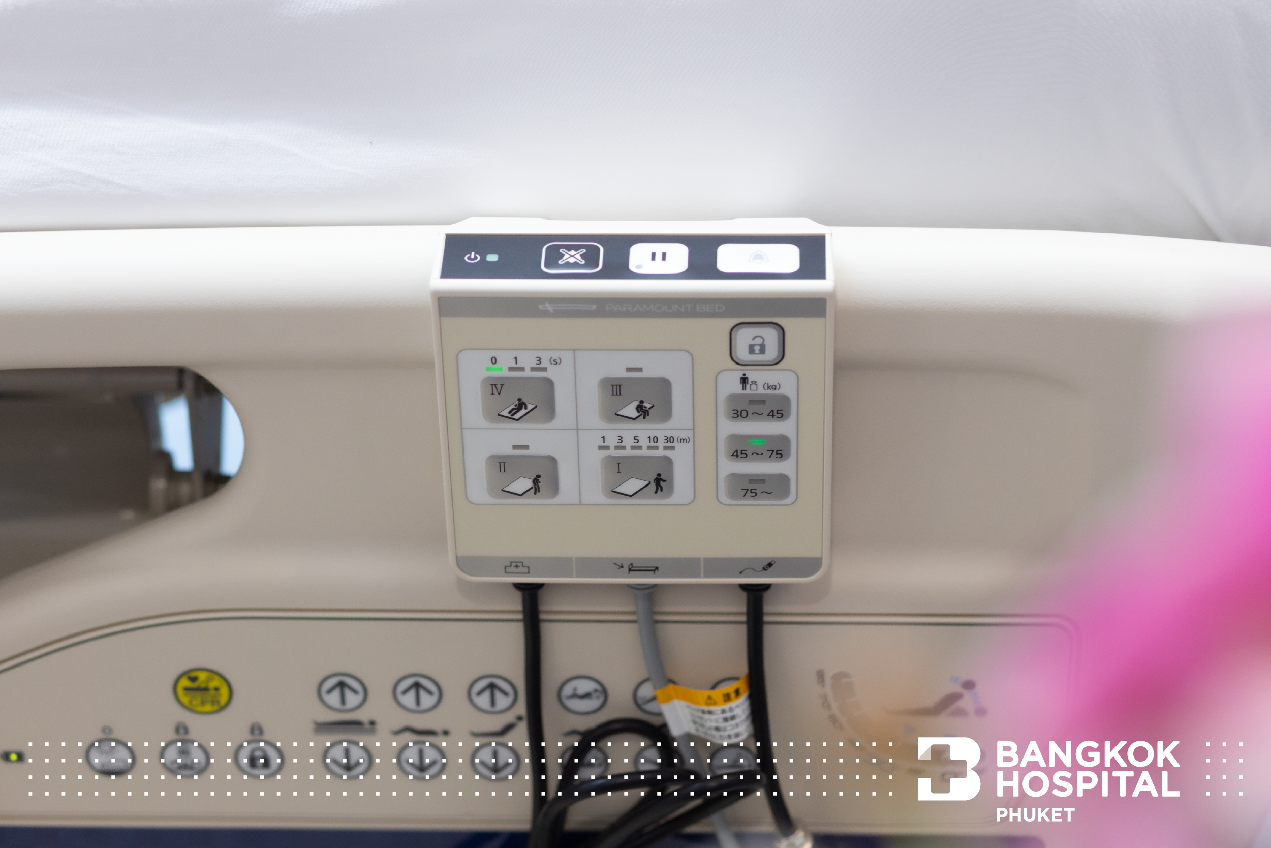 โดยผู้รับบริการจะได้รับความเป็นส่วนตัว ควบคู่กับบริการทางการแพทย์ เพิ่มความปลอดภัย ด้วยระบบติดตามสถานะของผู้ป่วย เสริมการช่วยเหลือและป้องกันแผลกดทับในผู้ป่วยระยะพักฟื้น ด้วยเทคโนโลยีเตียงไฟฟ้าปรับลุก นั่ง เดิน ให้ง่ายเพียงสัมผัสเดียว พร้อม Light Motion Sensor ปลอดภัยทุกก้าวแม้ขณะห้องมืด
