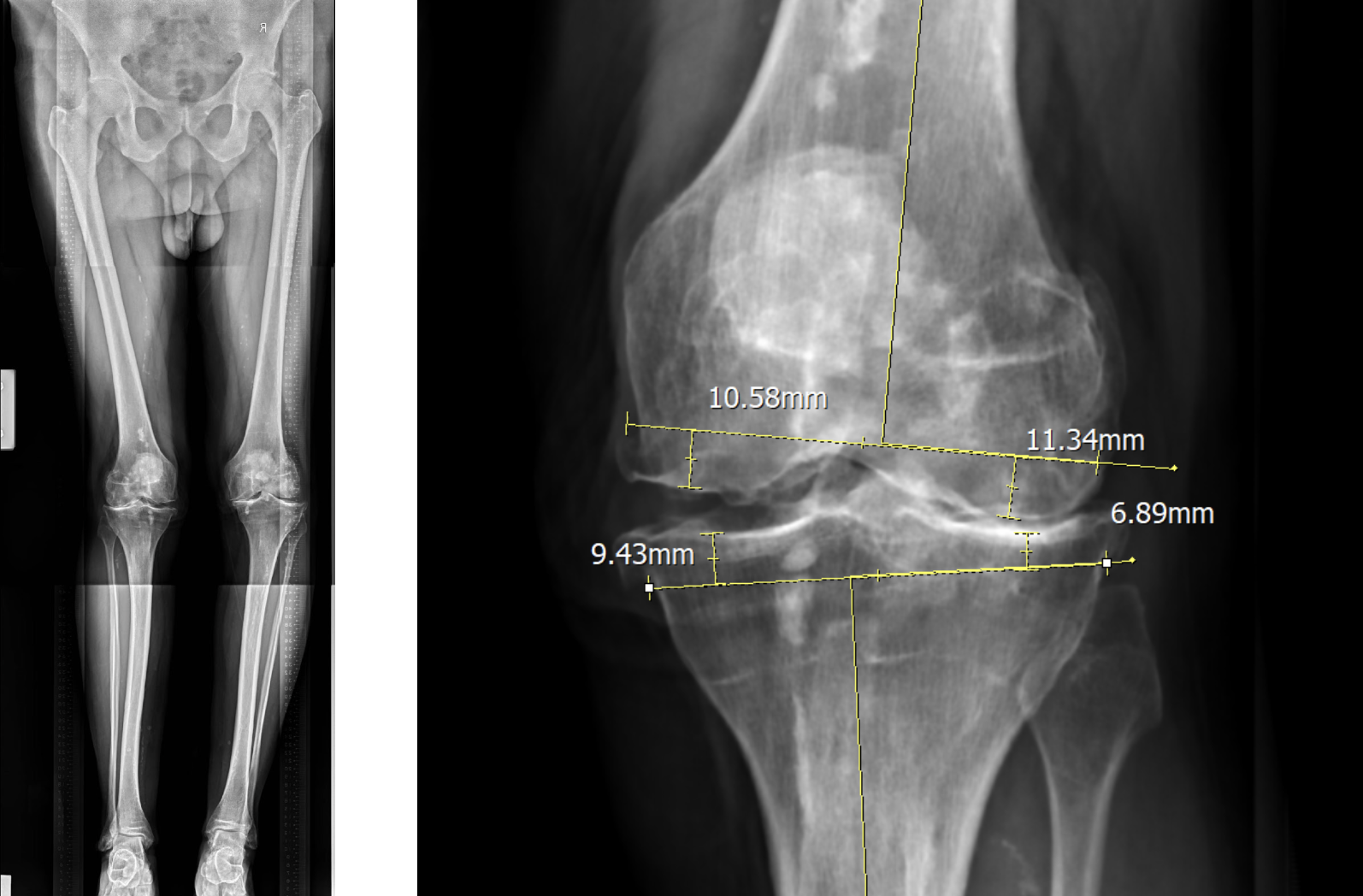 การผ่าตัดด้วยเครื่องมือมาตรฐานในการผ่าตัดเปลี่ยนข้อเข่าเทียมด้วยวิธีมาตรฐาน ผู้ป่วยจะได้รับการถ่ายภาพรังสีแบบเต็มขา (Full Leg Film) ซึ่งครอบคลุมตั้งแต่ข้อสะโพกจนถึงข้อเท้า ภาพรังสีนี้จะใช้สำหรับวางแผนการผ่าตัด โดยศัลยแพทย์จะประเมินทิศทางของแนวแรง แนวที่ต้องตัดกระดูก และความหนาของกระดูกที่จะตัดอย่างละเอียดในระดับมิลลิเมตร