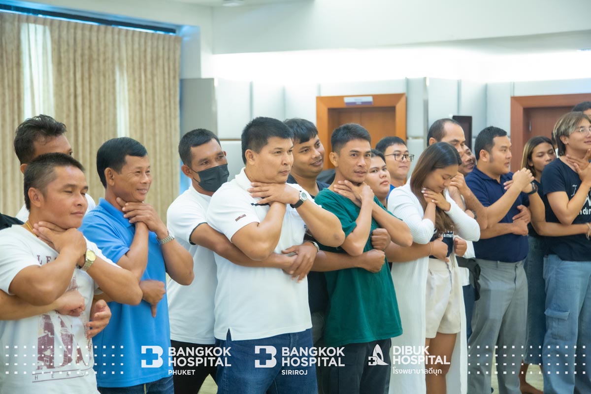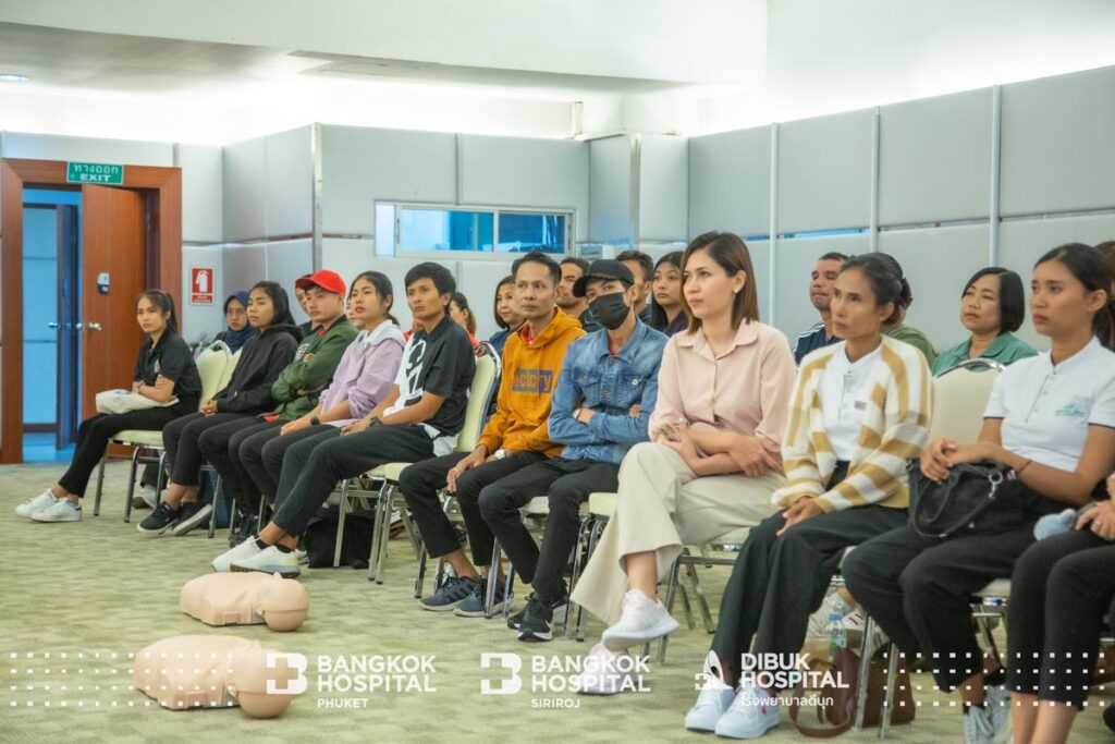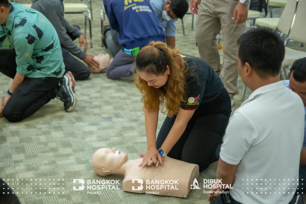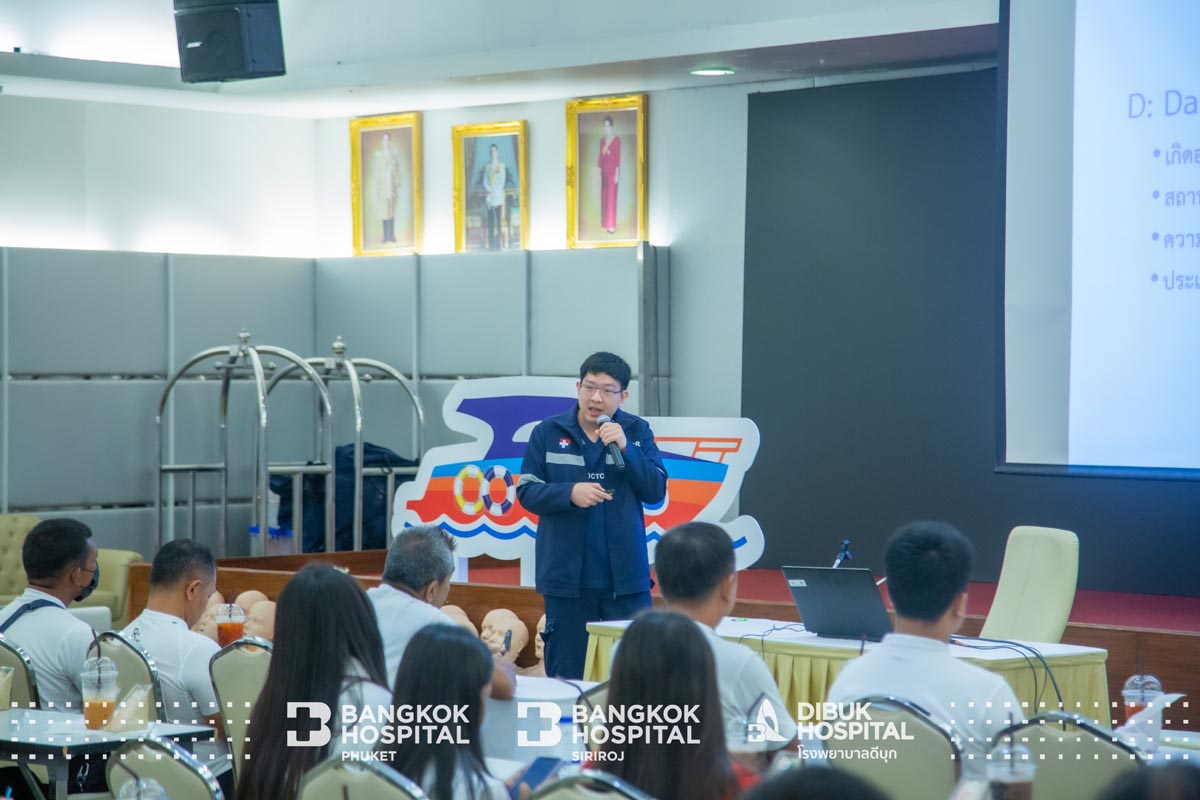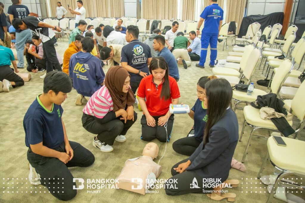 นอกจากนี้ยังมีการฝึกอบรมการปฐมพยาบาลเบื้องต้น ทั้งภาคทฤษฎีและปฏิบัติ เรื่อง การเคลื่อนย้ายผู้ป่วย และการช่วยฟื้นคืนชีพ โดยทีมศูนย์พัฒนาบุคลากรทางการแพทย์ เครือโรงพยาบาลกรุงเทพ กลุ่มภาคใต้ เพื่อให้ผู้อบรมเกิดความมั่นใจและนำเอาประสบการณ์ที่ได้รับ ไปใช้อย่างมีประสิทธิภาพ