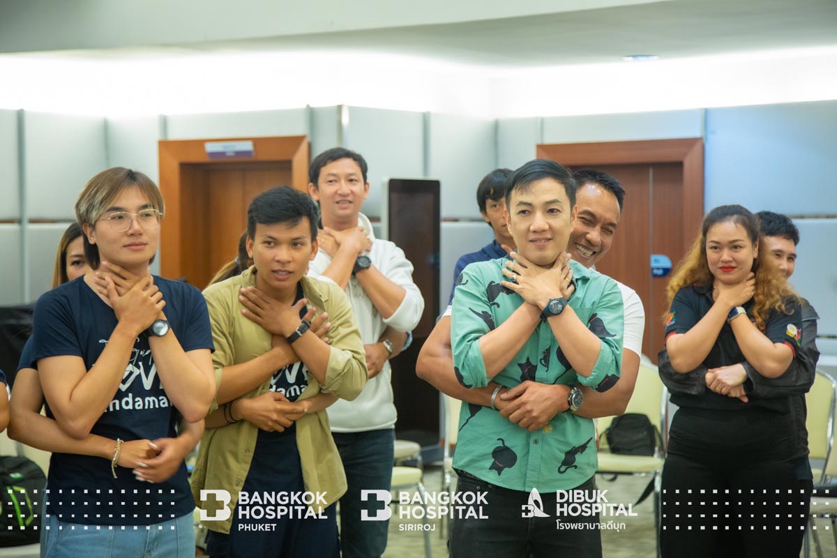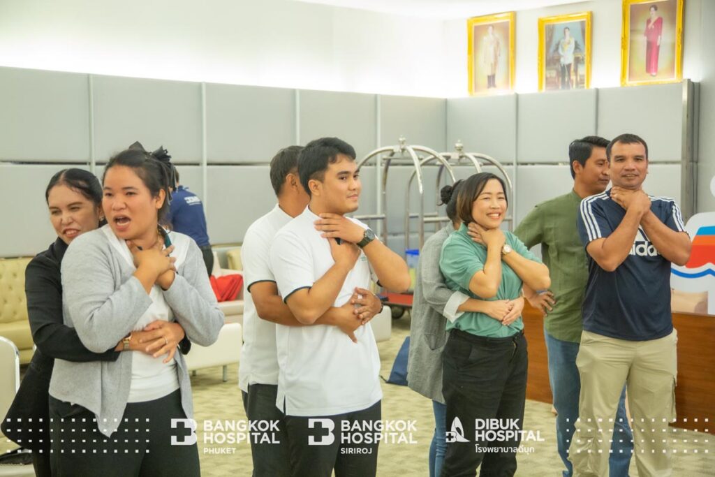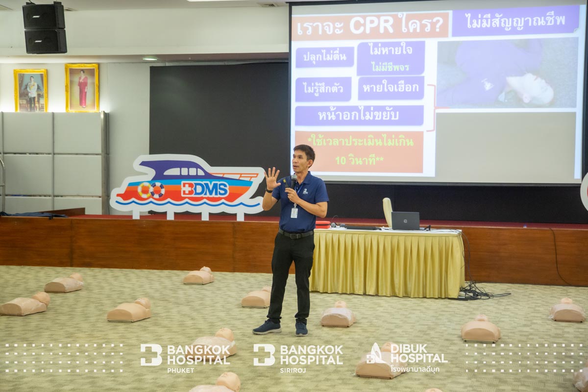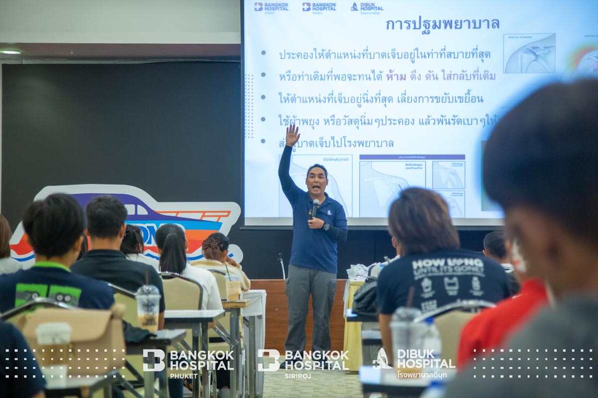 นอกจากนี้ยังมีการฝึกอบรมการปฐมพยาบาลเบื้องต้น ทั้งภาคทฤษฎีและปฏิบัติ เรื่อง การเคลื่อนย้ายผู้ป่วย และการช่วยฟื้นคืนชีพ โดยทีมศูนย์พัฒนาบุคลากรทางการแพทย์ เครือโรงพยาบาลกรุงเทพ กลุ่มภาคใต้ เพื่อให้ผู้อบรมเกิดความมั่นใจและนำเอาประสบการณ์ที่ได้รับ ไปใช้อย่างมีประสิทธิภาพ