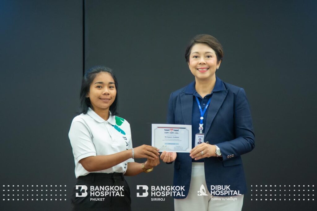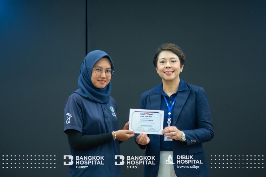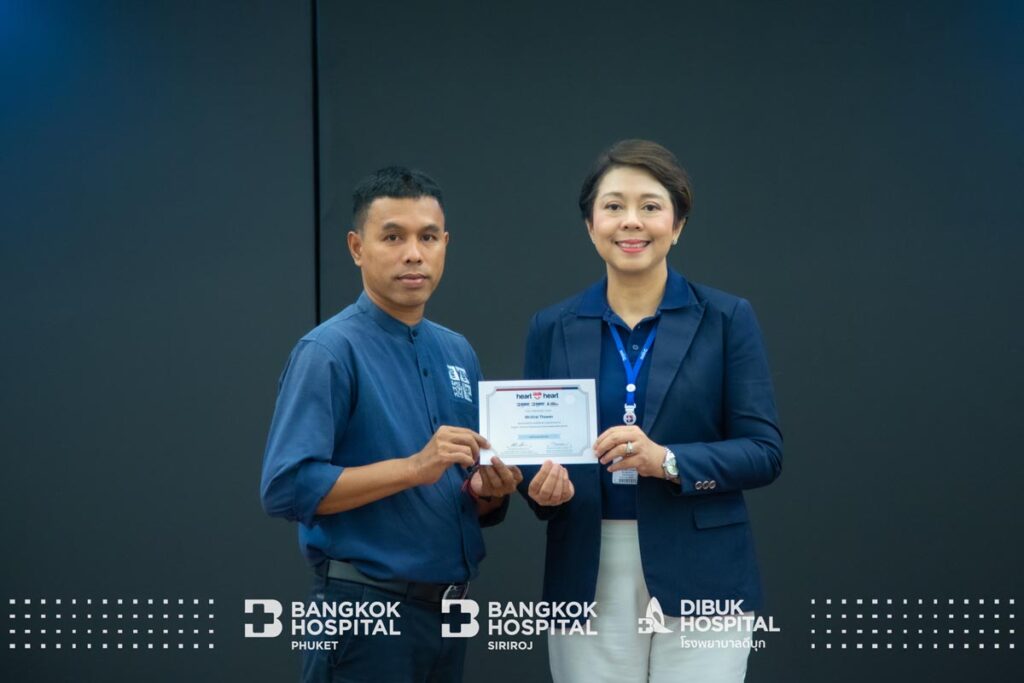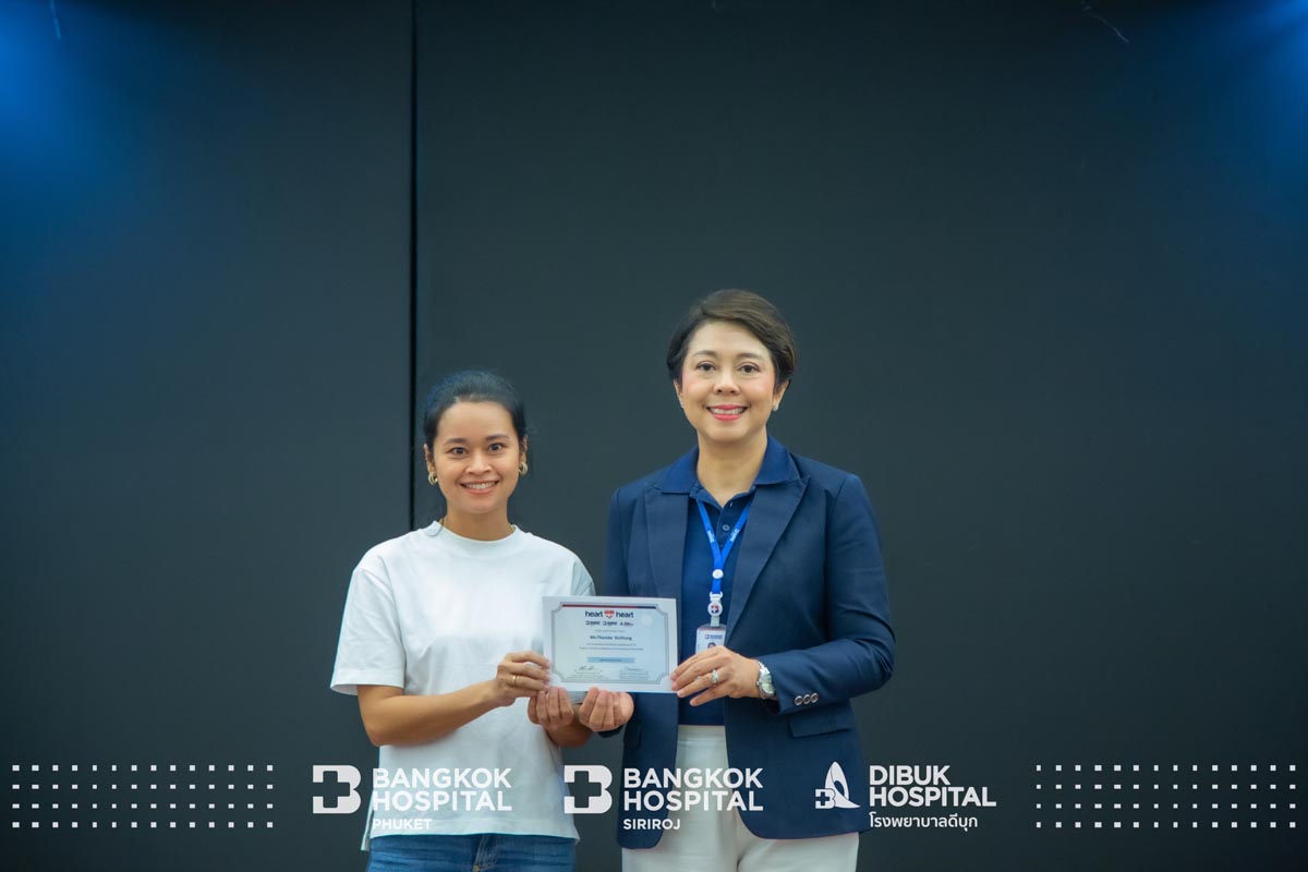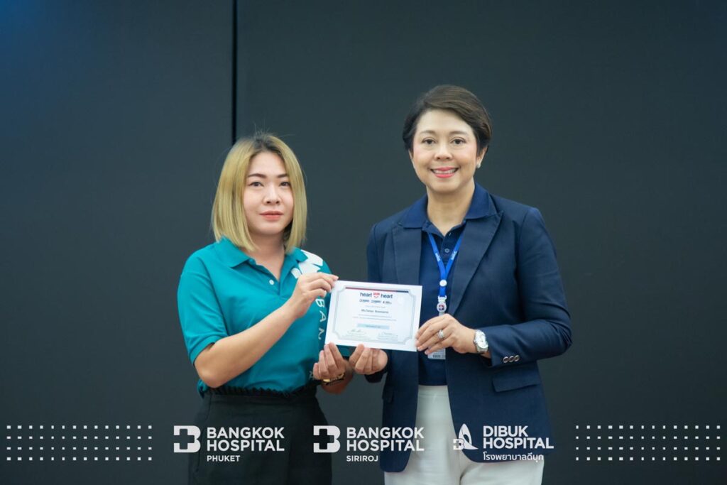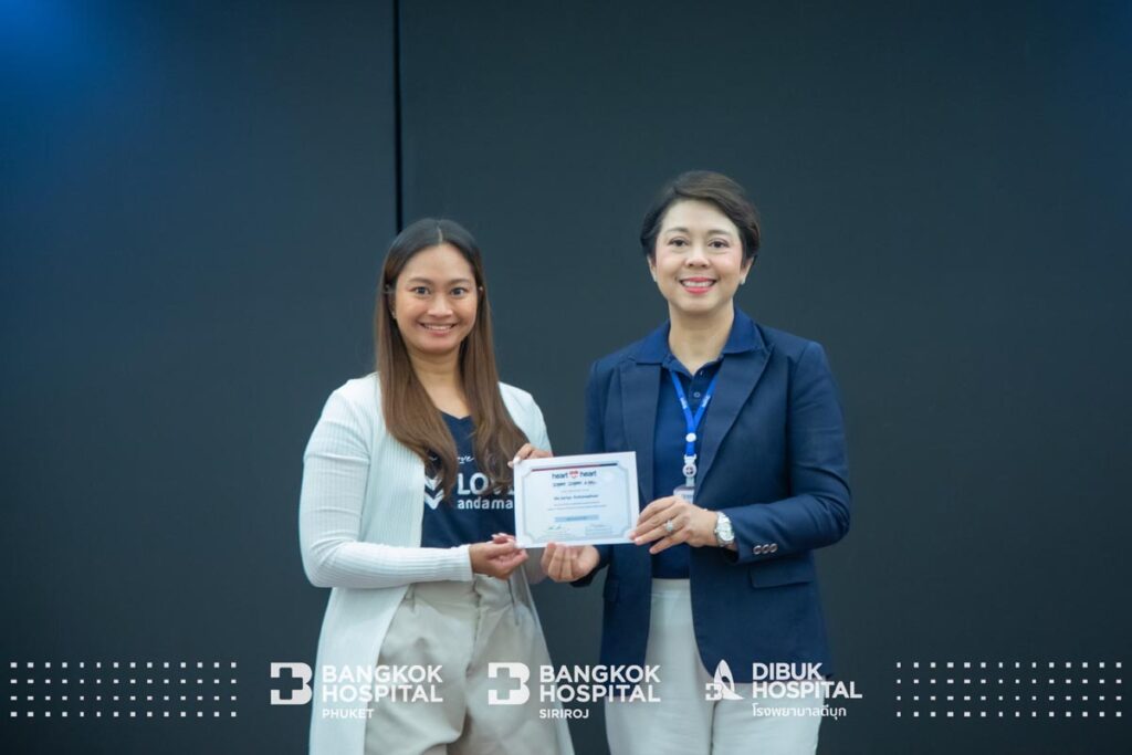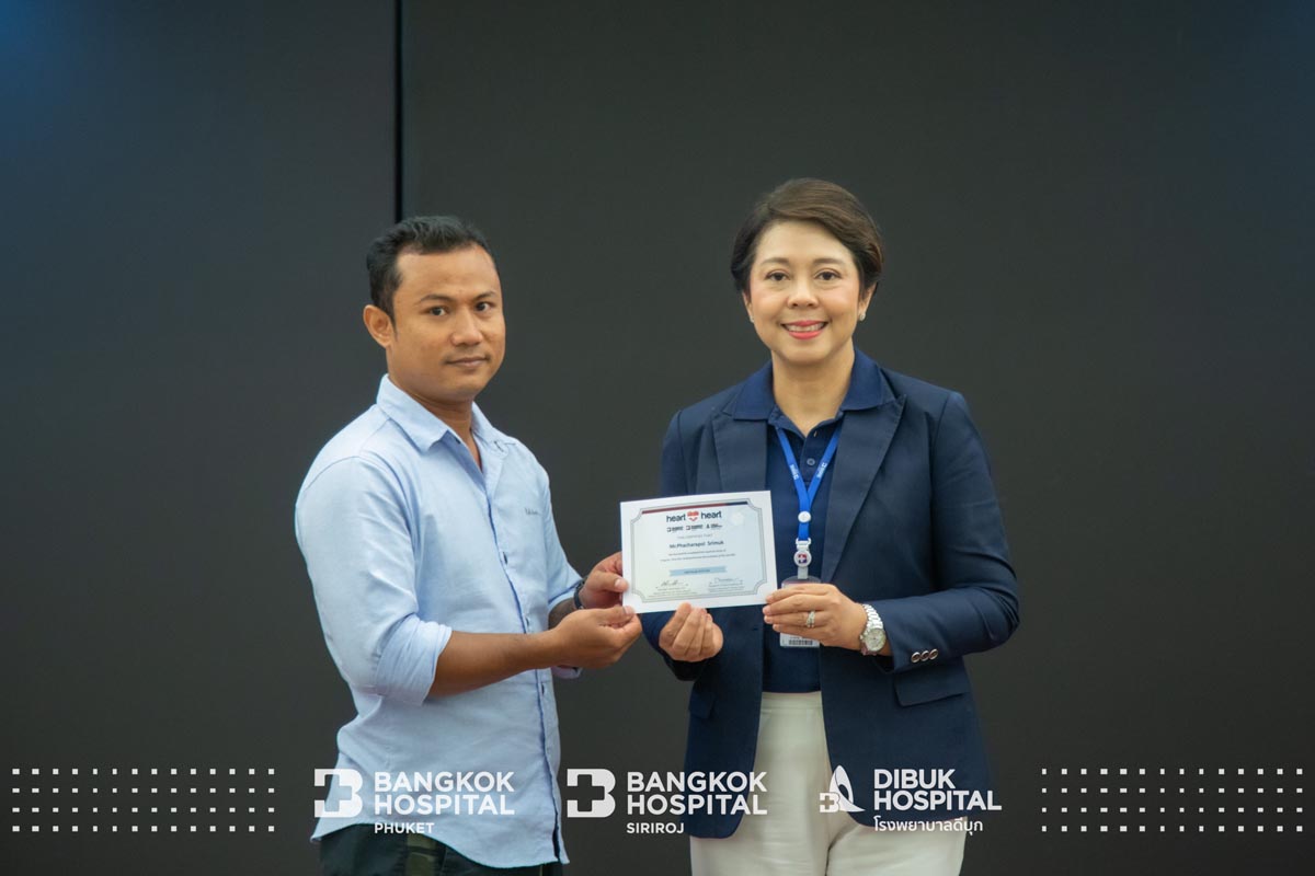 ต่อมา แพทย์หญิงลลิตา กองสีหา ผู้ช่วยประธานคณะผู้บริหาร กลุ่ม 6 บริษัทกรุงเทพดุสิตเวชการ จำกัด (มหาชน) และ ผู้อำนวยการโรงพยาบาลกรุงเทพภูเก็ต เป็นเกียรติมอบประกาศนียบัตร ให้แก่ผู้เข้าอบรม จำนวน 90 ท่าน ณ ห้องประชุม คิง คาร์ล กุสตาฟ โรงพยาบาลกรุงเทพภูเก็ต เมื่อวันที่ 5 กรกฎาคม 2567 ที่ผ่านมา