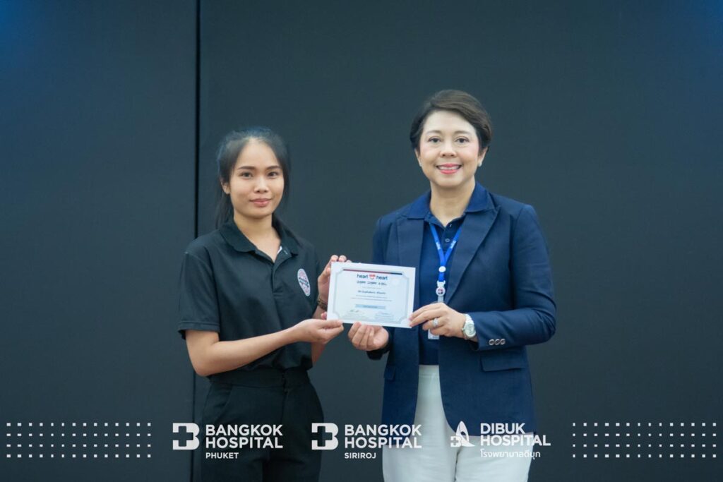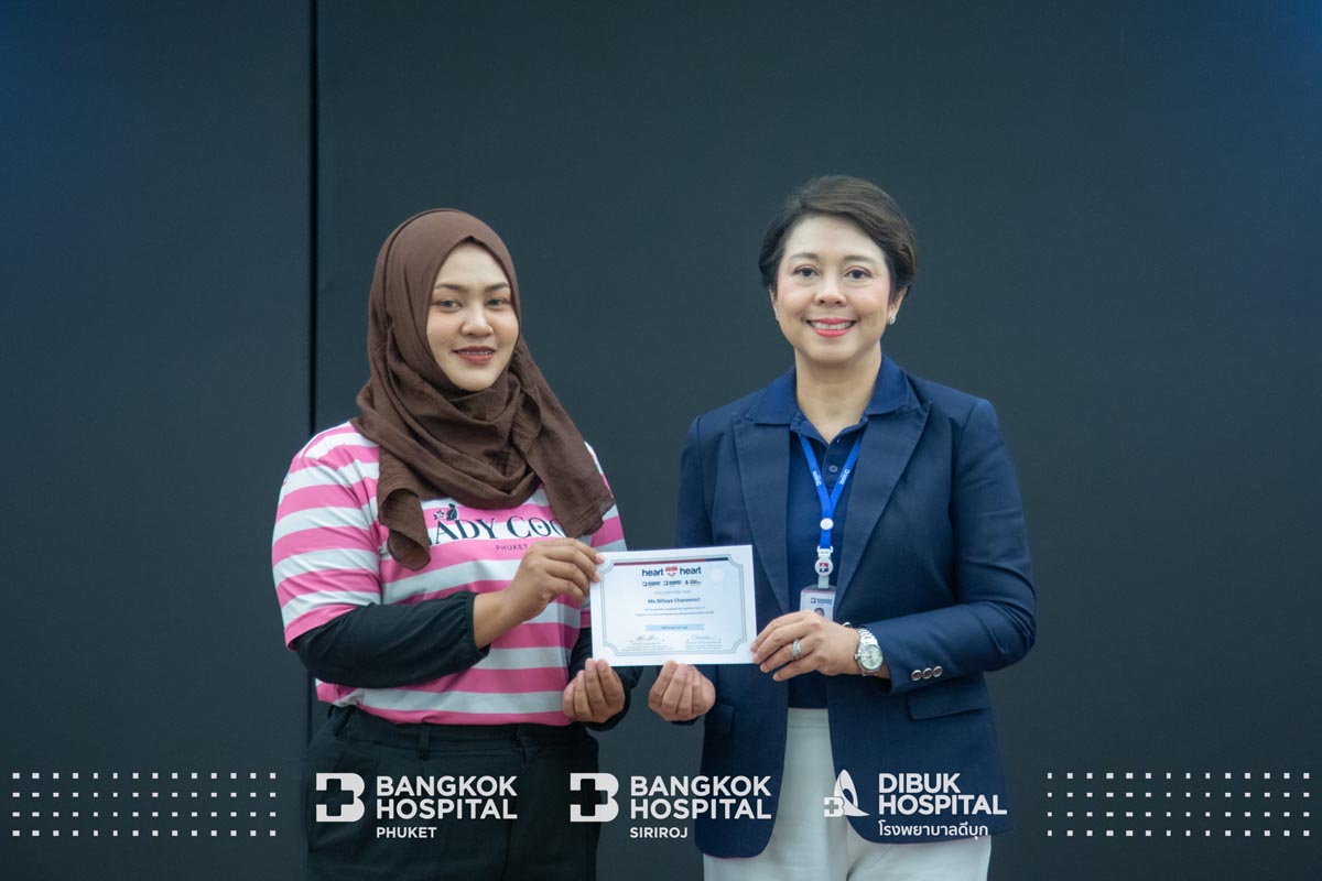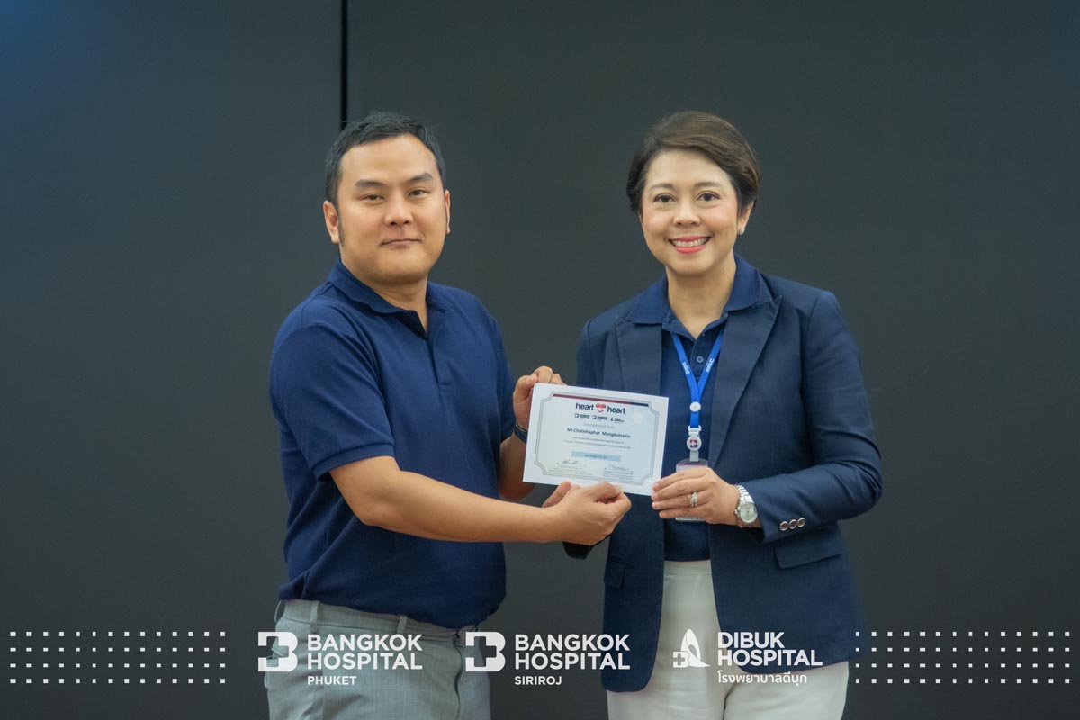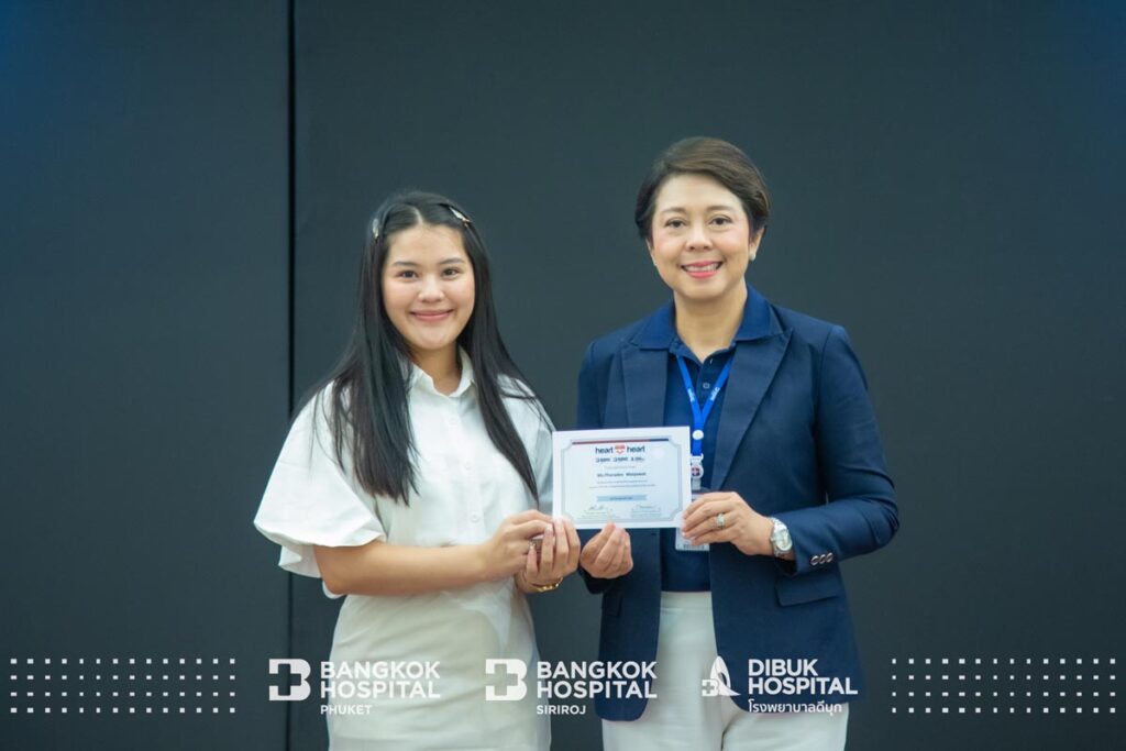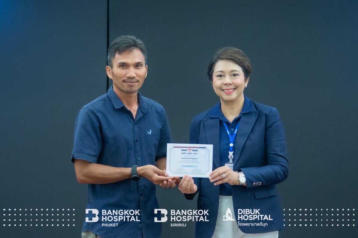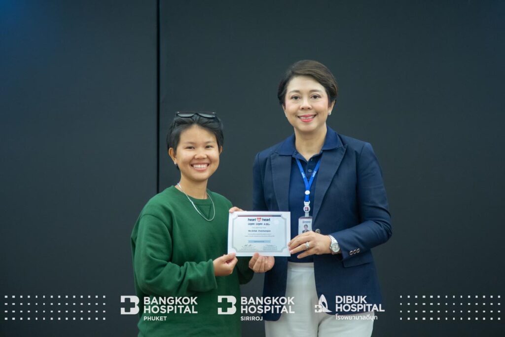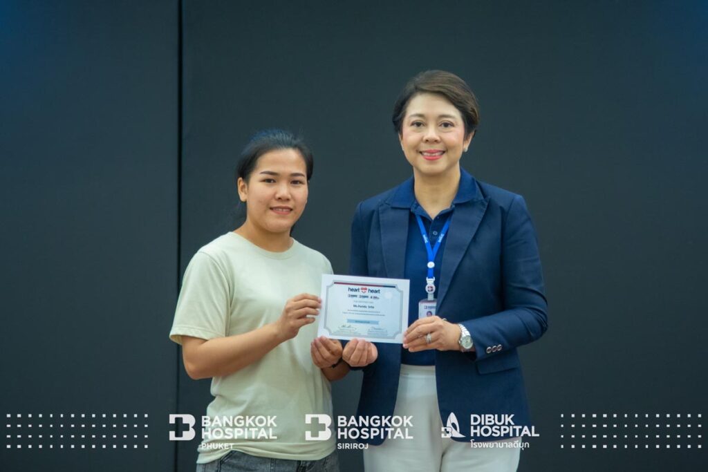 ต่อมา แพทย์หญิงลลิตา กองสีหา ผู้ช่วยประธานคณะผู้บริหาร กลุ่ม 6 บริษัทกรุงเทพดุสิตเวชการ จำกัด (มหาชน) และ ผู้อำนวยการโรงพยาบาลกรุงเทพภูเก็ต เป็นเกียรติมอบประกาศนียบัตร ให้แก่ผู้เข้าอบรม จำนวน 90 ท่าน ณ ห้องประชุม คิง คาร์ล กุสตาฟ โรงพยาบาลกรุงเทพภูเก็ต เมื่อวันที่ 5 กรกฎาคม 2567 ที่ผ่านมา
