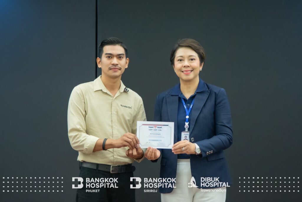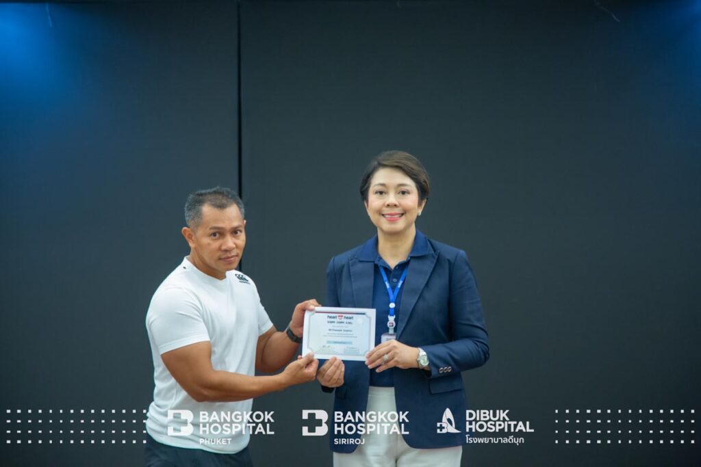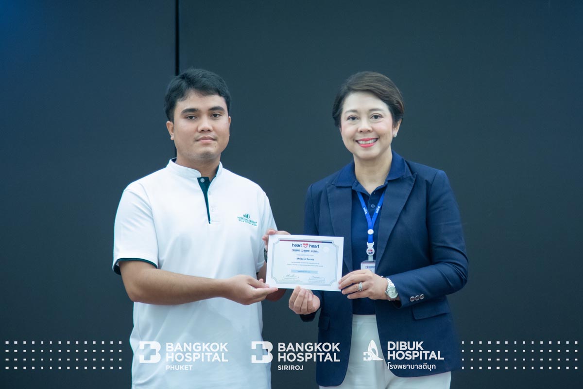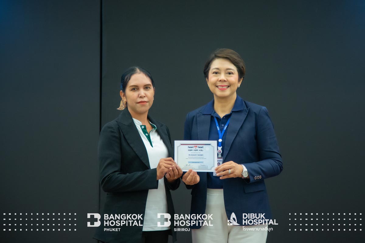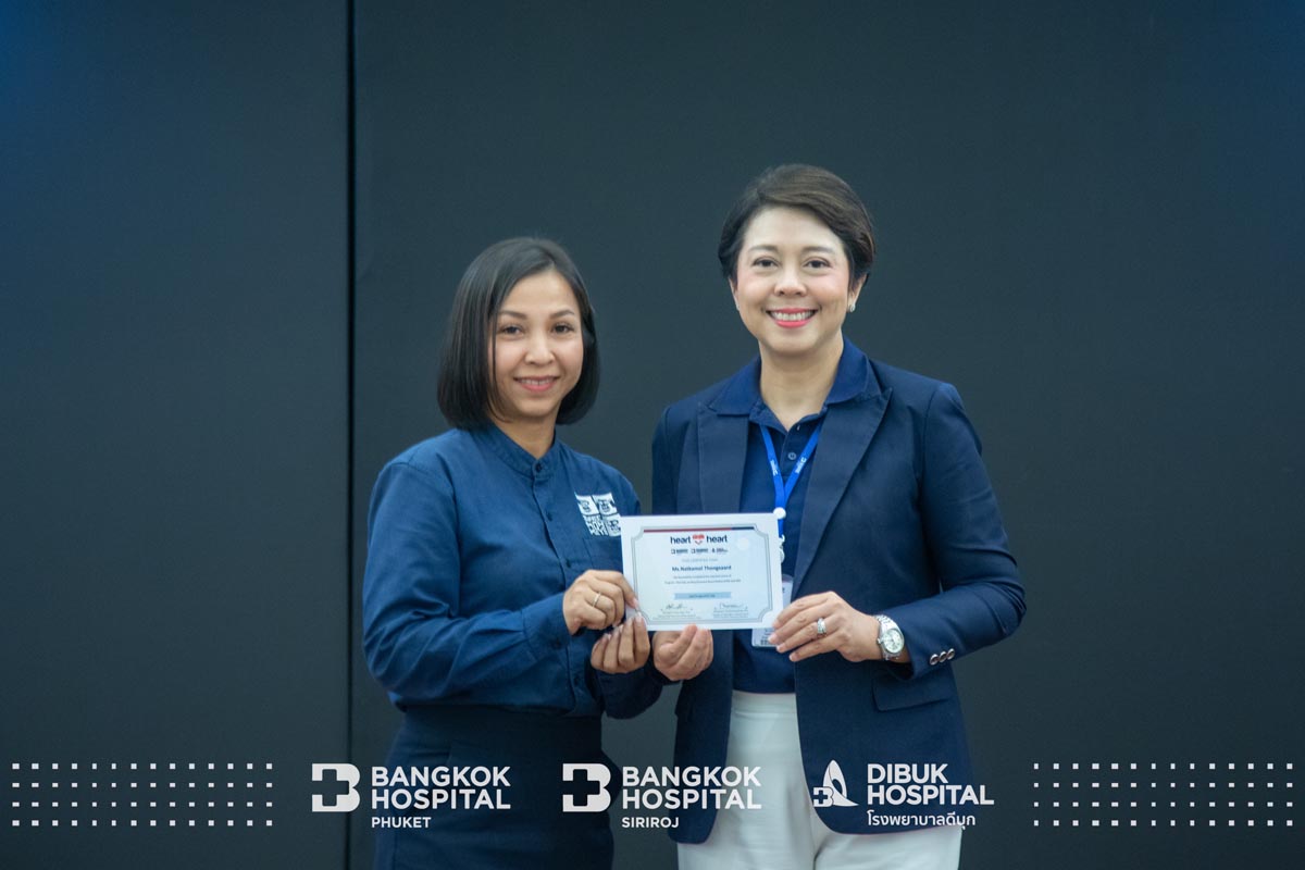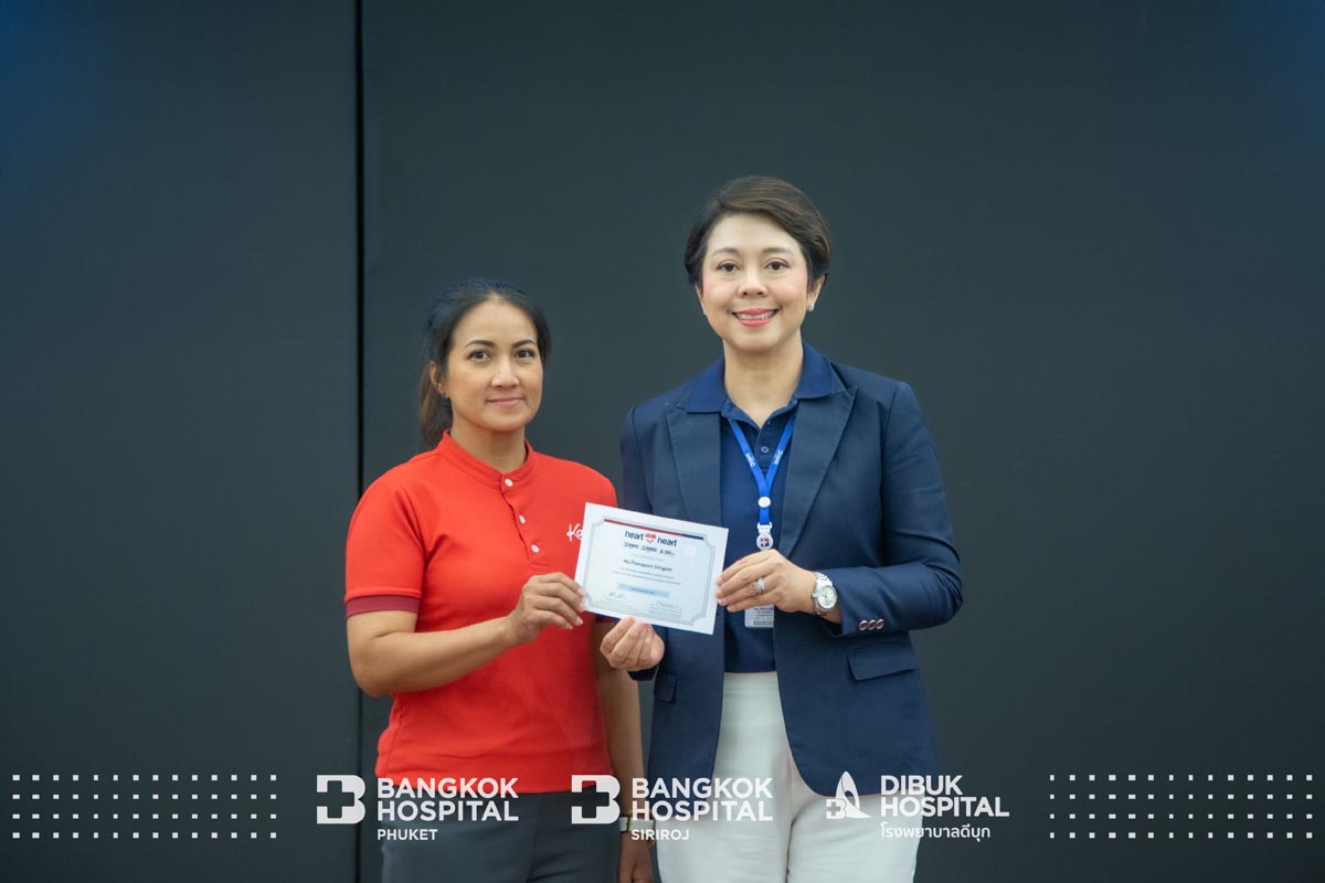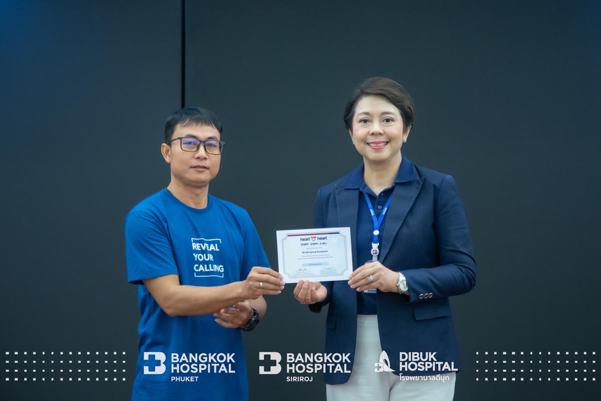 ต่อมา แพทย์หญิงลลิตา กองสีหา ผู้ช่วยประธานคณะผู้บริหาร กลุ่ม 6 บริษัทกรุงเทพดุสิตเวชการ จำกัด (มหาชน) และ ผู้อำนวยการโรงพยาบาลกรุงเทพภูเก็ต เป็นเกียรติมอบประกาศนียบัตร ให้แก่ผู้เข้าอบรม จำนวน 90 ท่าน ณ ห้องประชุม คิง คาร์ล กุสตาฟ โรงพยาบาลกรุงเทพภูเก็ต เมื่อวันที่ 5 กรกฎาคม 2567 ที่ผ่านมา