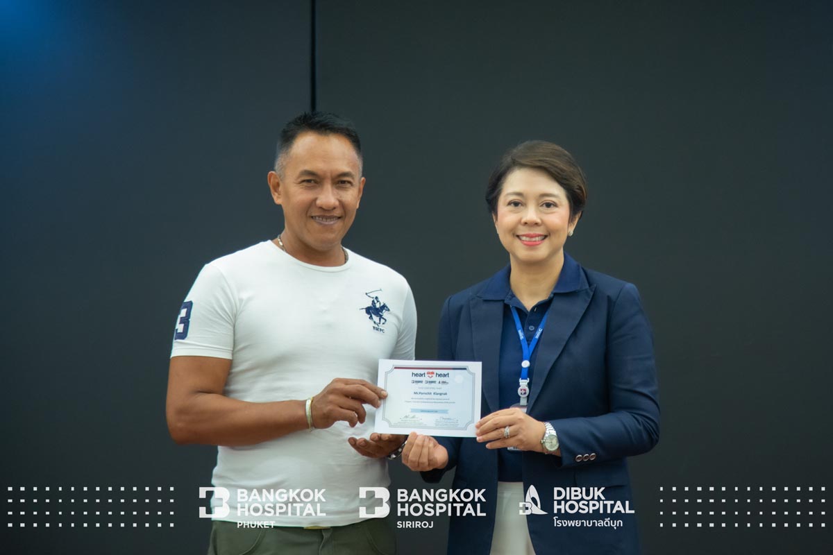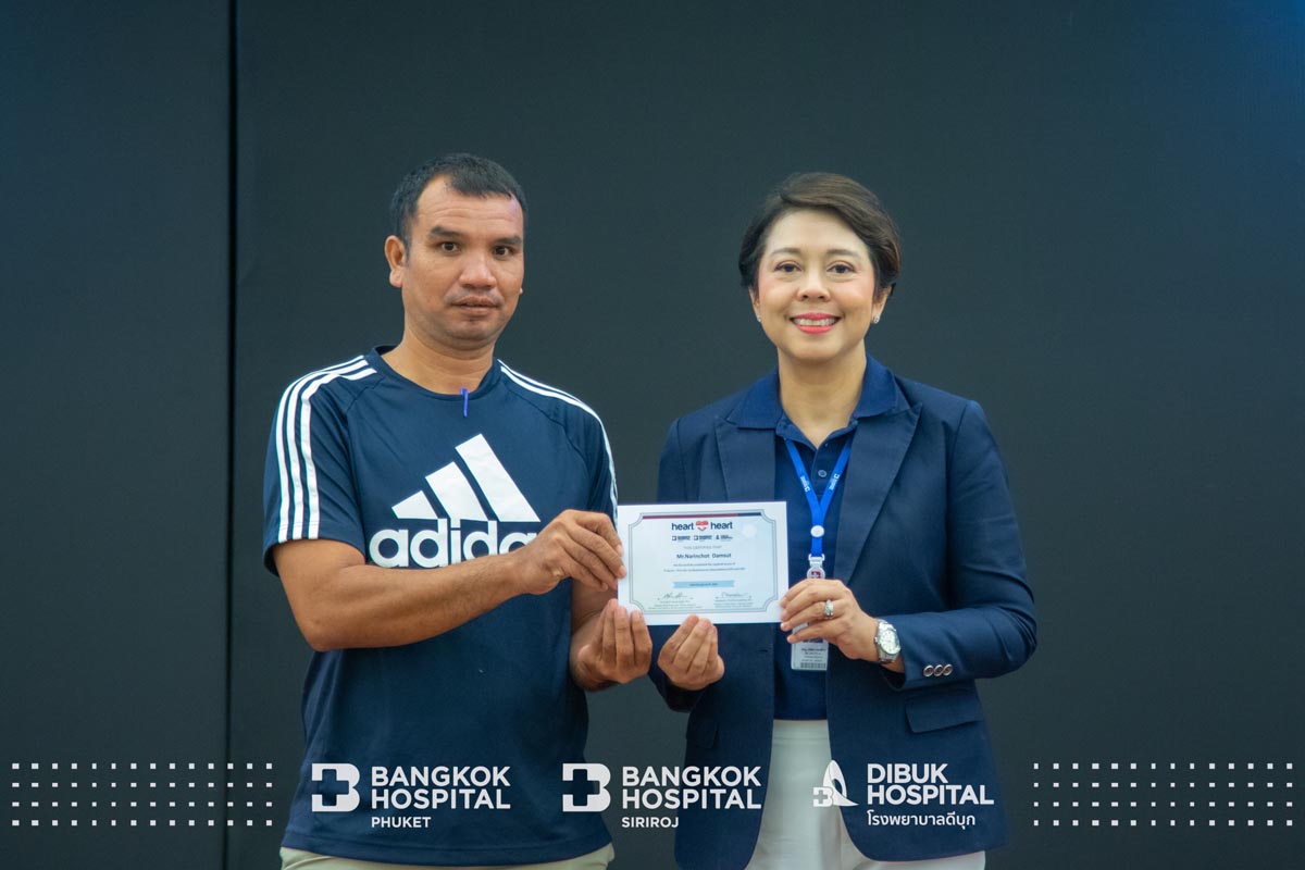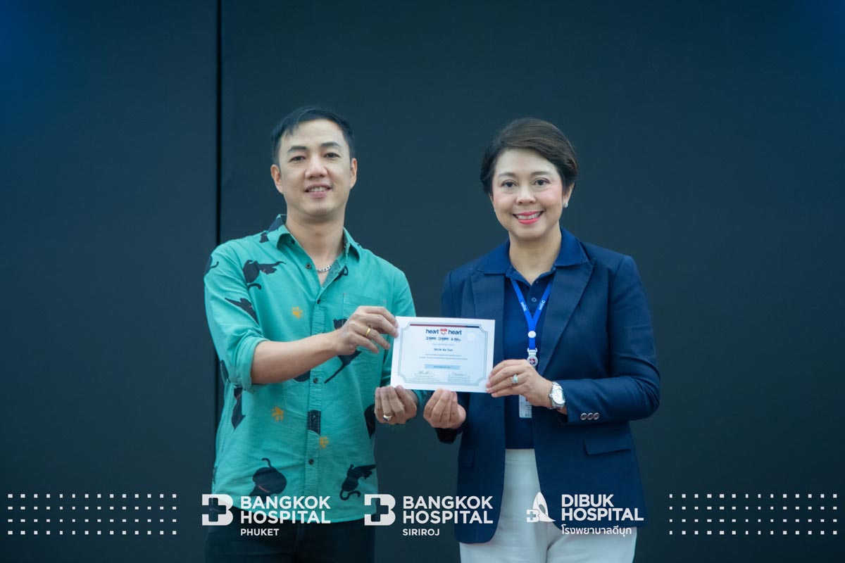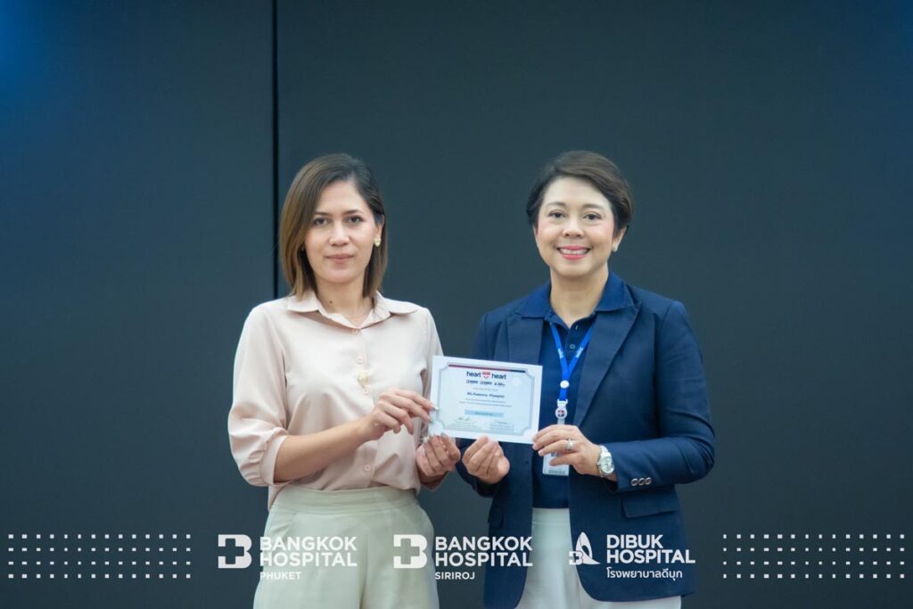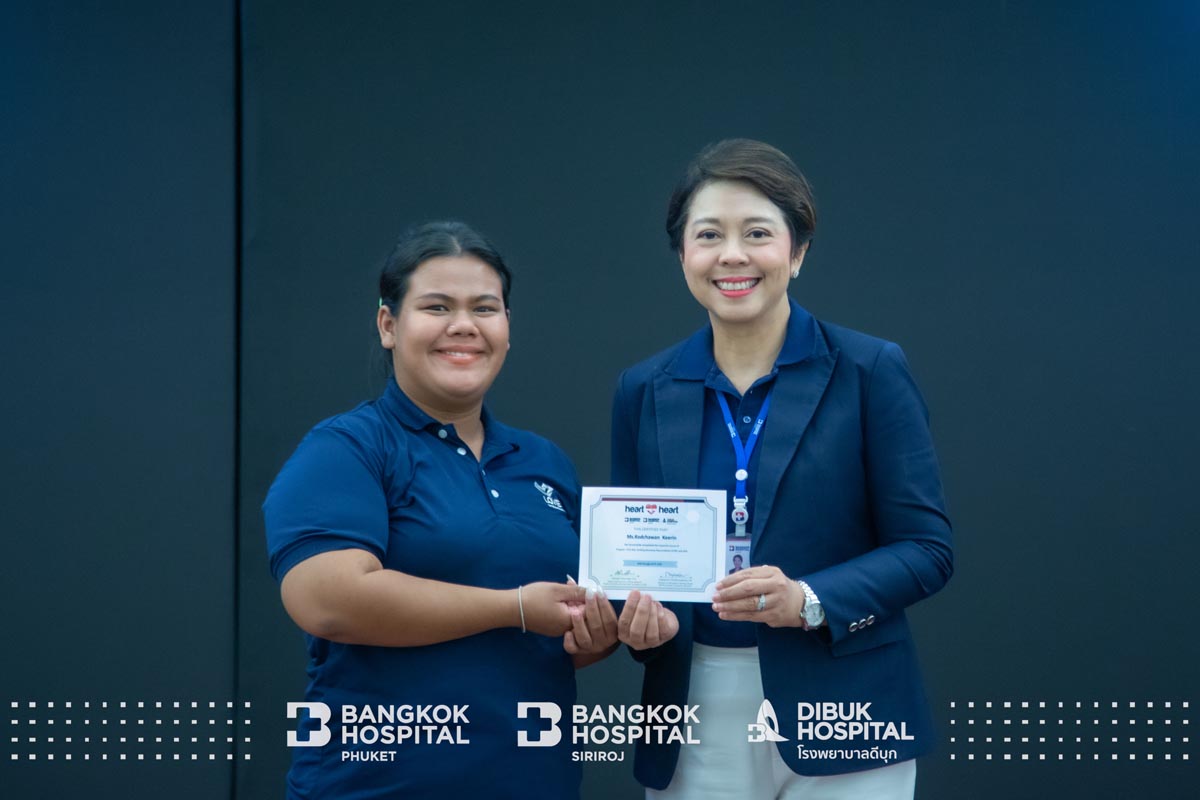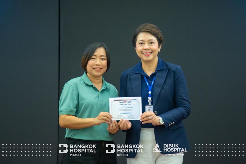 ต่อมา แพทย์หญิงลลิตา กองสีหา ผู้ช่วยประธานคณะผู้บริหาร กลุ่ม 6 บริษัทกรุงเทพดุสิตเวชการ จำกัด (มหาชน) และ ผู้อำนวยการโรงพยาบาลกรุงเทพภูเก็ต เป็นเกียรติมอบประกาศนียบัตร ให้แก่ผู้เข้าอบรม จำนวน 90 ท่าน ณ ห้องประชุม คิง คาร์ล กุสตาฟ โรงพยาบาลกรุงเทพภูเก็ต เมื่อวันที่ 5 กรกฎาคม 2567 ที่ผ่านมา
