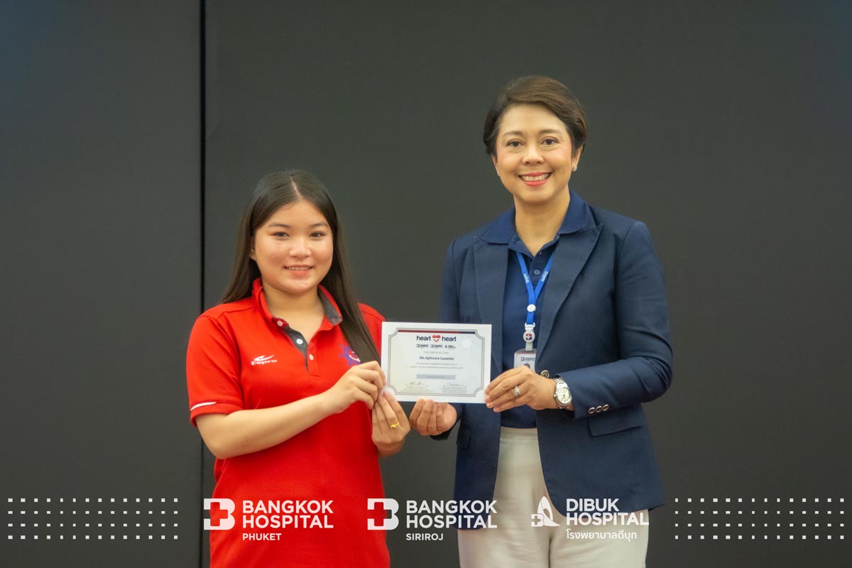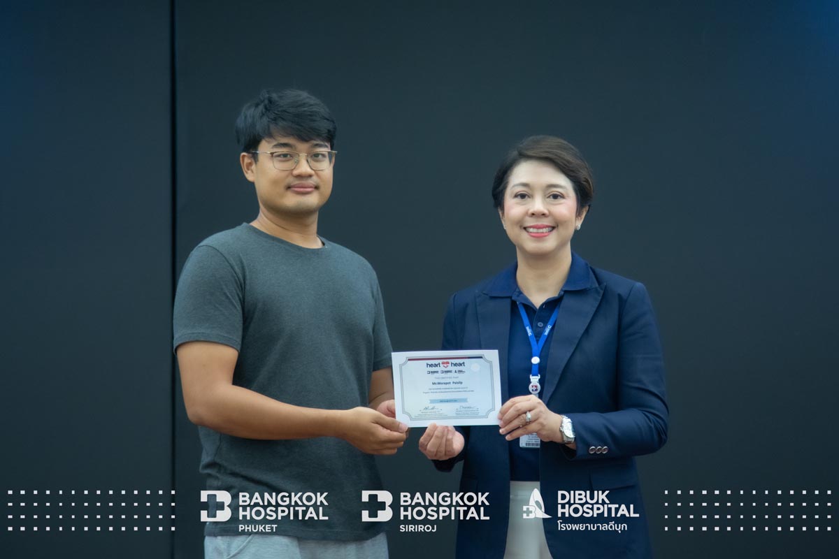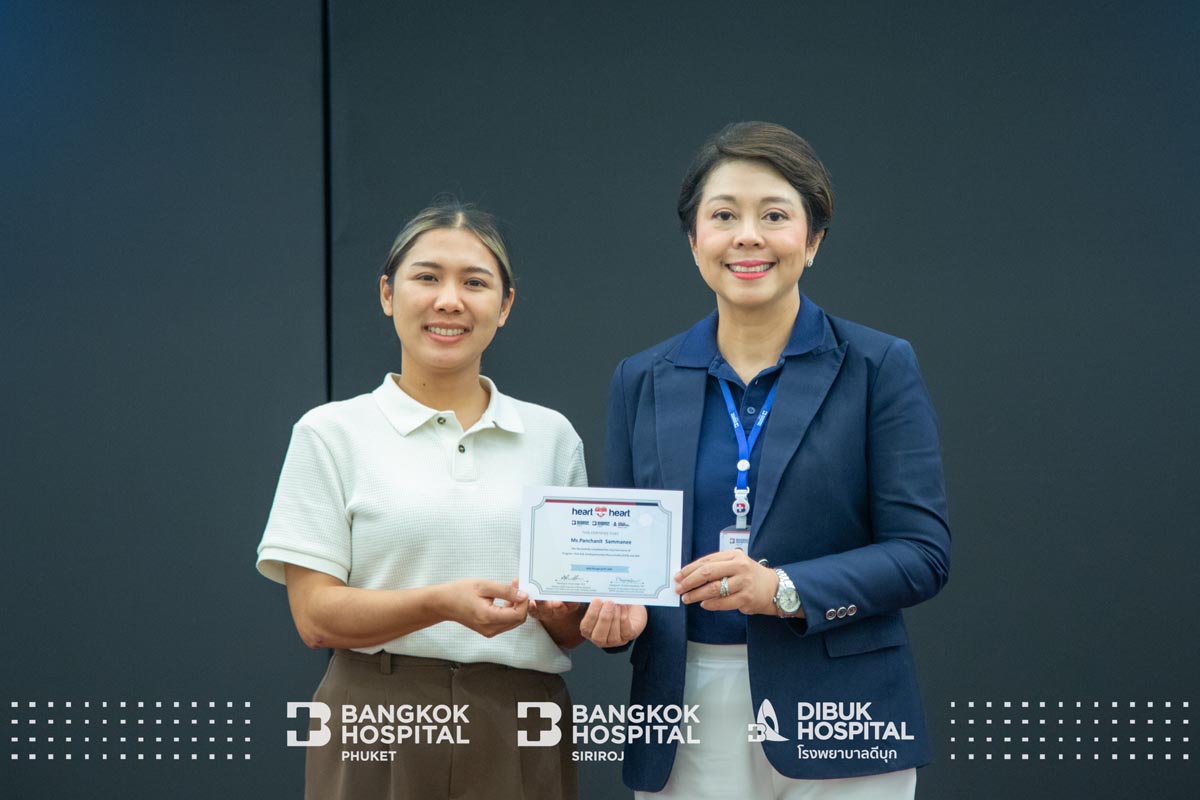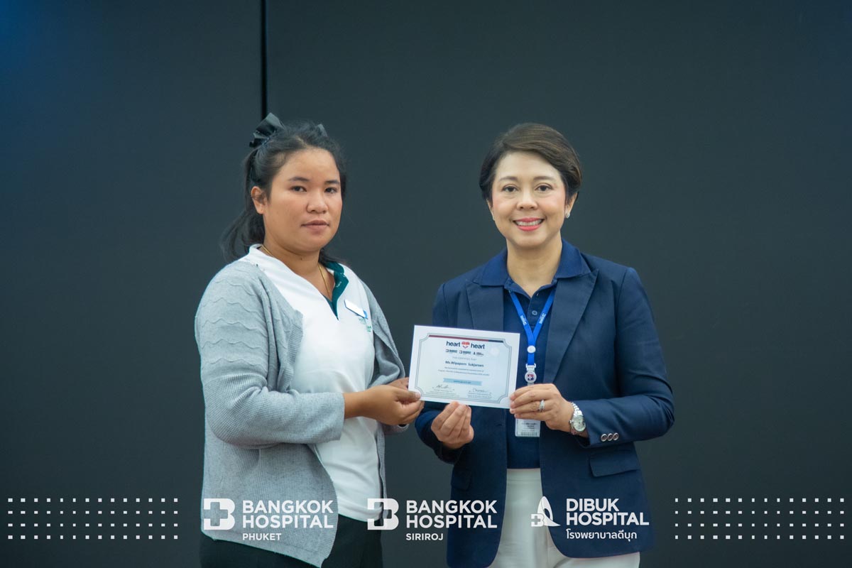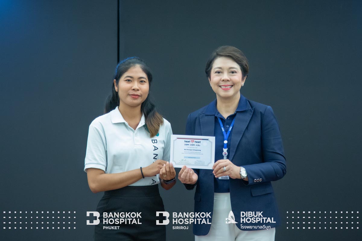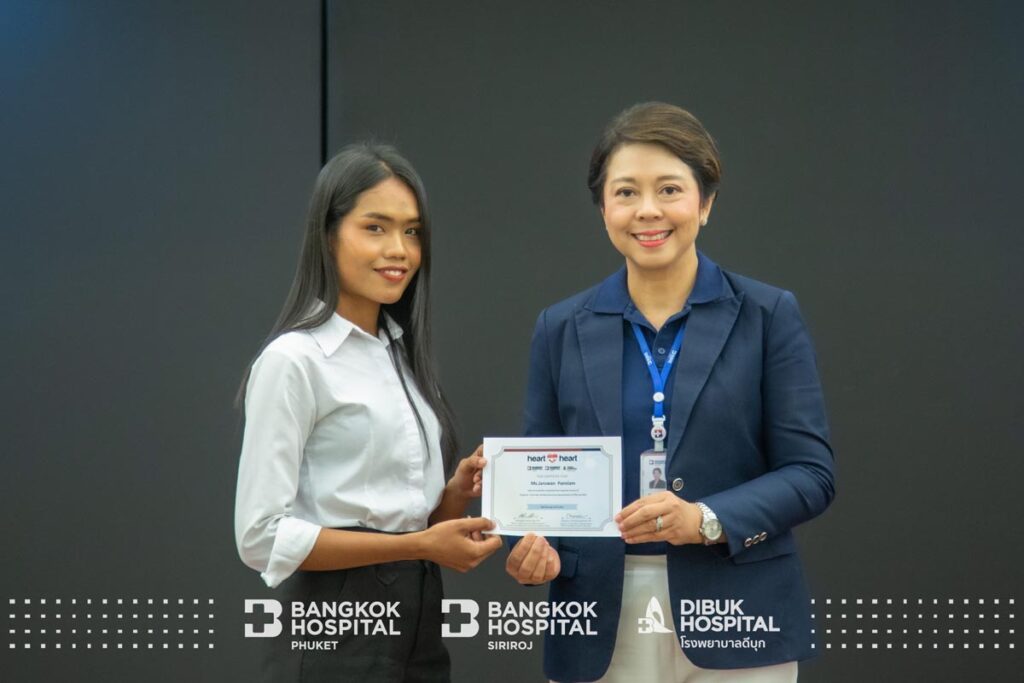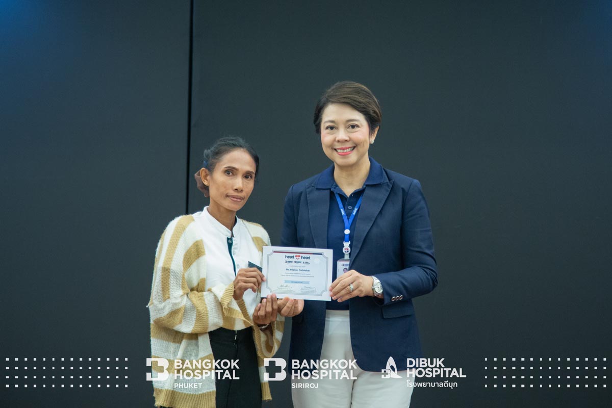 ต่อมา แพทย์หญิงลลิตา กองสีหา ผู้ช่วยประธานคณะผู้บริหาร กลุ่ม 6 บริษัทกรุงเทพดุสิตเวชการ จำกัด (มหาชน) และ ผู้อำนวยการโรงพยาบาลกรุงเทพภูเก็ต เป็นเกียรติมอบประกาศนียบัตร ให้แก่ผู้เข้าอบรม จำนวน 90 ท่าน ณ ห้องประชุม คิง คาร์ล กุสตาฟ โรงพยาบาลกรุงเทพภูเก็ต เมื่อวันที่ 5 กรกฎาคม 2567 ที่ผ่านมา
