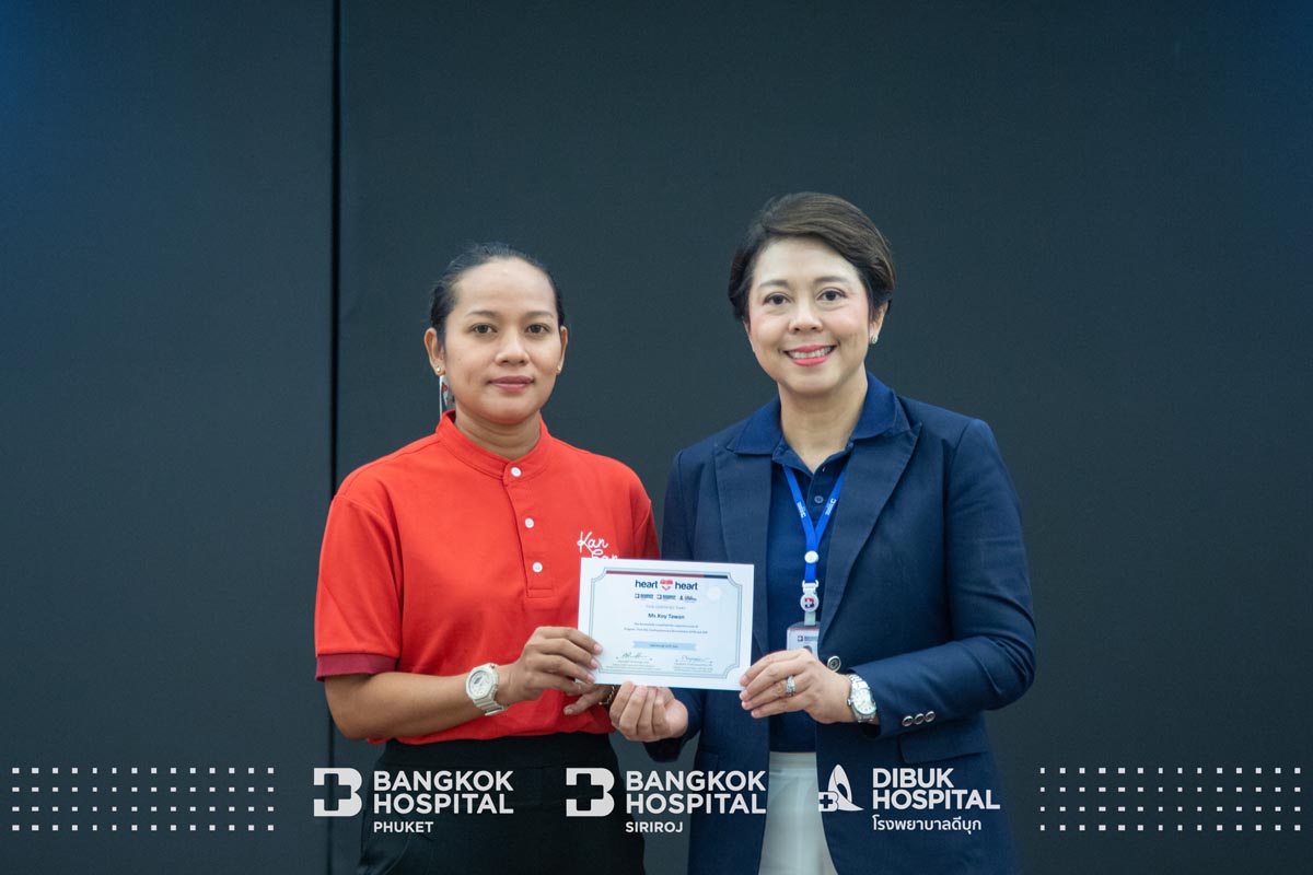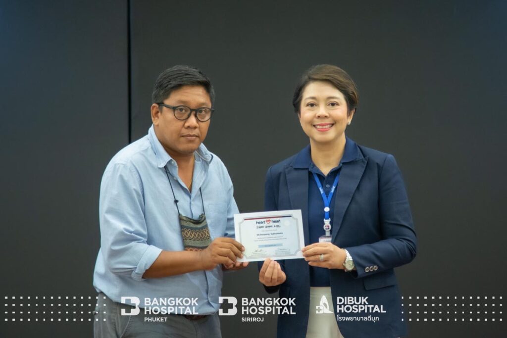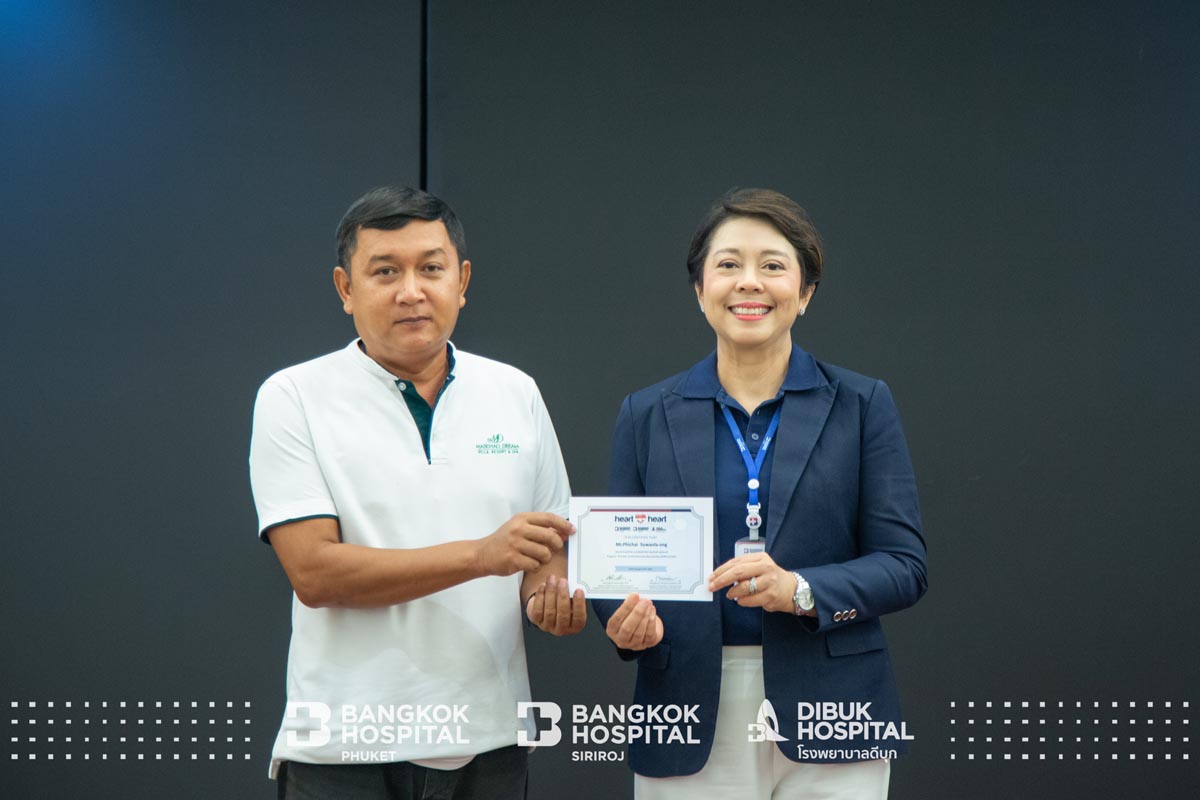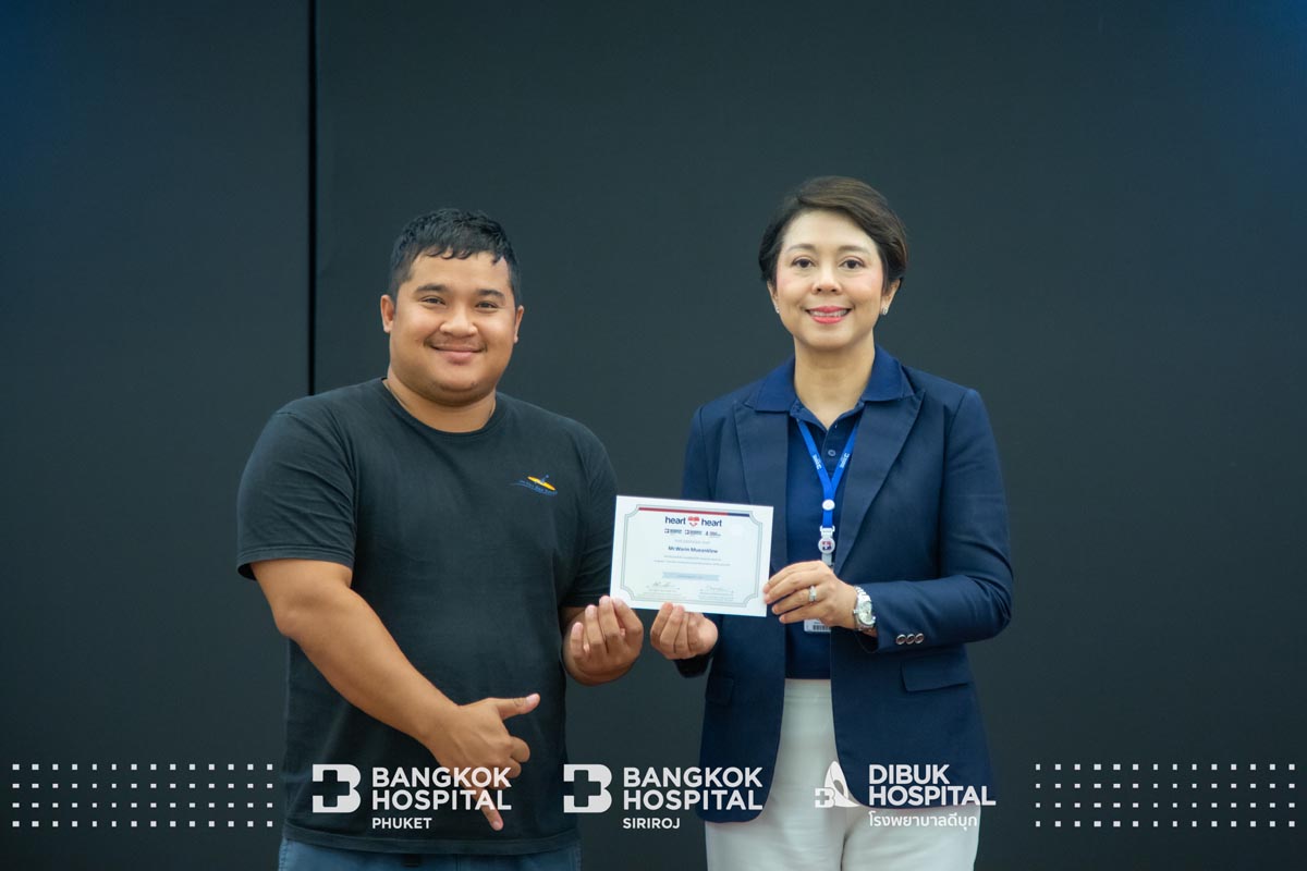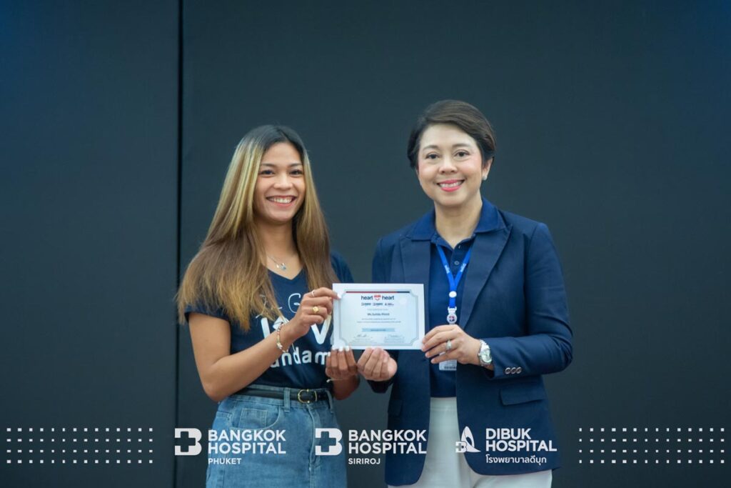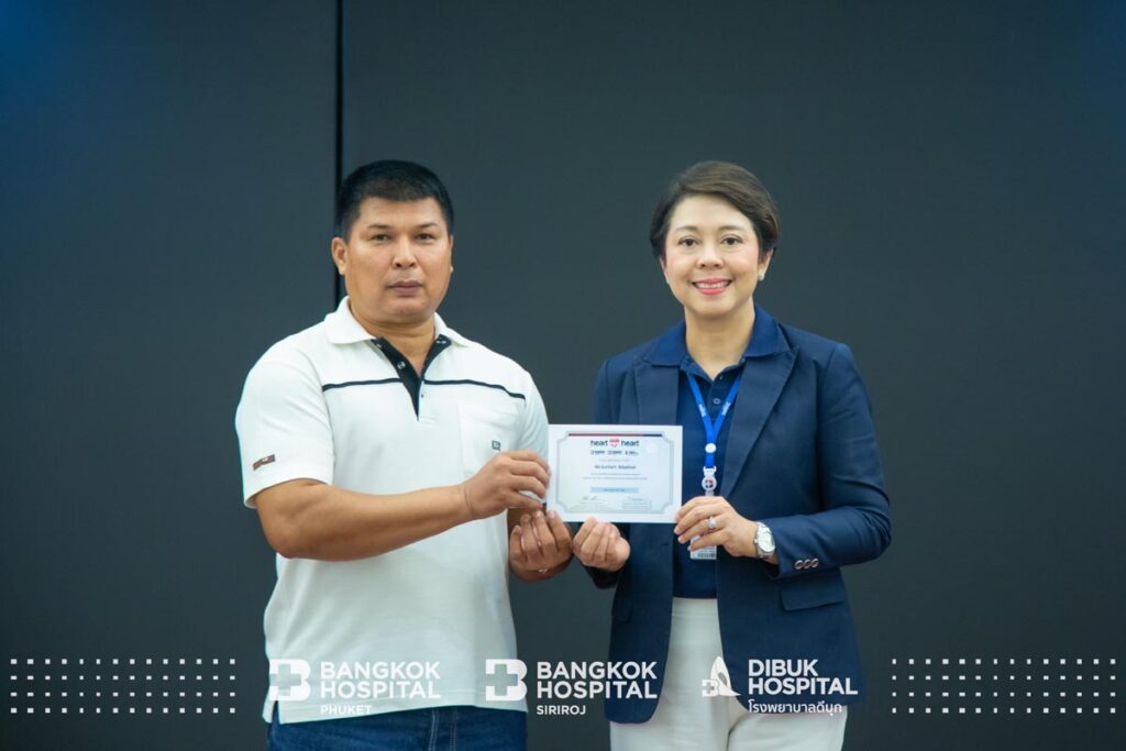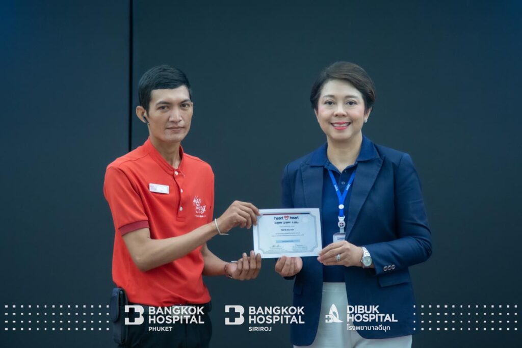 ต่อมา แพทย์หญิงลลิตา กองสีหา ผู้ช่วยประธานคณะผู้บริหาร กลุ่ม 6 บริษัทกรุงเทพดุสิตเวชการ จำกัด (มหาชน) และ ผู้อำนวยการโรงพยาบาลกรุงเทพภูเก็ต เป็นเกียรติมอบประกาศนียบัตร ให้แก่ผู้เข้าอบรม จำนวน 90 ท่าน ณ ห้องประชุม คิง คาร์ล กุสตาฟ โรงพยาบาลกรุงเทพภูเก็ต เมื่อวันที่ 5 กรกฎาคม 2567 ที่ผ่านมา
