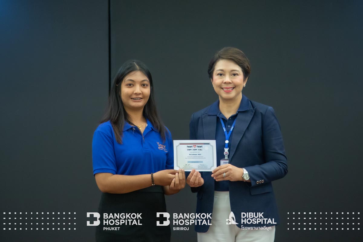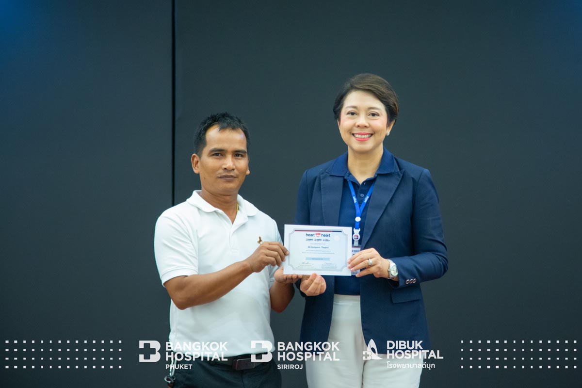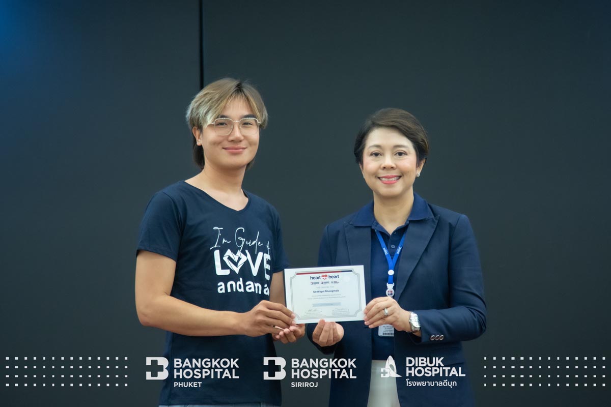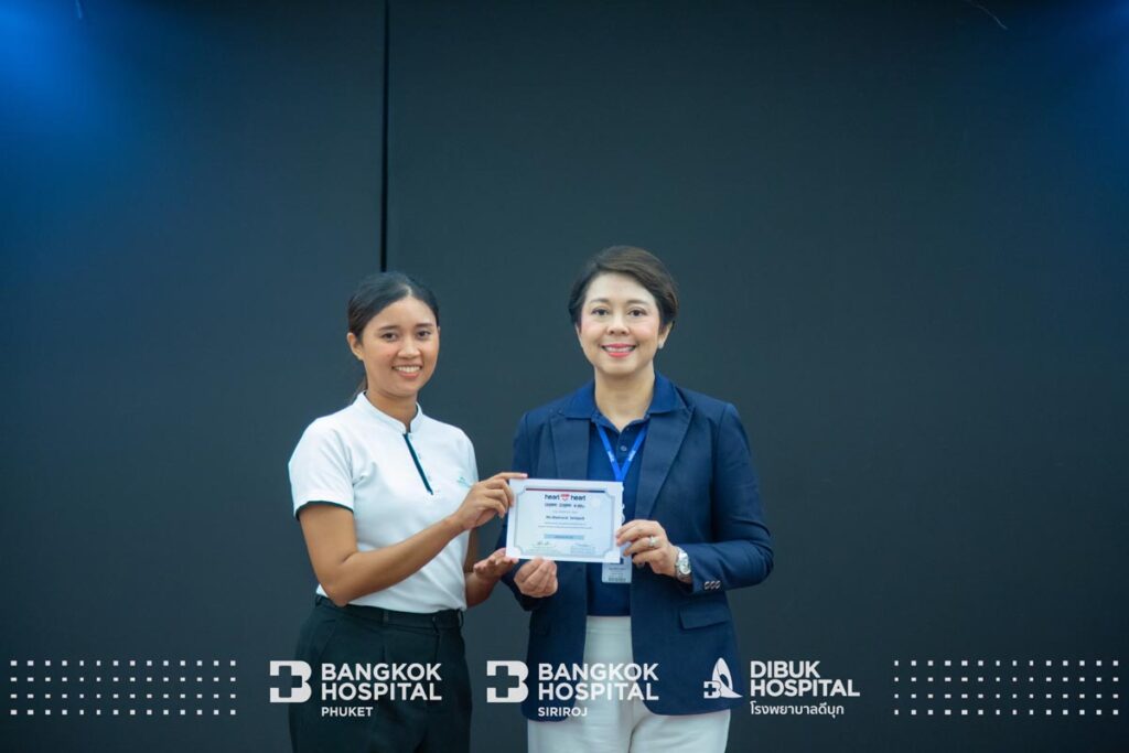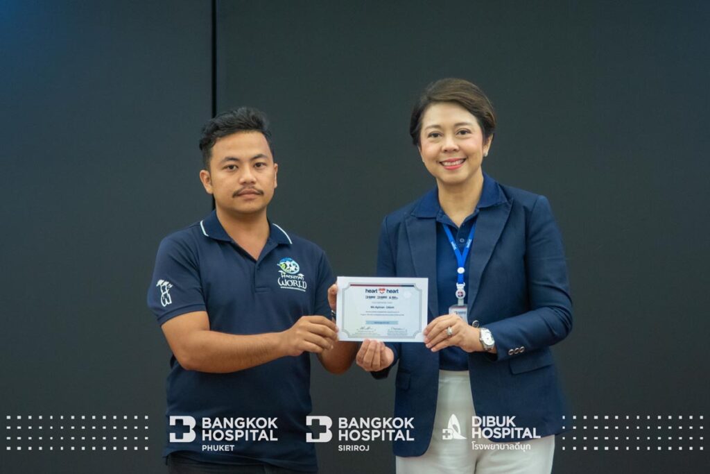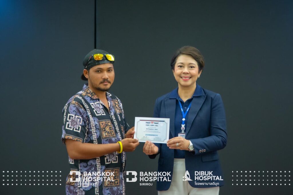 ต่อมา แพทย์หญิงลลิตา กองสีหา ผู้ช่วยประธานคณะผู้บริหาร กลุ่ม 6 บริษัทกรุงเทพดุสิตเวชการ จำกัด (มหาชน) และ ผู้อำนวยการโรงพยาบาลกรุงเทพภูเก็ต เป็นเกียรติมอบประกาศนียบัตร ให้แก่ผู้เข้าอบรม จำนวน 90 ท่าน ณ ห้องประชุม คิง คาร์ล กุสตาฟ โรงพยาบาลกรุงเทพภูเก็ต เมื่อวันที่ 5 กรกฎาคม 2567 ที่ผ่านมา