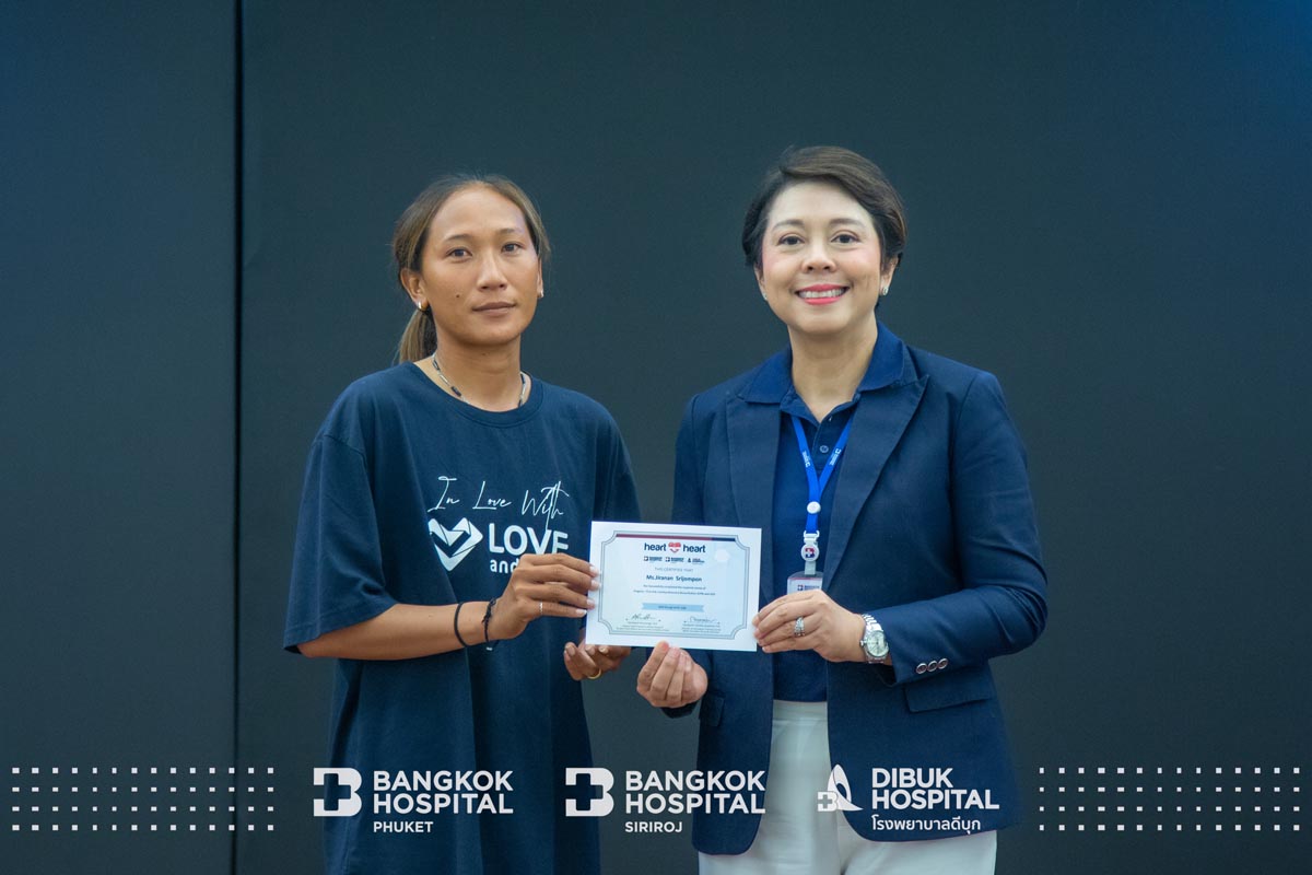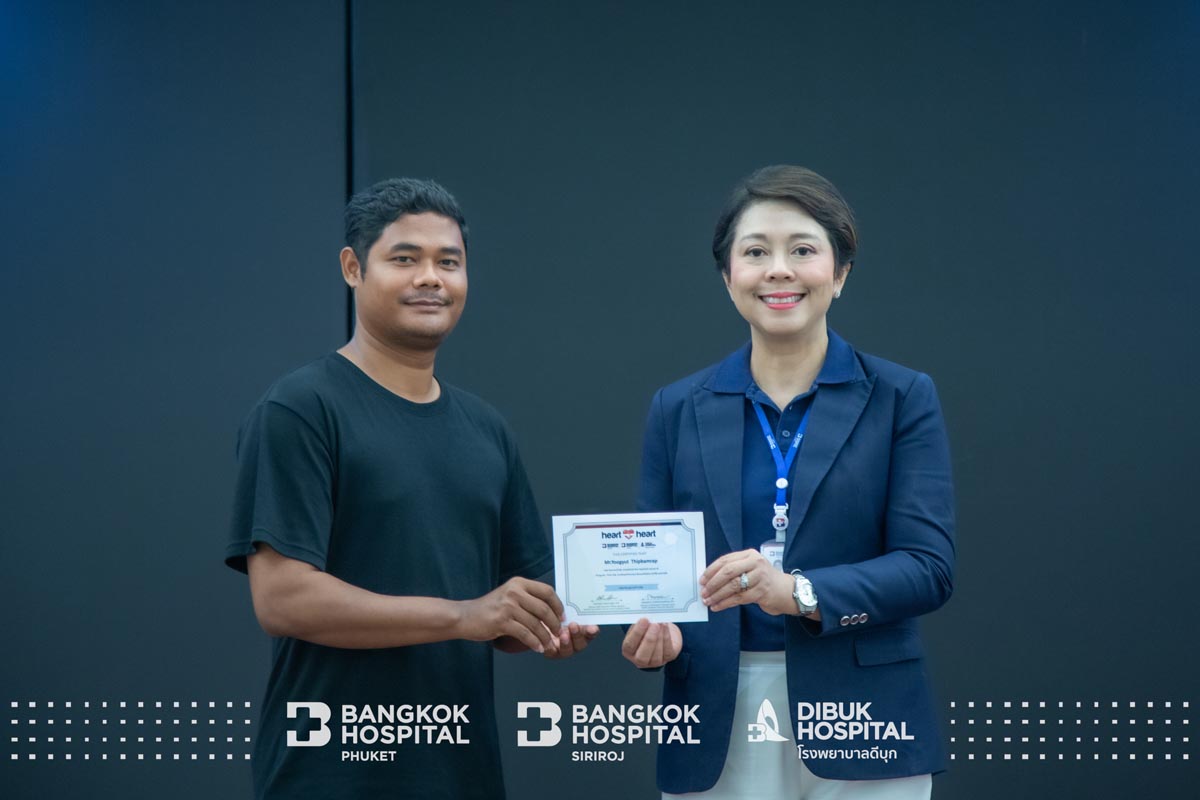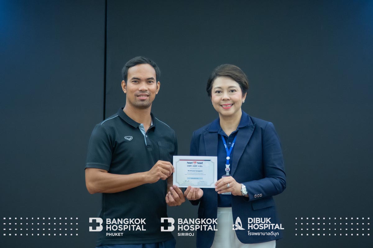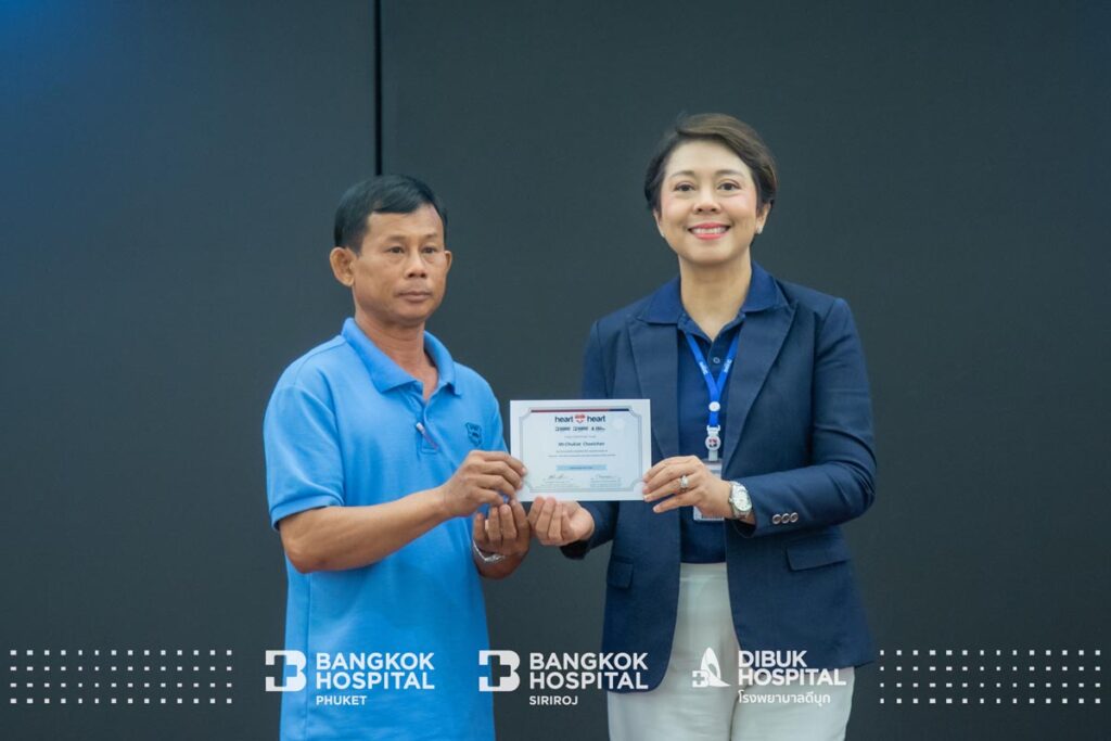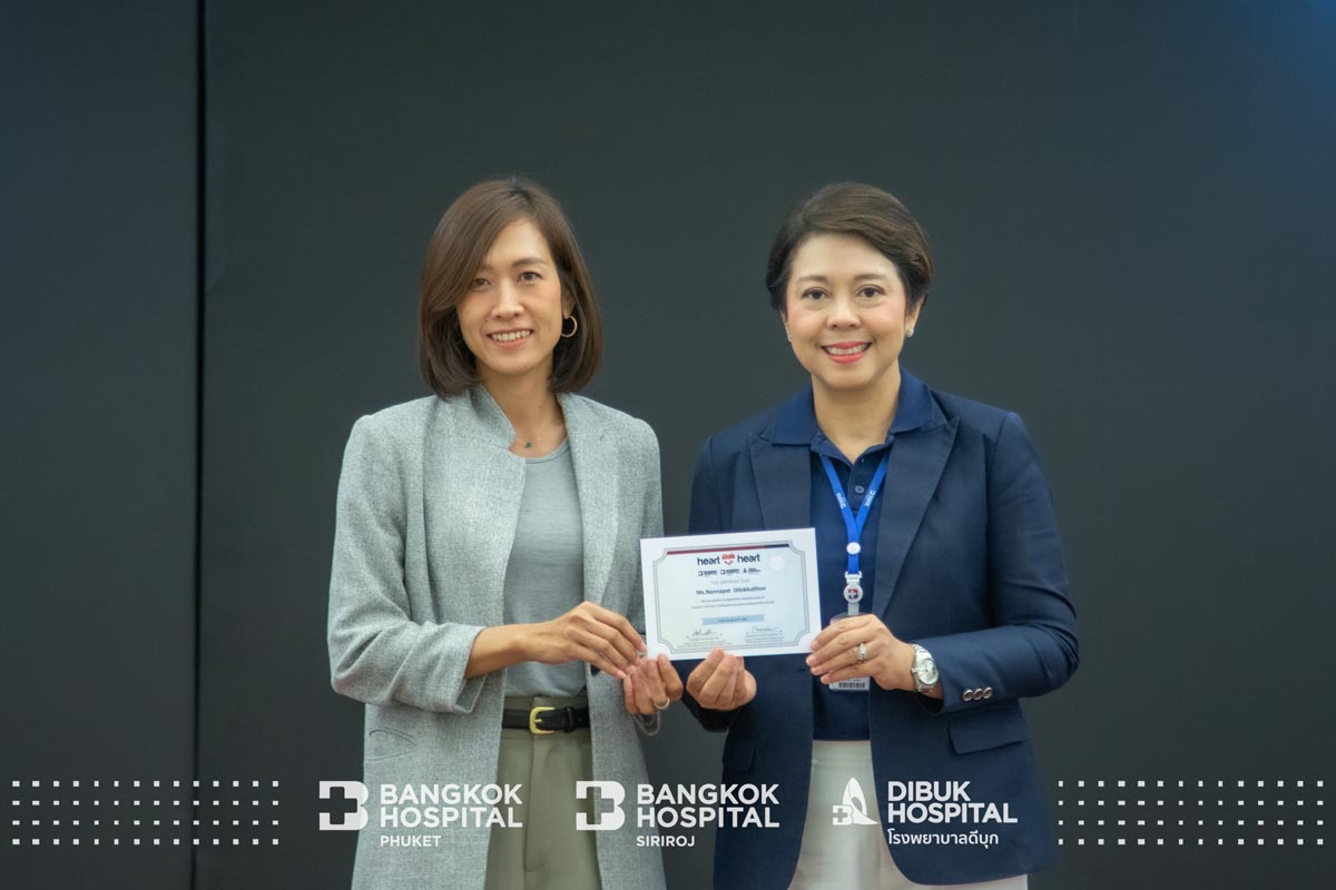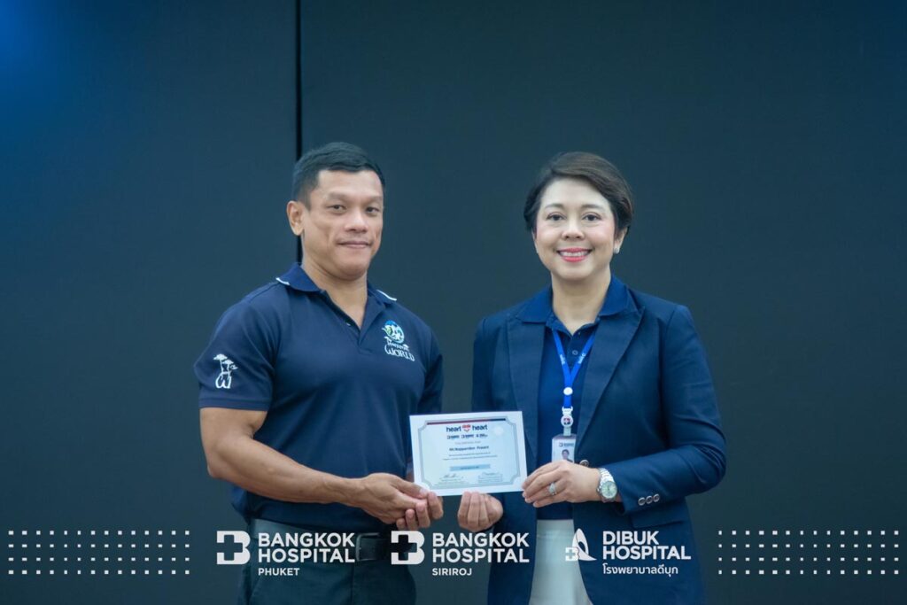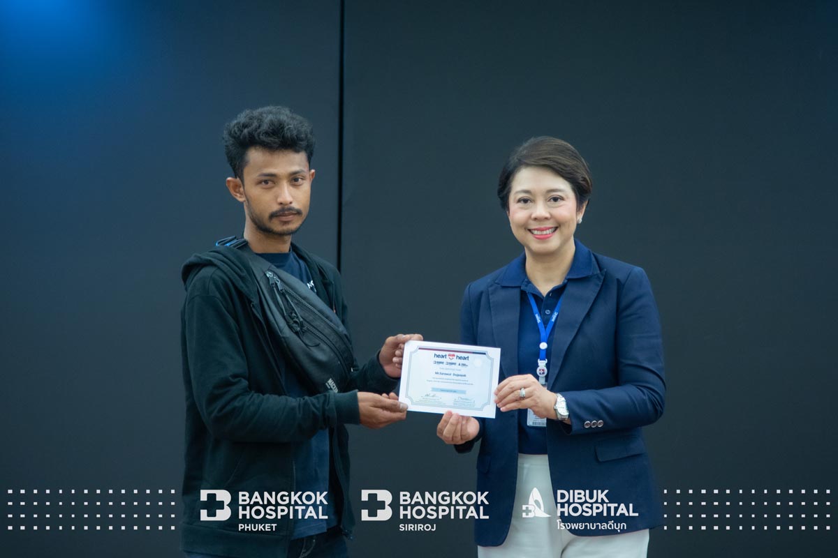 ต่อมา แพทย์หญิงลลิตา กองสีหา ผู้ช่วยประธานคณะผู้บริหาร กลุ่ม 6 บริษัทกรุงเทพดุสิตเวชการ จำกัด (มหาชน) และ ผู้อำนวยการโรงพยาบาลกรุงเทพภูเก็ต เป็นเกียรติมอบประกาศนียบัตร ให้แก่ผู้เข้าอบรม จำนวน 90 ท่าน ณ ห้องประชุม คิง คาร์ล กุสตาฟ โรงพยาบาลกรุงเทพภูเก็ต เมื่อวันที่ 5 กรกฎาคม 2567 ที่ผ่านมา