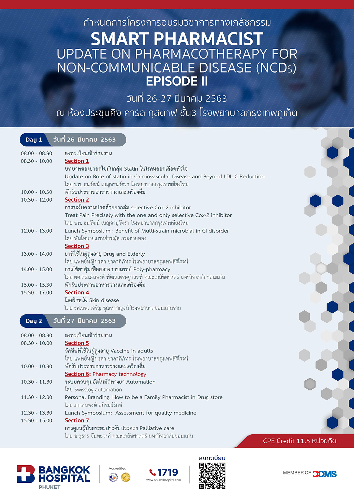 โครงการอบรมวิชาการทางเภสัชกรรม (Smart Pharmacist)< 1 นาทีในการอ่านข้อมูลโดยโรงพยาบาลกรุงเทพภูเก็ตอัปเดตเมื่อ: 03 ต.ค. 2568แพ็กเกจแนะนำเช็กอัพ เช็กชัวร์ ส่งท้ายปี มั่นใจ! สุขภาพดีแพ็กเกจดูแลสุขภาพผู้ป่วย NCDSWellness Retreat Programโรงพยาบาลกรุงเทพภูเก็ตอัปเดตเมื่อ: 03 ต.ค. 2568 แพ็กเกจและโปรโมชั่นเช็กอัพ เช็กชัวร์ ส่งท้ายปี มั่นใจ! สุขภาพดี450 บาทรายละเอียดแพ็กเกจดูแลสุขภาพผู้ป่วย NCDS5,790 บาทรายละเอียดWellness Retreat Program64,074 บาทรายละเอียดดูแพ็กเกจอื่น ๆข่าวสารและกิจกรรมดูทั้งหมดข่าวสารและกิจกรรมHeart To Heart ประจำปี 2569BDMS จังหวัดภูเก็ต ผนึกกำลังสถานศึกษา เดินหน้าโครงการ “Health Buddy @ School” เสริมสร้างสุขภาพนักเรียนแบบองค์รวมRussian – Thai Investment Forum 2025ดูทั้งหมด