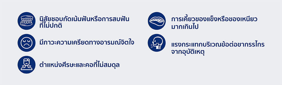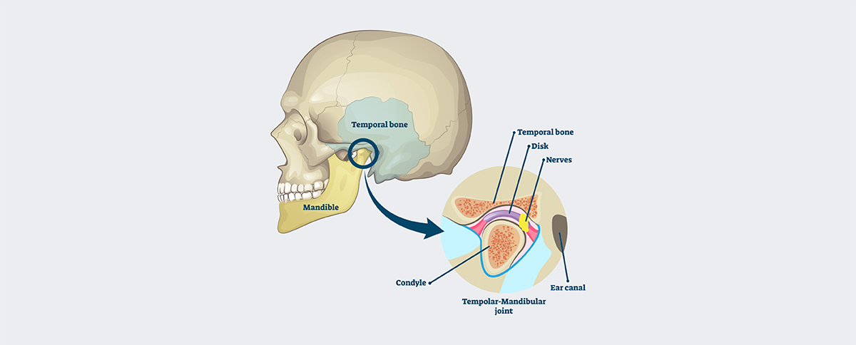 เป็นกลุ่มอาการความผิดปกติของข้อต่อขากรรไกรและกล้ามเนื้อบดเคี้ยว ทำให้มีอาการปวดบริเวณใบหน้า ศีรษะ ขมับ กกหู หน้าหู ในหู ขากรรไกร และฟัน นอกจากนี้อาจมีอาการอ้าปากไม่ขึ้น มีเสียงดังกึกกักหรือครืดคราดบริเวณหน้าหู อ้าปากแล้วปากเบ้หรือขากรรไกรค้าง