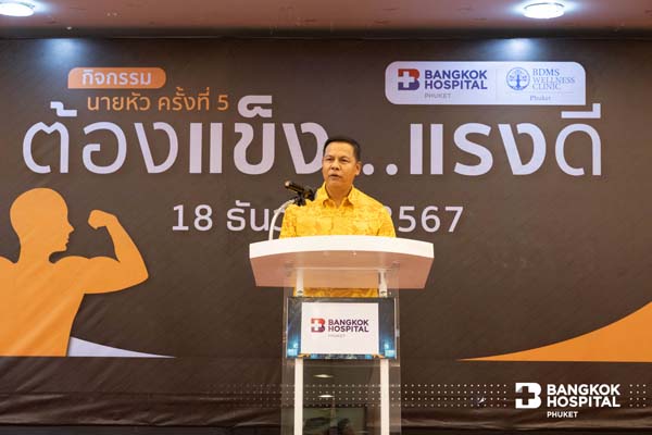 เมื่อวันที่ 18 ธันวาคม 2567 โรงพยาบาลกรุงเทพภูเก็ตจัดกิจกรรม “นายหัวครั้งที่ 5 ต้องแข็ง..แรงดี” เพื่อสุขภาพท่านชาย โดยได้รับเกียรติจากนายกองเอกอดุลย์ ชูทอง รองผู้ว่าราชการจังหวัดภูเก็ต เป็นประธานในพิธี กล่าวถึงความสำคัญของการดูแลสุขภาพในยุคปัจจุบันของผู้ชาย พร้อมด้วย พญ.ลลิตา กองสีหา ผู้ช่วยประธานคณะผู้บริหาร กลุ่ม 6 บริษัทกรุงเทพดุสิตเวชการ จำกัด (มหาชน) และผู้อำนวยการโรงพยาบาลกรุงเทพภูเก็ต กล่าวต้อนรับแขกผู้มีเกียรติ โดยได้เปิดตัวนวัตกรรม Rezum การรักษาต่อมลูกหมากโตด้วยไอน้ำ ที่ช่วยยกระดับคุณภาพชีวิตของผู้ชายที่มีปัญหาต่อมลูกหมากโต ไม่ต้องผ่าตัดใหญ่ ลดความเสี่ยงจากการผ่าตัด ฟื้นตัวเร็ว ลดปัญหาการกลั้นปัสสาวะไม่อยู่ และลดผลข้างเคียงเกี่ยวกับสมรรถภาพทางเพศ ปลอดภัย และมีประสิทธิภาพ