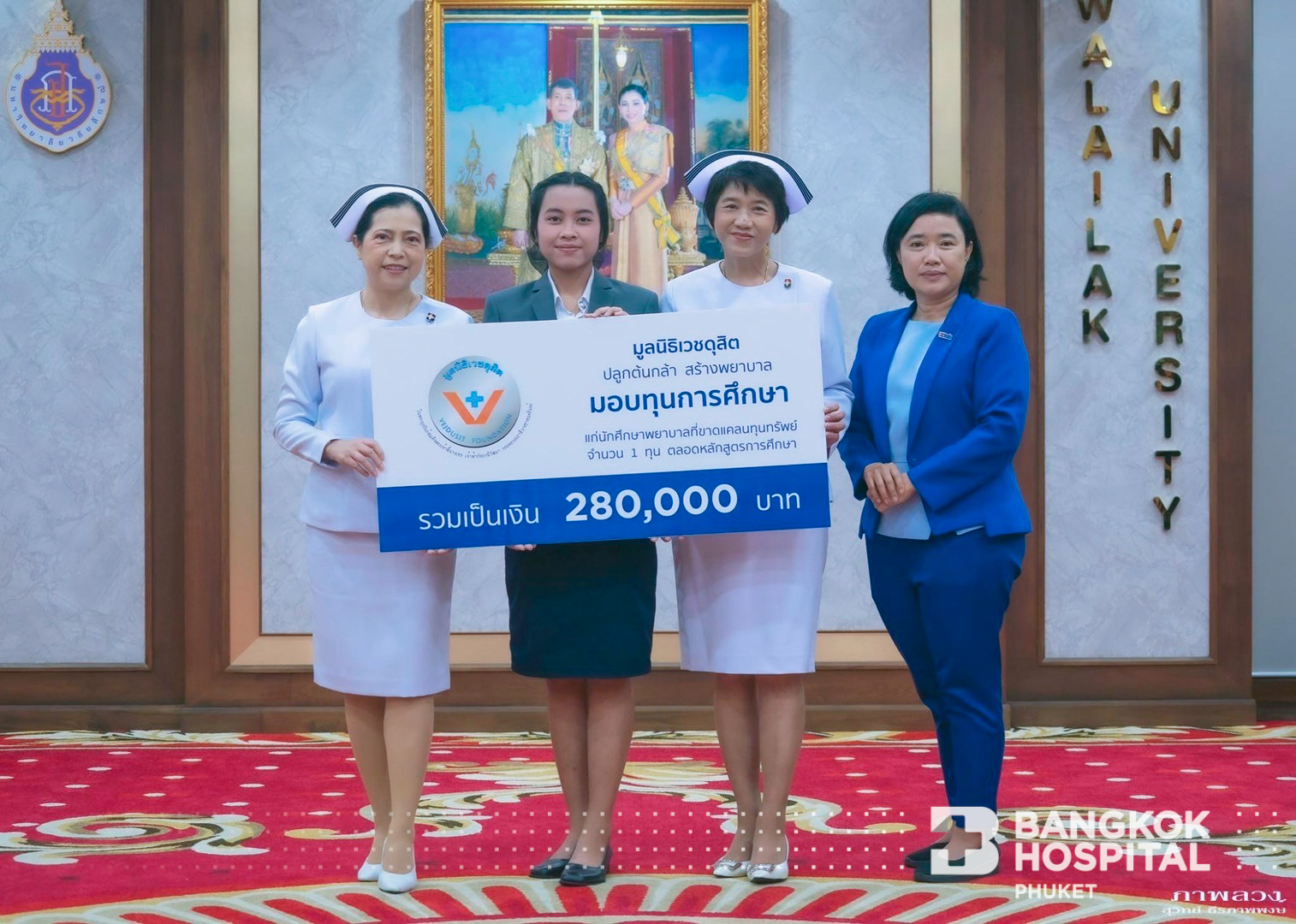 มูลนิธิเวชดุสิต มอบทุนการศึกษาให้กับนักศึกษาพยาบาล มหาวิทยาลัยวลัยลักษณ์ ประจำปีการศึกษา 2567 ภายใต้โครงการเวชดุสิตฯ “ปลูกต้นกล้า สร้างพยาบาล” โดย โรงพยาบาลกรุงเทพภูเก็ต เป็นตัวแทนมอบทุนในครั้งนี้