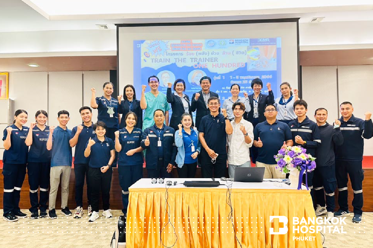 ศูนย์พัฒนาบุคลากรทางการแพทย์ เครือกรุงเทพดุสิตเวชการ กลุ่มภาคใต้ โดยคุณณปภัช โชติบุญฐิสา ผู้อำนวยการศูนย์ฯ ร่วมกับนายแพทย์สุขสันต์ คำนวณศิลป์ แพทย์เวชศาสตร์ฉุกเฉิน โรงพยาบาลวชิระภูเก็ต จัดโครงการ “ร้อย (พลัง) ช่วย (ล้าน) ชีวิต” Train The Trainer One Hundred รุ่นที่ 1 ให้แก่ประชาชนทั่วไป บุคลากรในโรงพยาบาล หน่วยงานภาครัฐและเอกชน ในพื้นที่จังหวัดฝั่งอันดามัน