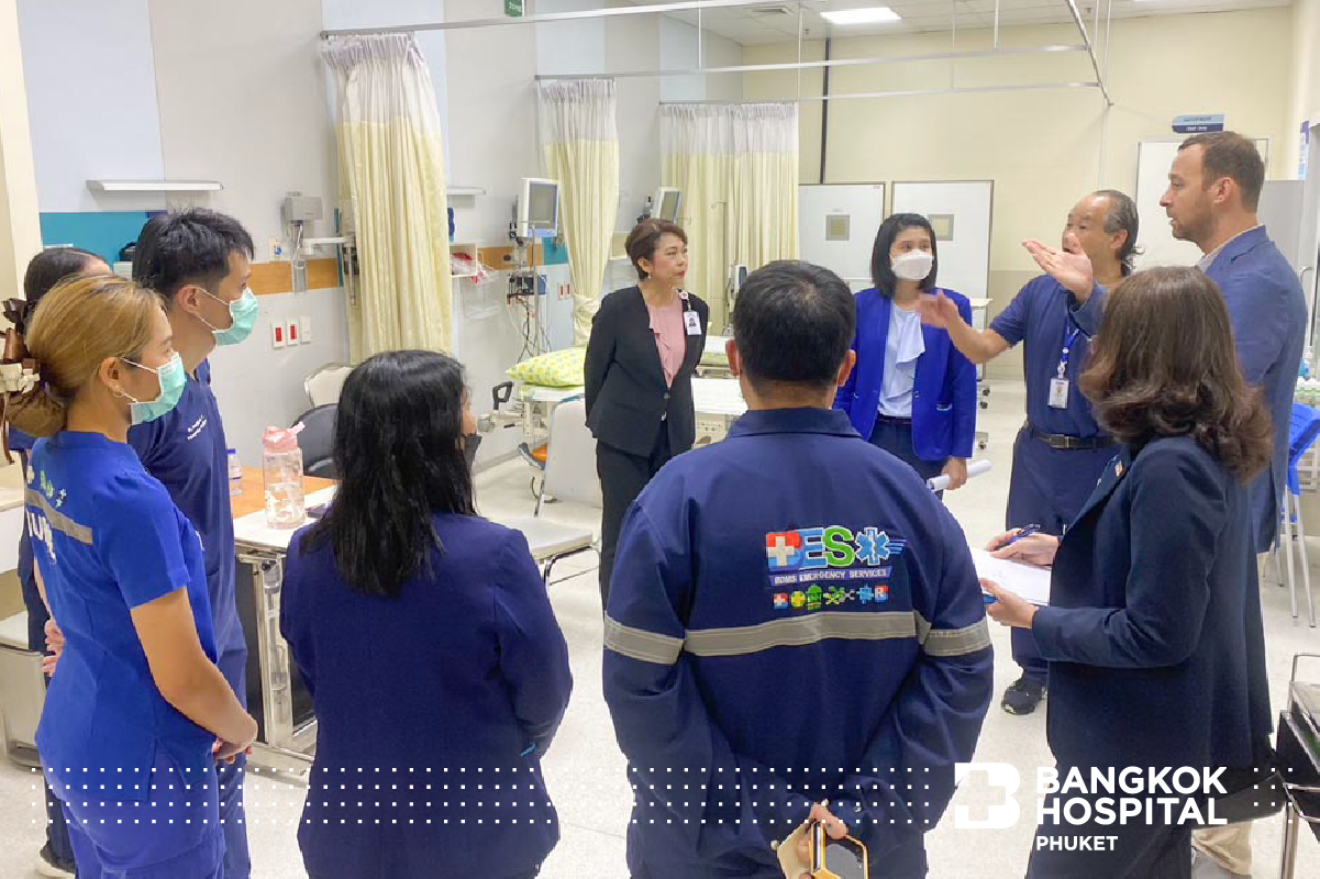แพทย์หญิงลลิตา กองสีหา รองผู้อำนวยการโรงพยาบาลกรุงเทพภูเก็ต ต้อนรับ Mr.Chris Parrish, Assistant Attache และคุณจงจิต จันทร์ประภาวุฒิ ผู้เชี่ยวชาญด้านสอบสวนประจำสถานเอกอัครราชฑูตสหรัฐอเมริกา ในโอกาสเยี่ยมชมศักยภาพของโรงพยาบาลที่ได้รับมาตรฐานระดับสากล และความพร้อมในการรองรับนักท่องเที่ยวจากทั่วโลก เมื่อวันที่ 16 พฤศจิกายน 2566 ที่ผ่านมา
