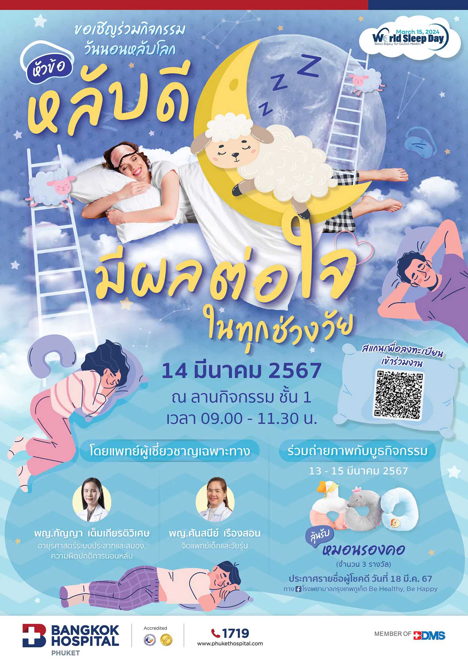 วันที่ 14 มี.ค. 67 | เวลา 09.00-11.30น. ณ ลานกิจกรรม ชั้น 1 รพ.กรุงเทพภูเก็ต