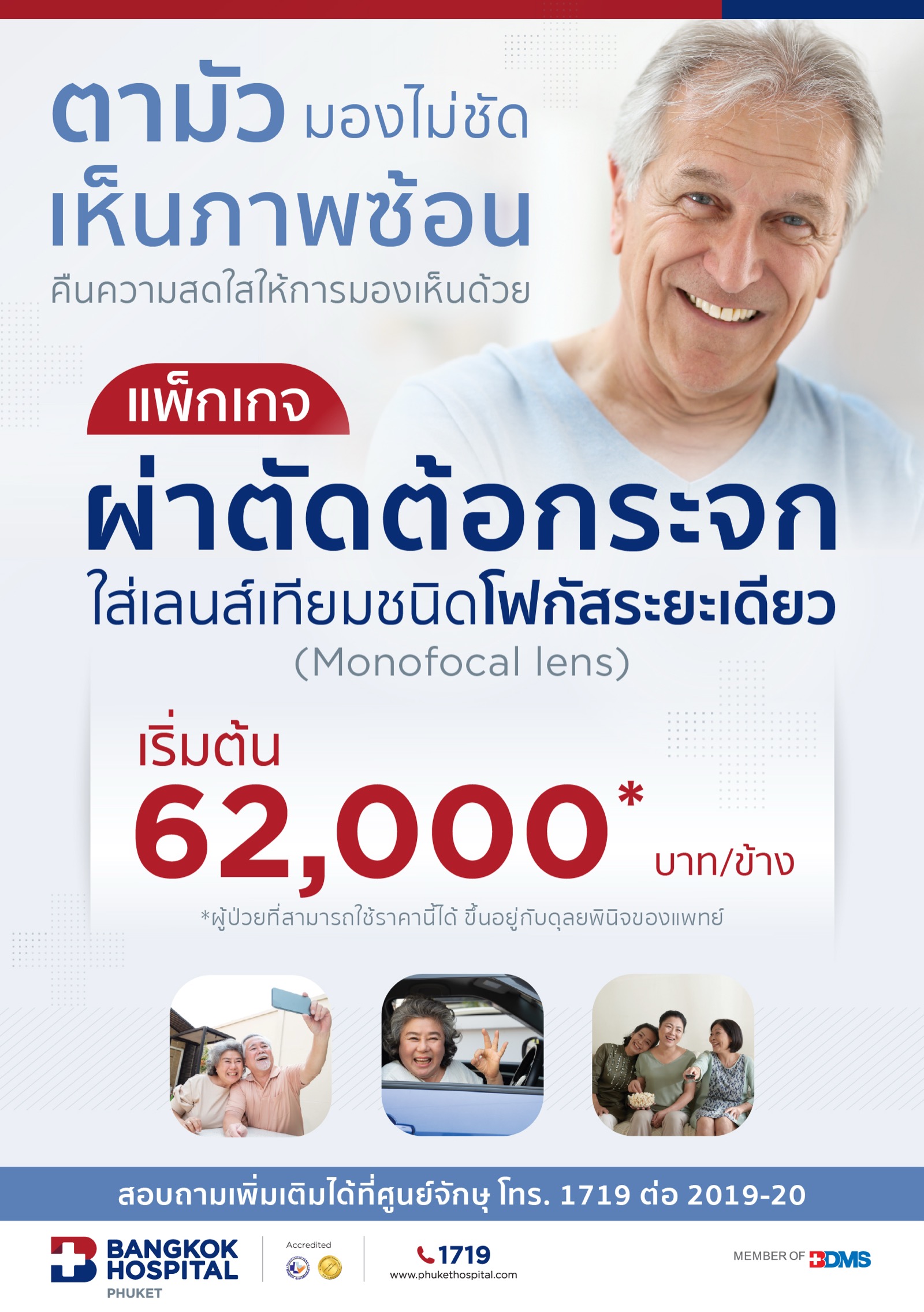 แพ็กเกจผ่าตัดต้อกระจกใส่เลนส์เทียมชนิดโฟกัสระยะเดียว รพ. กรุงเทพภูเก็ต