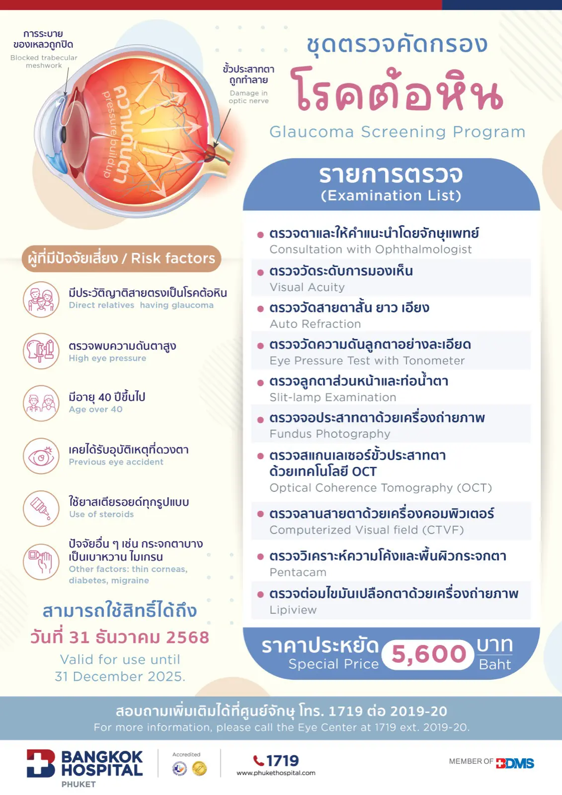 ศูนย์จักษุ (ชั้น 2) เปิดบริการทุกวัน จันทร์ – พฤหัสบดี 08.00 – 17.00 น. ศุกร์ – อาทิตย์ 08.00 – 16.00 น.