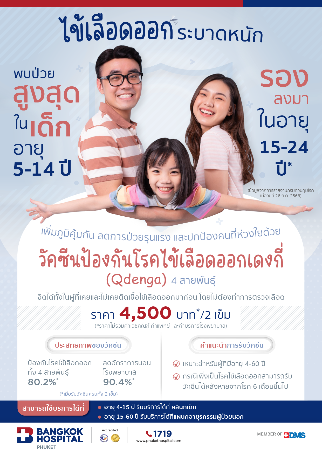 วัคซีนป้องกันโรคไข้เลือดออกเดงกี่ (Qdenga) 4 สายพันธุ์ รพ. กรุงเทพภูเก็ต