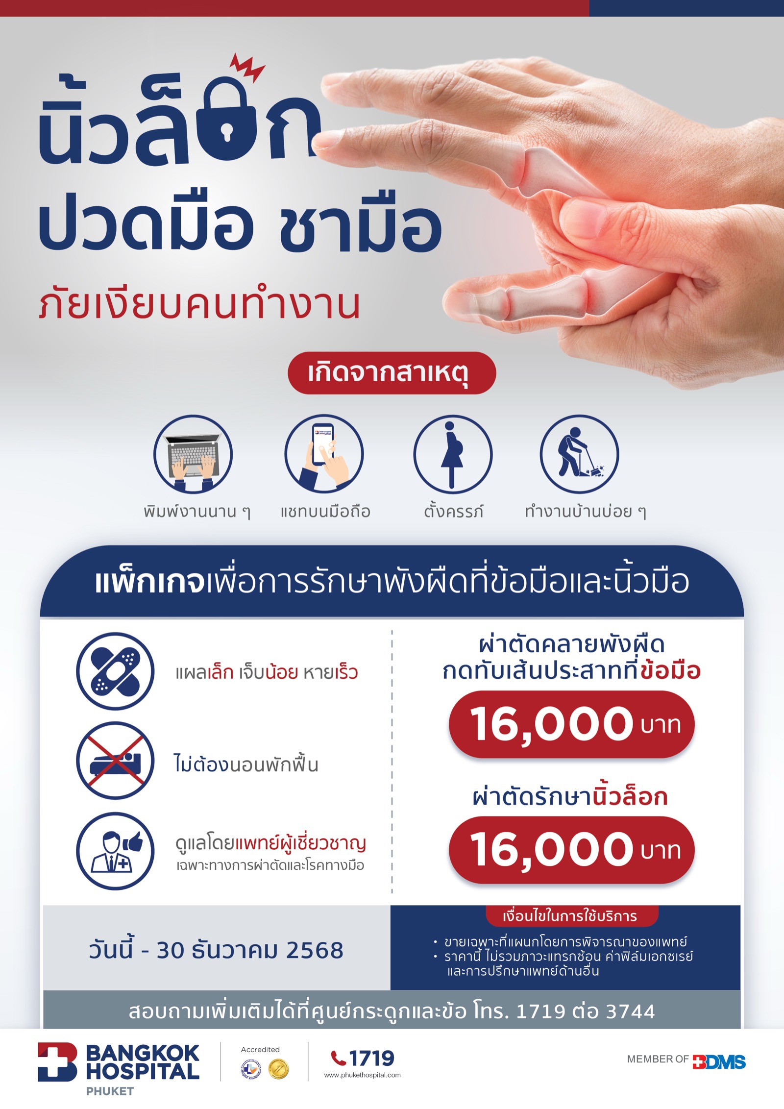 แพ็กเกจเพื่อการรักษาพังผืดที่ข้อมือและนิ้วมือ รพ. กรุงเทพภูเก็ต