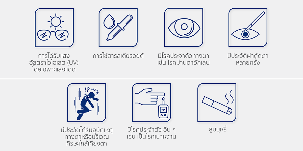 ปัจจัยที่ส่งผลให้ต้อกระจกเป็นมากหรือเป็นเร็วขึ้น ได้แก่