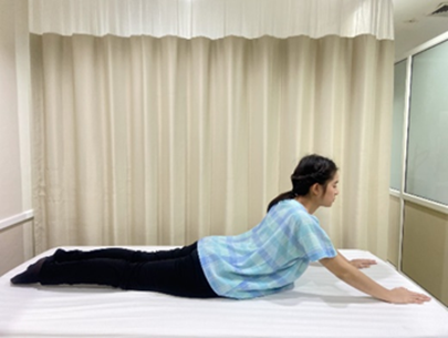 ท่าที่ 3 ท่านอนคว่ำแอ่นหลัง
