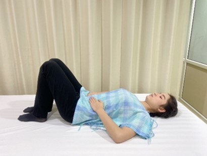 ท่าที่ 1 นอนหงาย งอสะโพกงอเข่า บิดสะโพกและเข่าไปมา